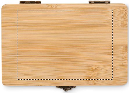 13-teiliges Werkzeugset im Koffer aus Bambus. Beinhaltet: 6 Bit-Satz in Halterung mit: 3 Schlitzgrössen (4, 5, 6 mm), 2 Phillips-Grössen (PH1, PH2) und 1 Adapter, 4 Steckschlüsseleinsätze (7 mm, 8 mm, 9 mm, 10 mm), 1 Griff, 1 Verbindungsstück und 1 Massband. Bambus ist ein natürliches Produkt, es kann daher zu leichten Abweichungen in Farbe, Dekor und Massen kommen.