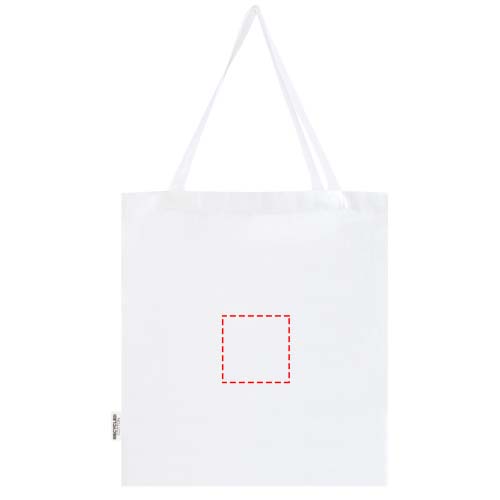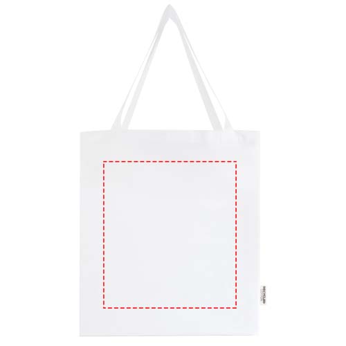 Die Madras Tragetasche mit Zwickel aus 100 % GRS-zertifizierter Recyclingbaumwolle ist die ideale Tasche als Giveaway bei Veranstaltungen, Konferenzen oder als Einkaufstasche für kleine Besorgungen. Die Baumwolldichte von 140 g/m² Baumwolle macht die Tasche robust, langlebig und geeignet, um schwere Gegenstände zu transportieren. Mit einer Tragegriffhöhe von 30cm (Tragegrifflänge 60cm) lässt sich diese Tasche gut tragen. Die für diese Tragetasche verfügbaren Druckverfahren sind ebenfalls zertifiziert, sodass die gesamte Lieferkette transparent und zertifiziert ist. Hergestellt in Indien. Beständigkeit bis zu 5 kg.