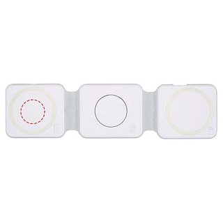 Das kabellose 3 in 1 Ladegerät Armus besteht aus recyceltem Kunststoff und kann ein Smartphone, AirPods und eine iWatch gleichzeitig mit einer kabellosen Ladegeschwindigkeit von bis zu 15 W aufladen. Dank seines faltbaren, magnetischen Designs können Sie Ihr Smartphone im Querformat aufstellen. So können Sie beispielsweise während des Ladens Videos ansehen. Kompatibel mit allen Smartphones mit kabelloser Ladefunktion, einschliesslich iPhone 12 und neuer Modelle (oder Smartphones mit Magnetring). Inklusive Typ C Anschluss.