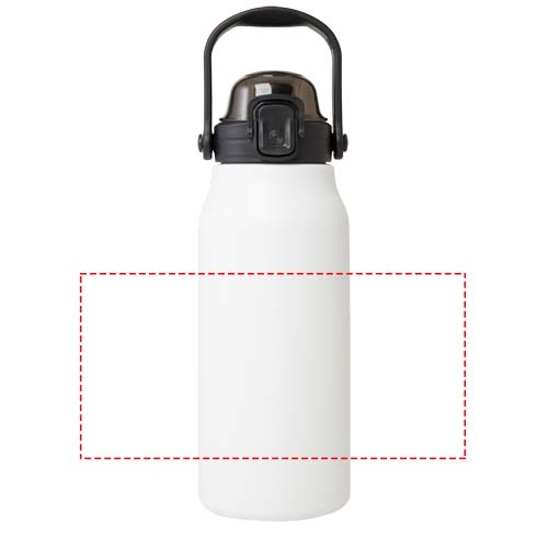Diese grosse RCS-zertifizierte Flasche aus recyceltem Edelstahl versorgt Sie stilvoll den ganzen Tag über mit Flüssigkeit. Die Kupfer-Vakuumisolierung hält Getränke mehrere Stunden lang heiss oder kalt, und mit dem klappbaren Griff lässt sie sich leicht transportieren. Die Flasche ist auslaufsicher und lässt sich per Knopfdruck leicht öffnen. Das Fassungsvermögen beträgt 1600 ml. Verpackt in einer Geschenkbox aus Recyclingkarton.
