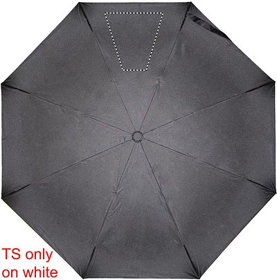 21'' Regenschirm aus 190T Seide. Windbeständig. Gestell aus verzinktem Stahl. Schienen aus schwarzem Fiberglas, Spitzen aus verchromtem Metall. Schwarz gummierter Griff mit Doming. 3fach faltbar. Passende Schirmhülle. Automatische Öffnung und Schliessung.