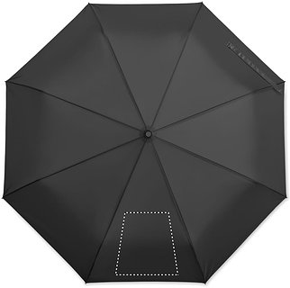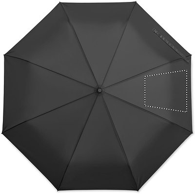 23'''' Regenschirm aus doppellagigem 190T Pongee, 3fach gefaltet. Windbeständig. Karierte Innenseite. Schwarz beschichteter Stock und Stangen. Mittelteil aus schwarzem, vernickeltem Fiberglas. Gebogener, gummierter ABS-Griff. Automatische Öffnung und Schliessung.
