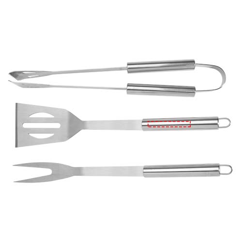 3-teiliges BBQ-Set mit Wender (34,8 x 7,5 cm), Gabel (35,4 x 3,35 cm) und einer Zange (35 x 6,8 x 4 cm). Das gesamte Zubehör wird in einem leichten Tasche geliefert, der den Transport und die Aufbewahrung erleichtert. Das perfekte Grillzubehör für den Garten oder zum Grillen im Freien mit Freunden und Familie.
