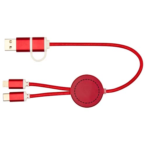 Das Alasia 27 W 5-in-1 Daten- und Schnellladekabel besteht aus dünnem, langlebigem recyceltem Aluminium und recyceltem Kunststoff. Das Kabel verfügt über einen USB-A- und einen Typ-C-Eingang sowie einen kombinierten Typ-C- und Lightning/Micro-USB-Ausgang. USB-A zu USB-C liefert max. 27 W Ausgangsleistung, alle anderen Anschlüsse max. 15 W. Kompatibel mit CarPlay und Android Auto. Ob zu Hause, im Büro oder unterwegs, das Alasia Kabel bietet Leistung und Stil in einem kompakten Paket. Länge des Kabels: 30 cm.