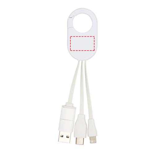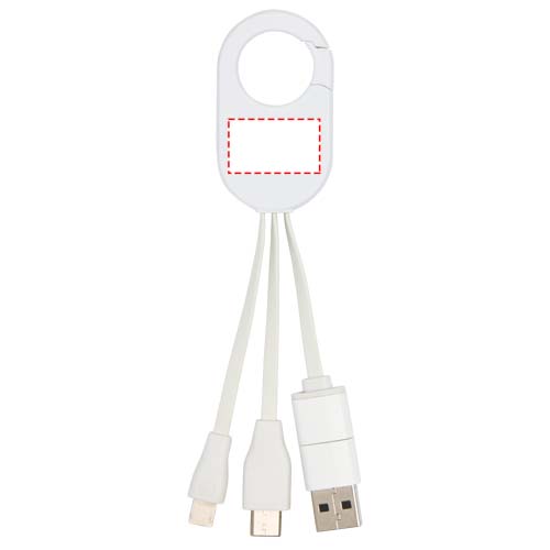 Das Troop 4-in-1-Ladekabel aus recyceltem Kunststoff verfügt über USB-A- und Typ-C-Eingänge in Kombination mit kombinierten Typ-C- und Lightning/Micro-USB-Ausgängen, mit denen die meisten Smartphones, Kameras, Powerbanks und Ohrhörer aufgeladen werden können. Der integrierte Karabinerhaken ermöglicht eine einfache Befestigung an einer Tasche oder einem Schlüsselanhänger, so dass Sie Ihre Geräte immer und überall mit Strom versorgen können.