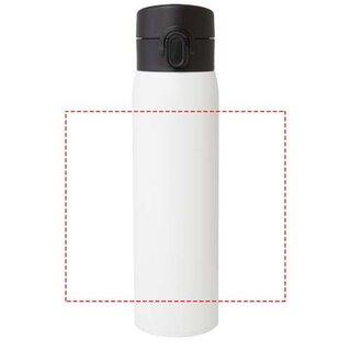 Elegante, RCS-zertifizierte Isolierflasche aus recyceltem Edelstahl mit einfachem Öffnungsmechanismus per Knopfdruck. Die Flasche ist auslaufsicher, und dank der Kupfer-Vakuumisolierung bleiben die Getränke mehrere Stunden lang heiss oder kalt. Das Fassungsvermögen beträgt 450 ml. Verpackt in einer Geschenkbox aus Recyclingkarton.