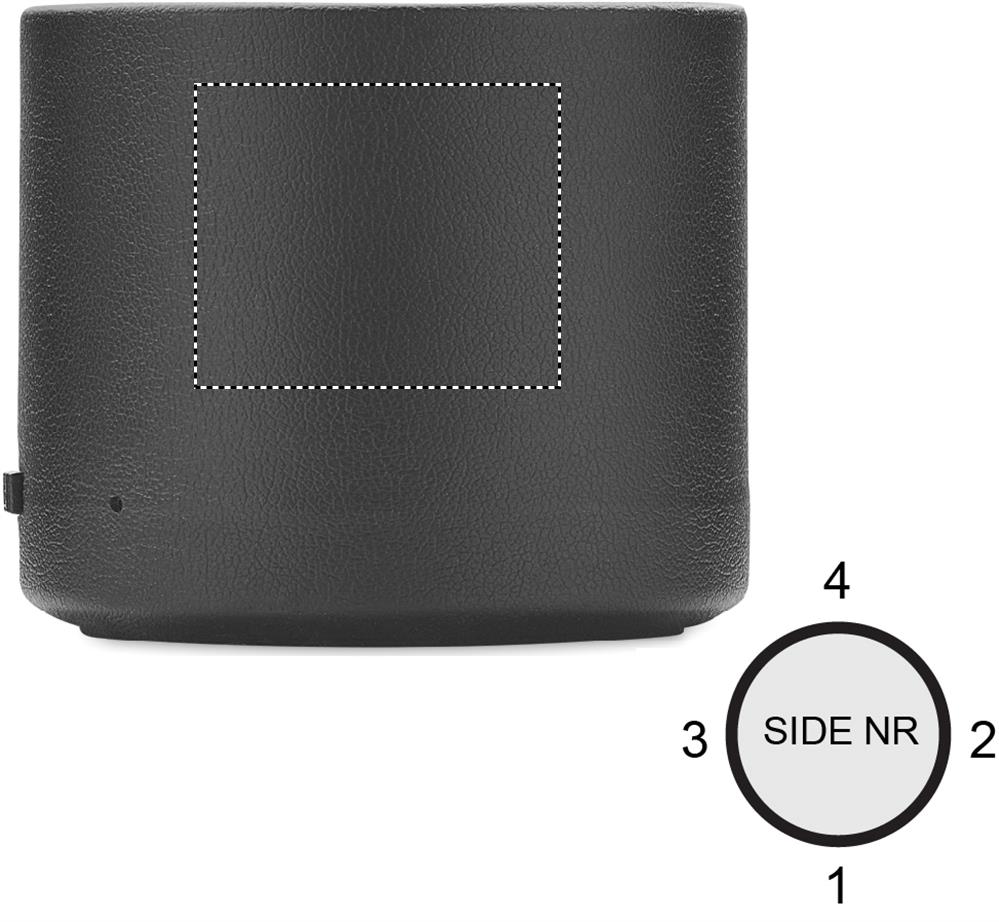 5.0 Wireless Lautsprecher. Gehäuse aus ABS und PU (zu 58% recycelt: 40% recyceltes Polyester, 18% recyceltes PU). LED-Lichtanzeige. Ausgangsdaten: 3W, 3 Ohm und 5V. Spielzeit ca. 3h.