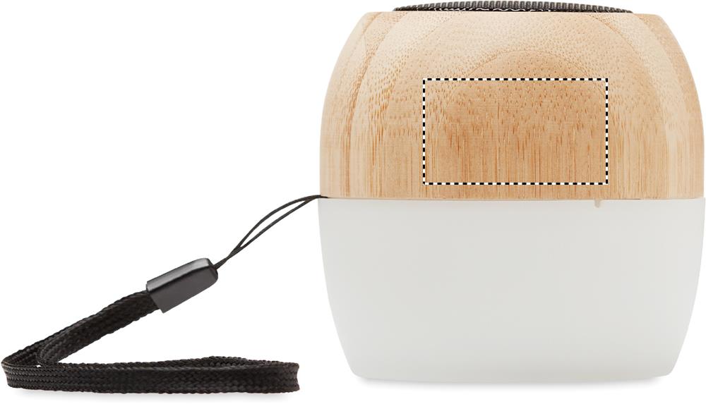 5.0 wireless Lautsprecher aus PP und Bambus. 4farbiges Stimmungslicht und Handschlaufe. Inkl. 1 wiederaufladbarer Li-POL 300 mAh Akku. Ausgangsdaten: 3W, 4 Ohm. Spielzeit ca. 2h. Bambus ist ein natürliches Produkt, es kann daher zu leichten Abweichungen in Farbe, Dekor und Massen kommen.