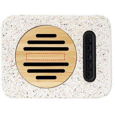 Bluetooth®-Lautsprecher aus einer Kombination von natürlichem Terrazzo und Bambus. Ausgangsleistung 5W mit einer 500 mAh Lithium-Polymer-Batterie. Bluetooth® 5.0 mit einer Reichweite von bis zu 10m. Dieser Lautsprecher ermöglicht eine Wiedergabezeit von bis zu 2 Stunden bei maximaler Lautstärke, und es dauert etwa 2 Stunden, um ihn von 0 % auf 100 % aufzuladen. Lieferung in einer Geschenkbox inklusive Bedienungsanleitung (beides aus nachhaltigen Materialien).