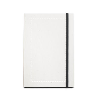 A5-Notizblock mit Hardcover aus 100 % recyceltem Papier. Enthält 160 naturfarbene linierte Seiten (70 g/m²) aus 100 % recyceltem Papier, Leseband und Gummiband. 145 x 210 mm