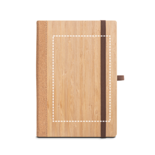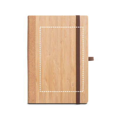 A5-Notizbuch mit festem Einband aus Bambus und Kork. Enthält 160 Seiten (70g/m²) aus 100% Recyclingpapier, elfenbeinfarbene Seite, Trennstreifen, Gummiband und einen Kugelschreiberhalter (Kugelschreiber nicht im Lieferumfang enthalten). Da das Produkt aus natürlichen Materialien hergestellt wird, können Farbe des Produkts sowie das Druckergebnis von Produkt zu Produkt unterschiedlich sein. 140 x 210 mm