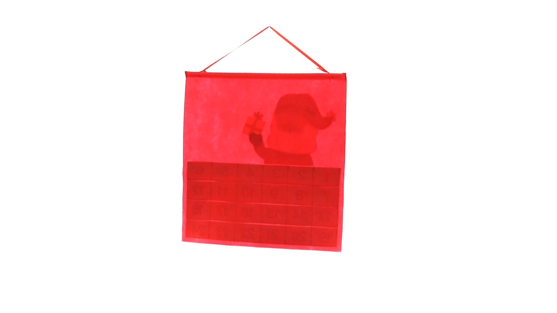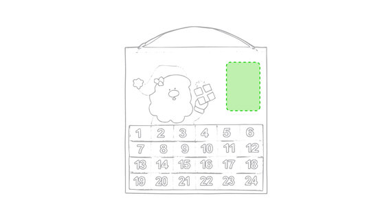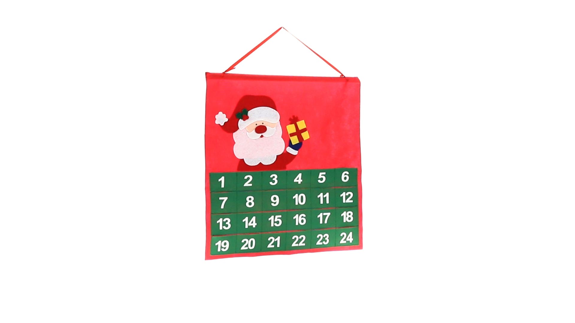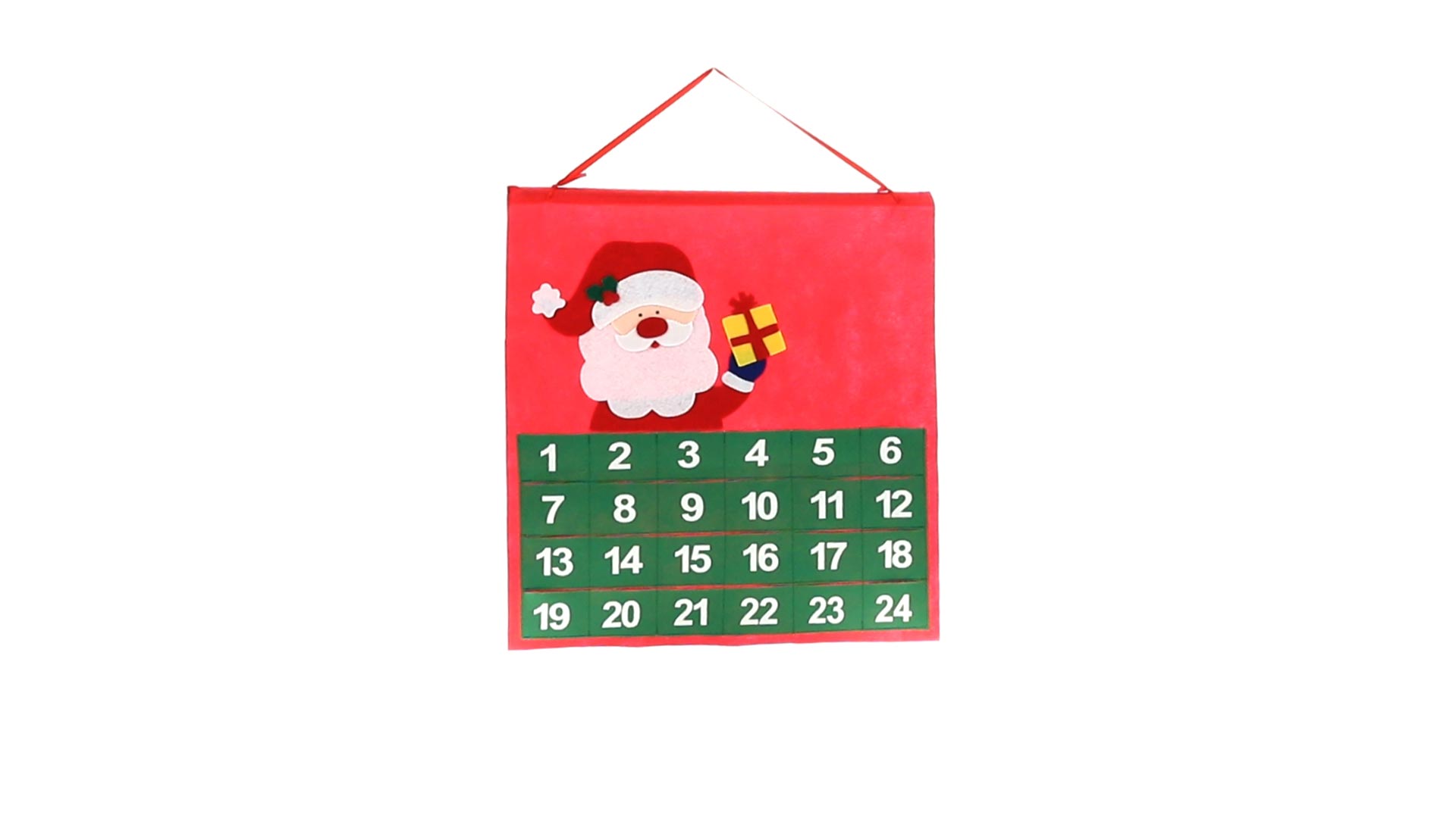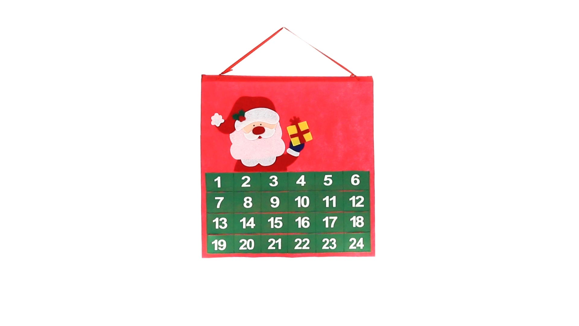 Non-Woven-Adventskalender mit originellem Weihnachtsdesign aus Faservlies. Mit Band zum Aufhängen.
