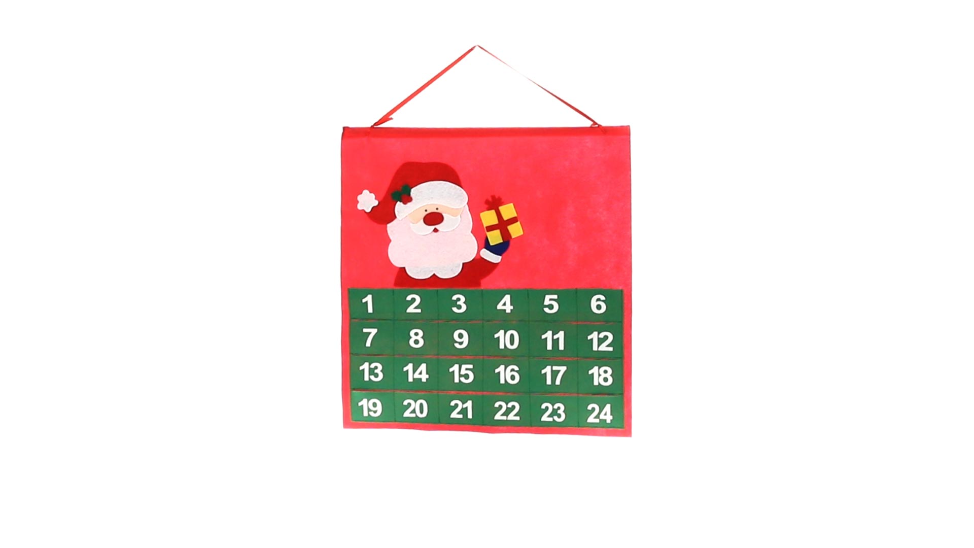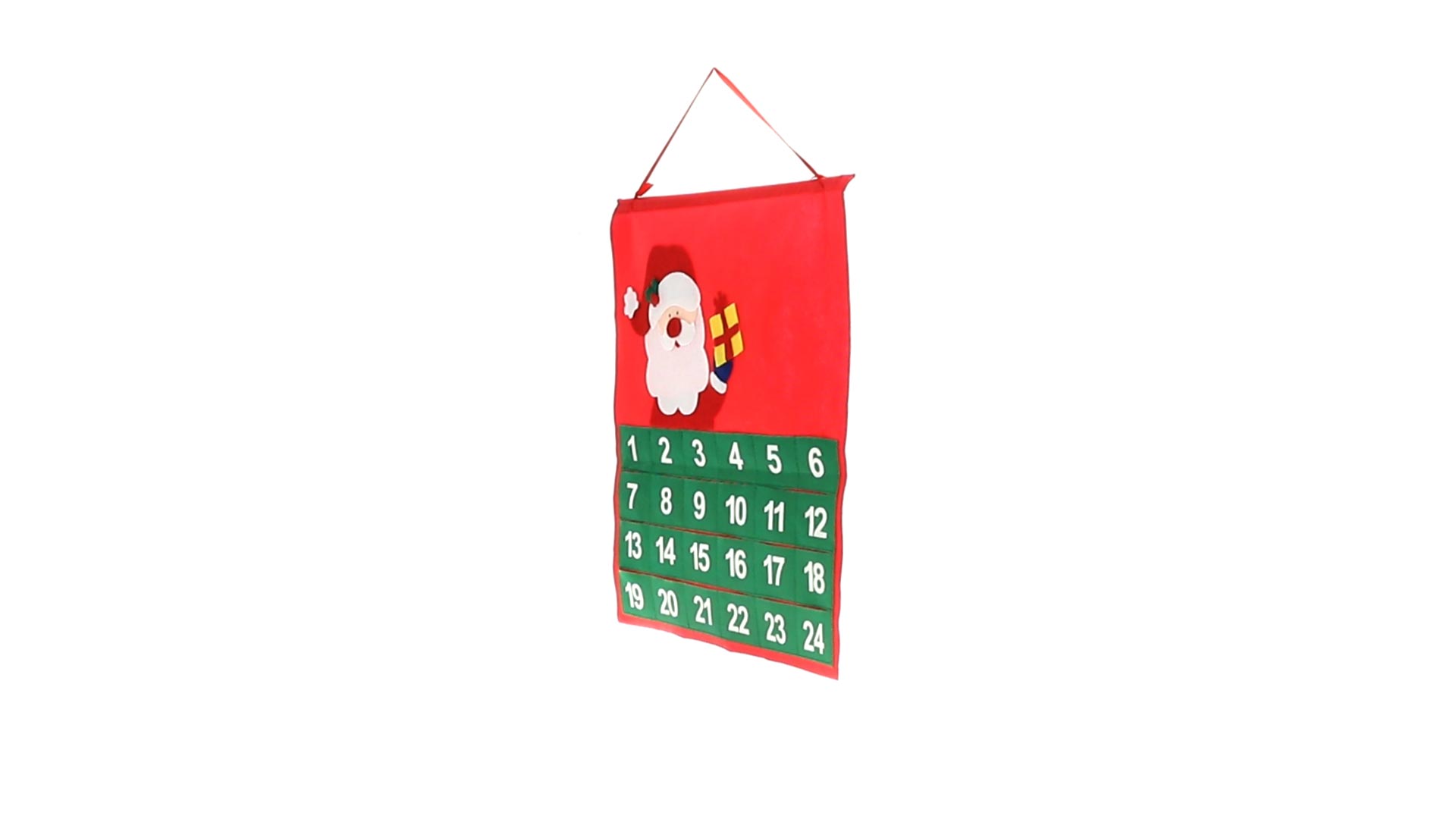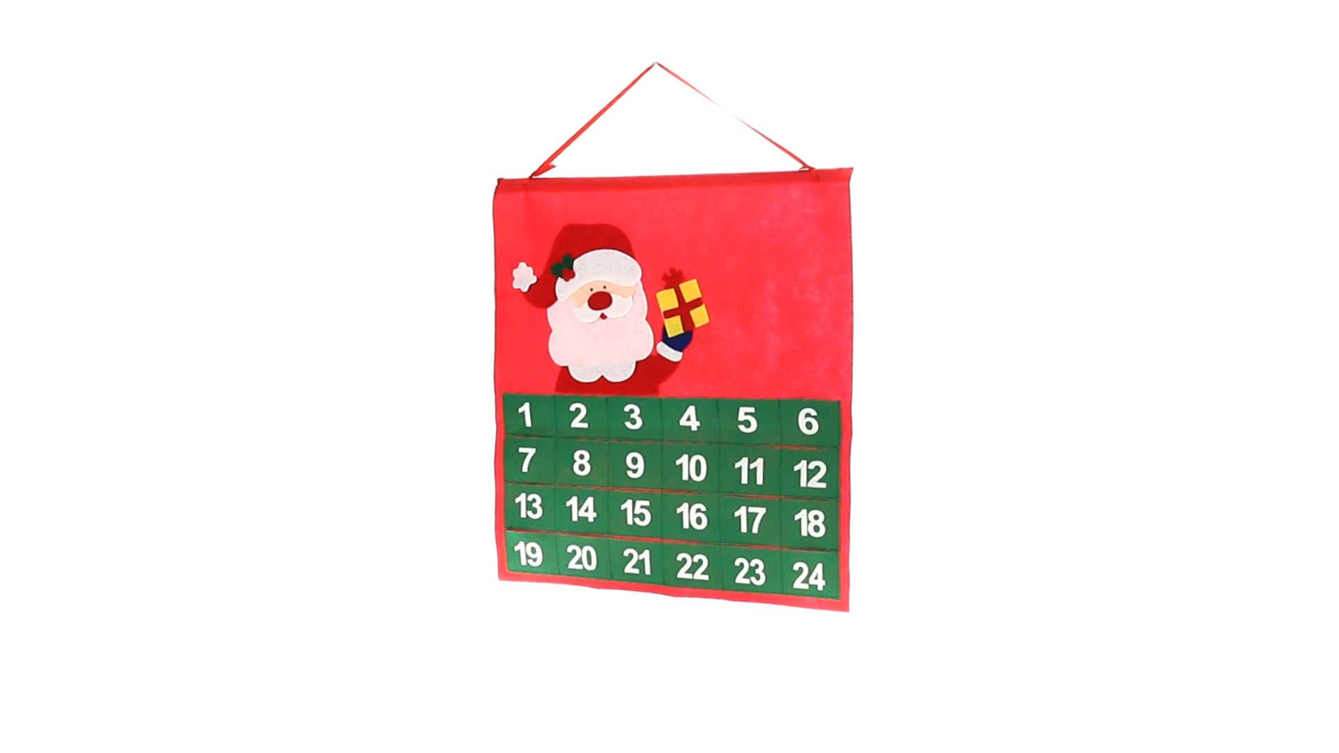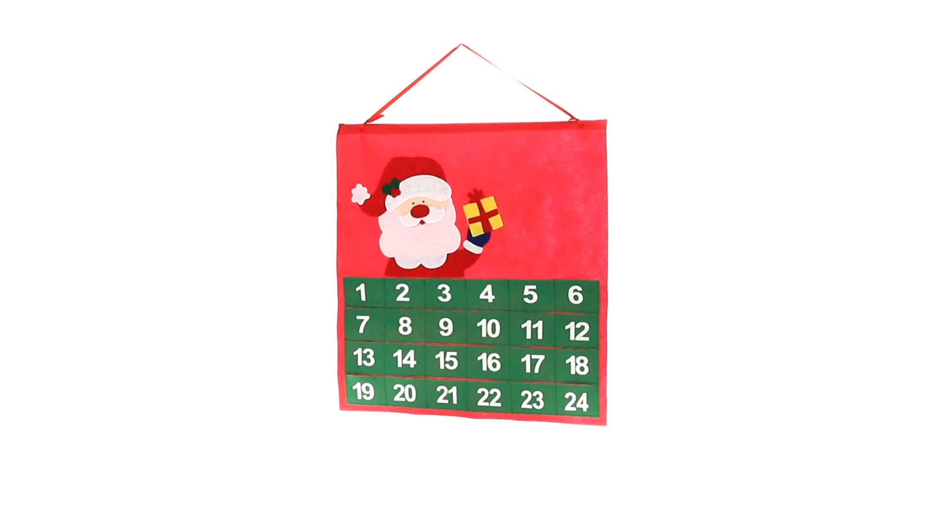 Non-Woven-Adventskalender mit originellem Weihnachtsdesign aus Faservlies. Mit Band zum Aufhängen.