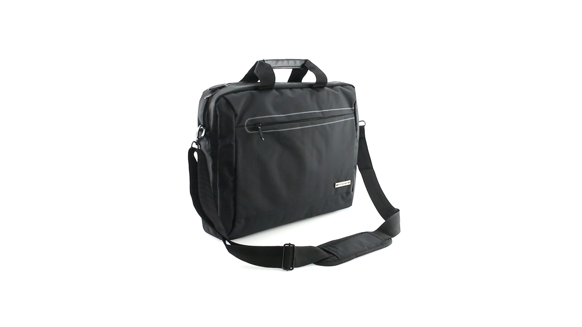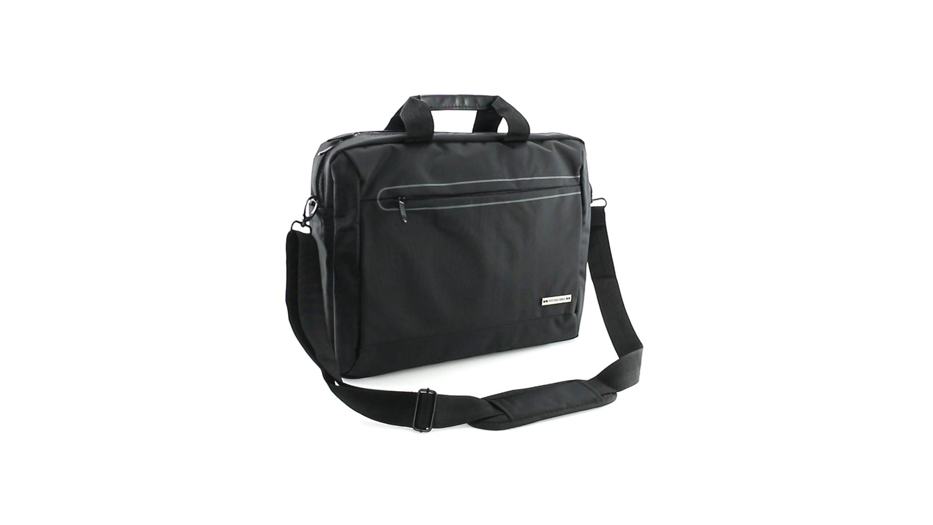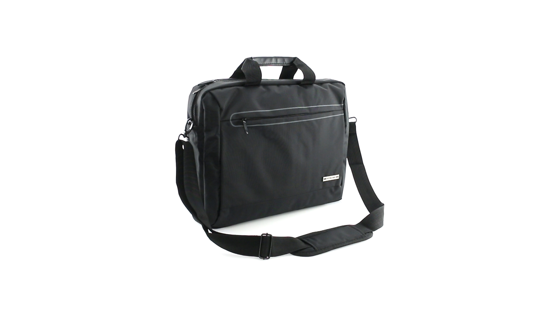 Hochwertige Dokumententasche von Antonio Miró mit Reissverschluss und Fronttasche aus robustem, weichem Nylon. Mit schlichtem Design und gepolstertem Fach für Laptop von bis zu 15 Zoll. Bietet zudem komfortable, verstärkte Tragegriffe und einen verstellbaren Schultergurt in passender Farbe - mit Schulterpolster und Karabinerbefestigung. Markenlogo aus Metall auf der Front.