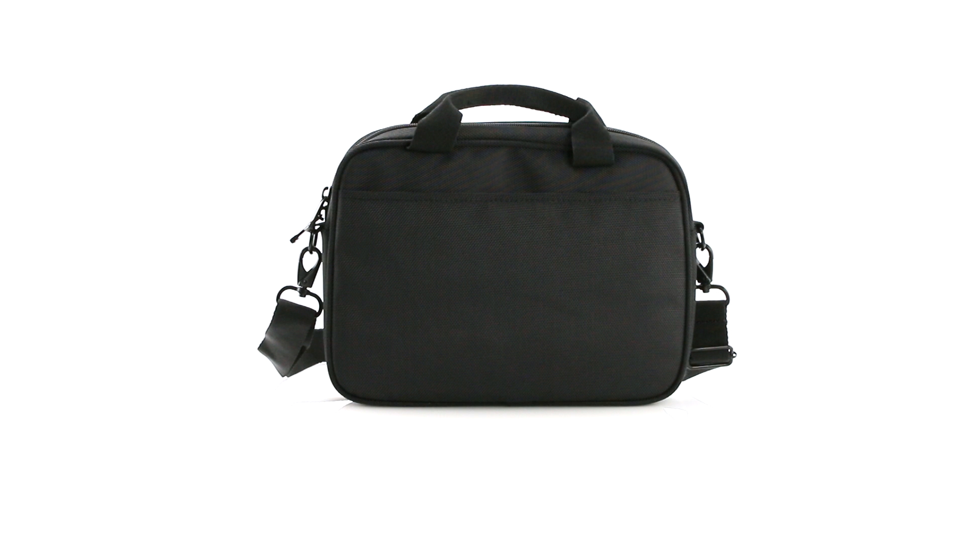 Hochwertige Dokumententasche von Antonio Miró aus robustem 1680D Polyester. Mit schlichtem Design, Reissverschluss und Fronttasche sowie gepolstertem Fach für Tablets von bis zu 10 Zoll. Zudem mit komfortablen, verstärkten Tragegriffen und verstellbarem Schultergurt mit farblich passendem Karabinerverschluss. Markenlogo auf der Front.