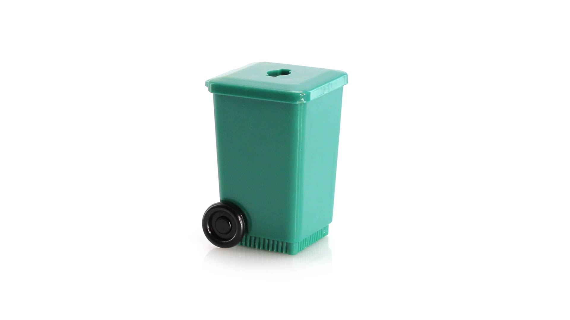 Origineller abnehmbarer Anspitzer mit Container-Design in kräftigen Farben.