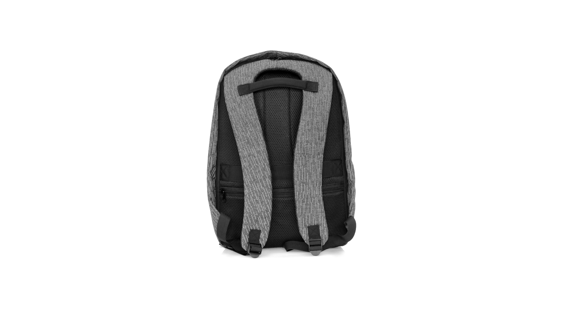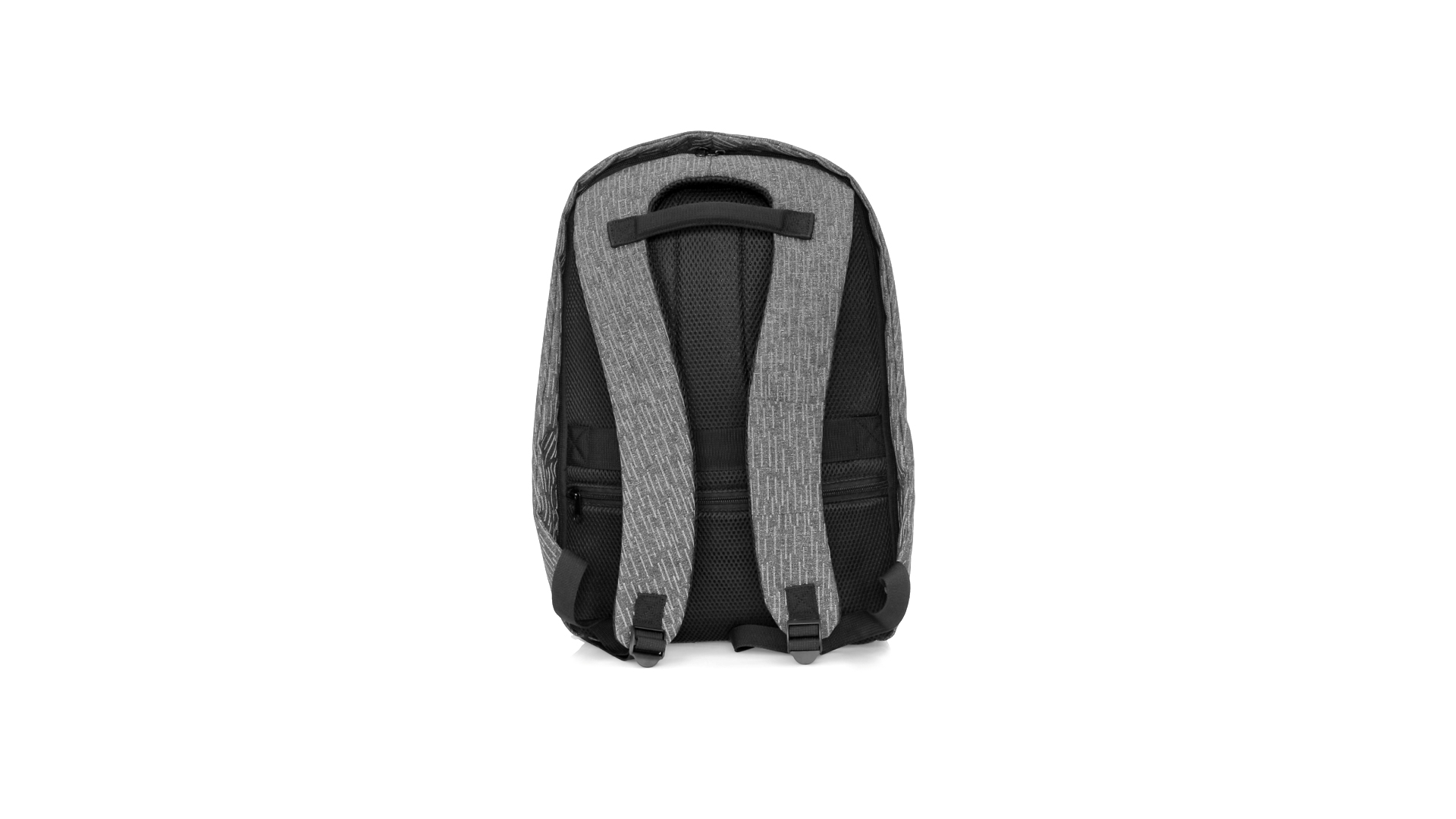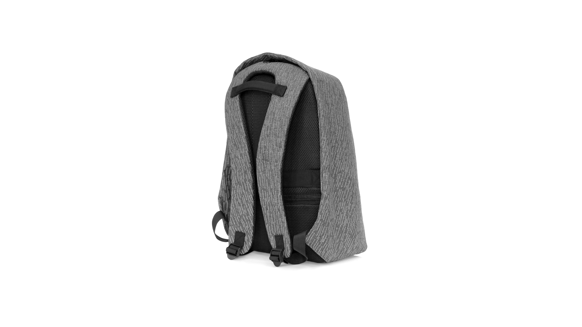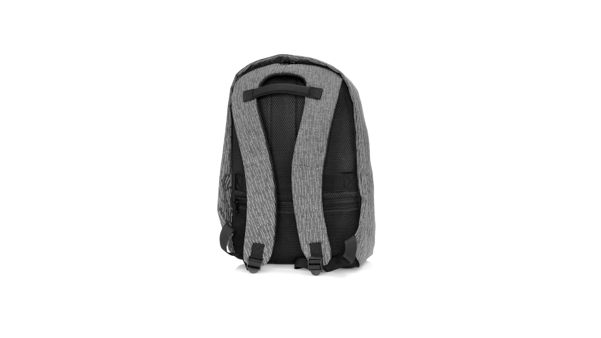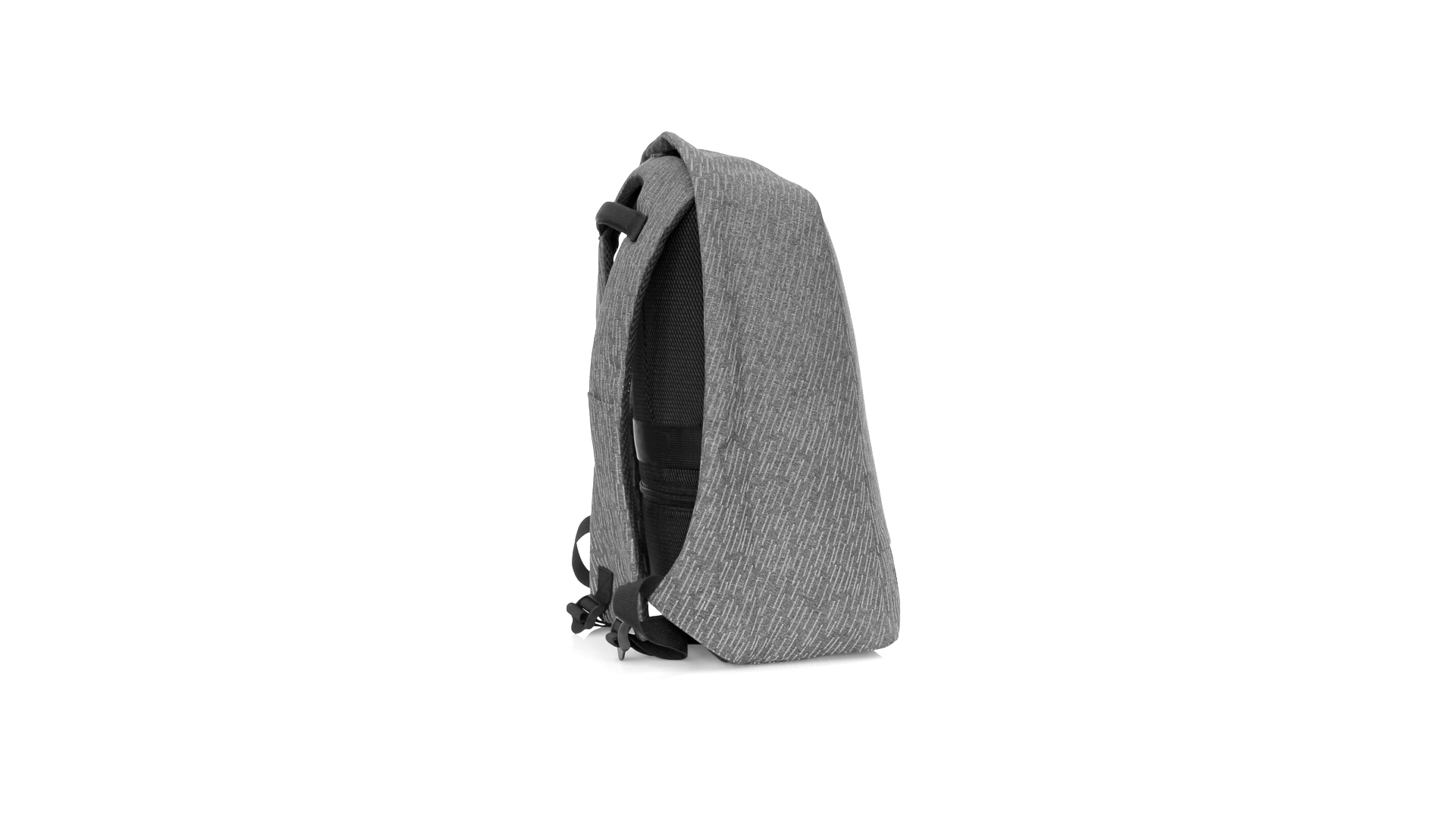 Gut sichtbarer, reflektierender Anti-Diebstahl-Rucksack aus strapazierfähigem, hochwertigem 600D-Polyester mit grauem Finish. Hergestellt unter Verwendung von Glühfäden mit hoher Lichtreflexionsfähigkeit dank Millionen reflektierender Pigmente und basierend auf dem Prinzip der Retroreflexion von Licht, einer Eigenschaft der Nachtsichtbarkeit, die in der Brechung des Lichts in Richtung der Lichtquelle besteht. Spritzwassergeschützt, mit Anti-Diebstahl-Tasche und Trolley-Befestigung. Gepolsterte Innenfächer für Laptops bis zu 15" und Tablets bis zu 12". Gepolsterte Schulter- und Rückengurte.