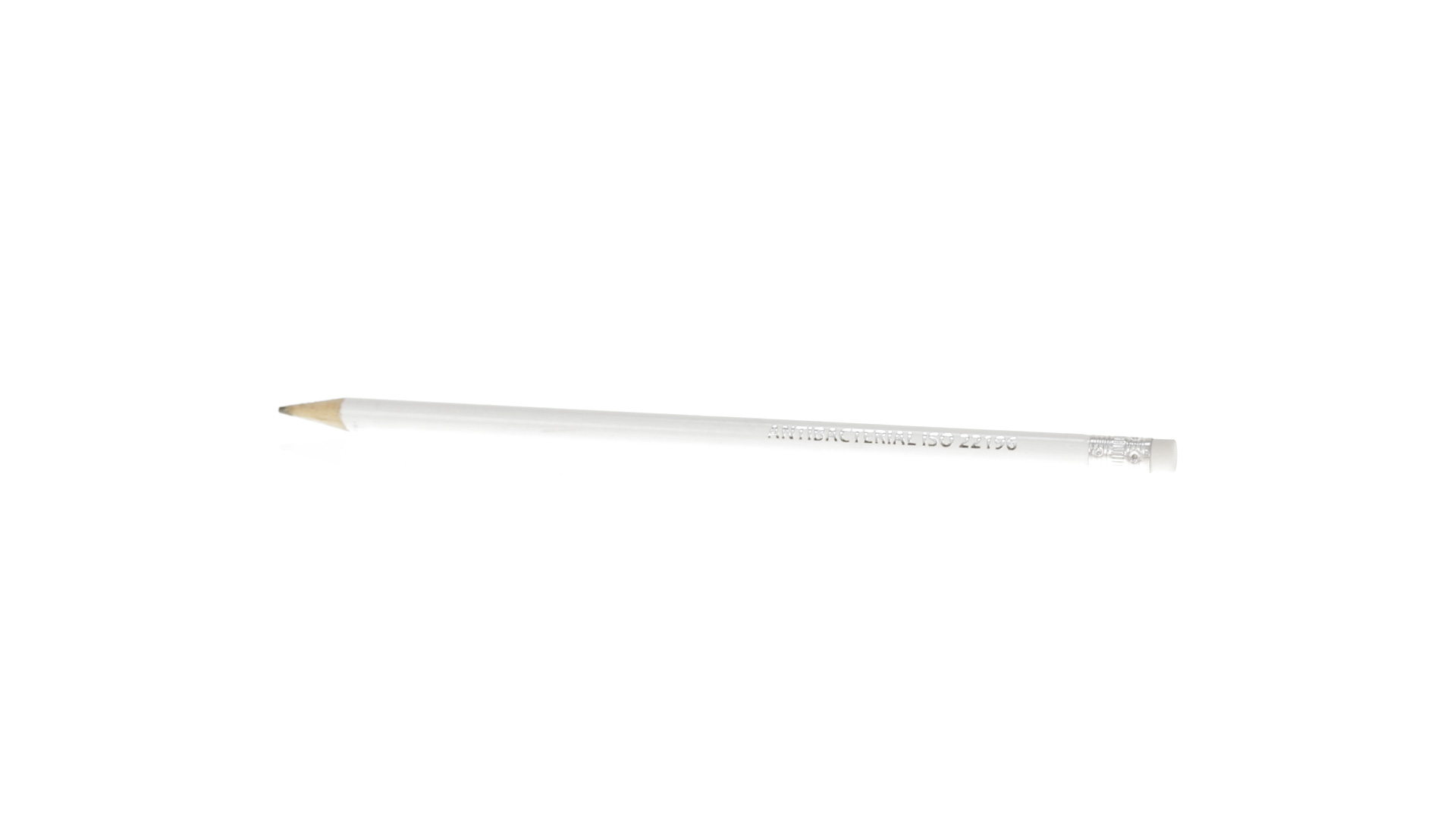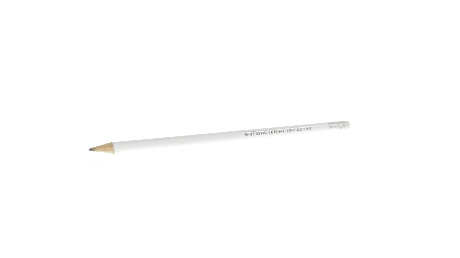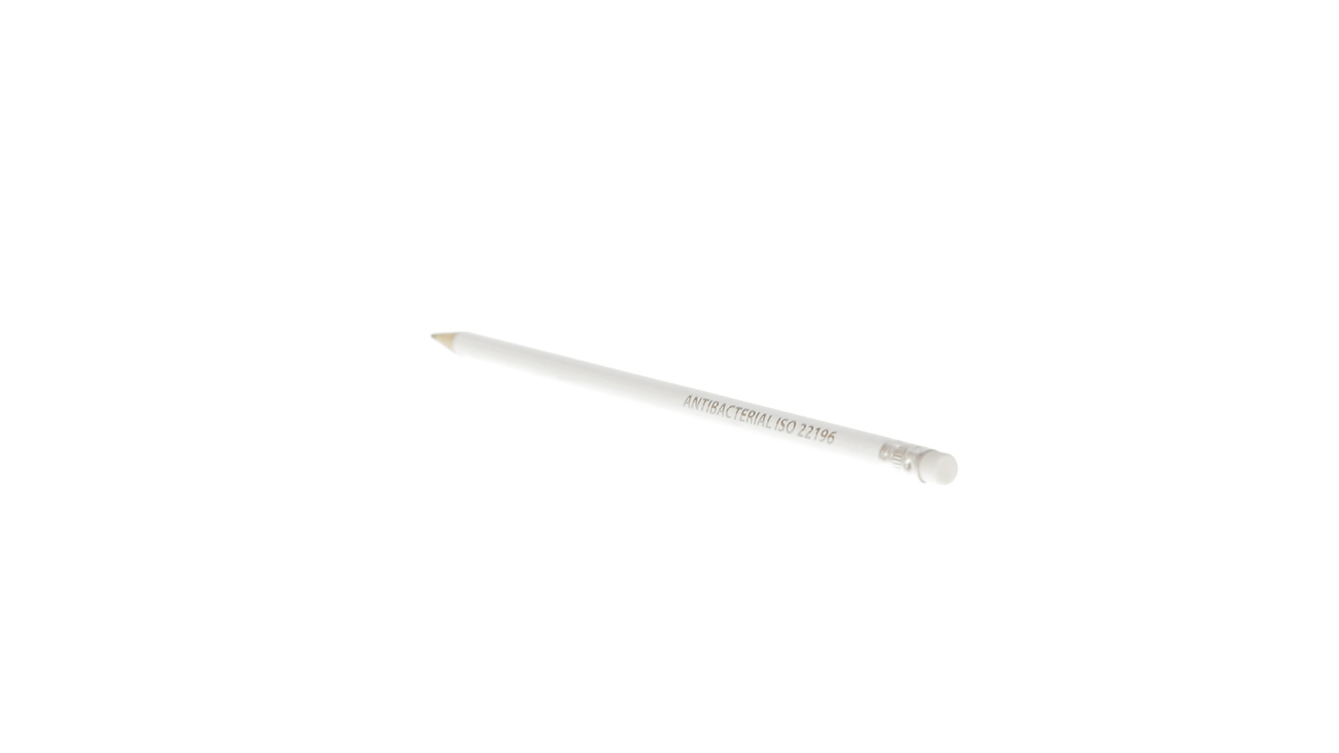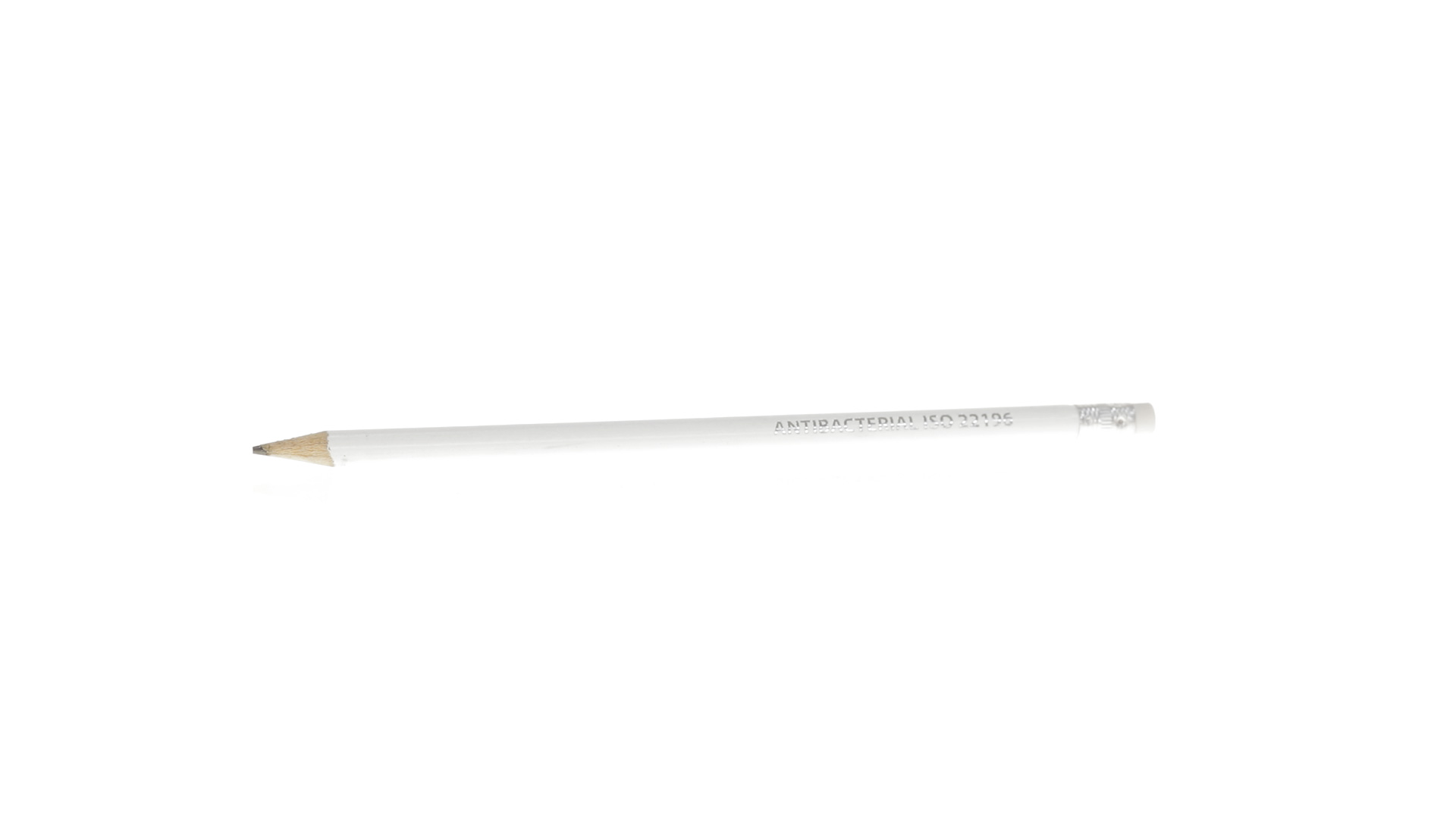 Holzbleistift mit rundem Schaft und antibakterieller Beschichtung. Erhältlich in weiss, mit Radiergummi. Ungespitzte Spitze.Produkte mit antibakteriellen Behandlungen sind in der Lage, die bakterielle Belastung der Materialoberflächen drastisch zu reduzieren, da sie statische, permanente mikrobielle Wirkstoffe enthalten, die eine bakterielle Kontamination mit hoher Wirksamkeit hemmen und verhindern.Der Artikel entspricht der Norm ISO 22196, die die antibakterielle Aktivität von Kunststoffen und nicht porösen Oberflächen bestimmt. Dies ermöglicht die Wirksamkeit der mikrobiellen Hemmung, die die Zusatzstoffe auf den behandelten Objekten haben, durch eine quantitative Bewertung zu kennen.