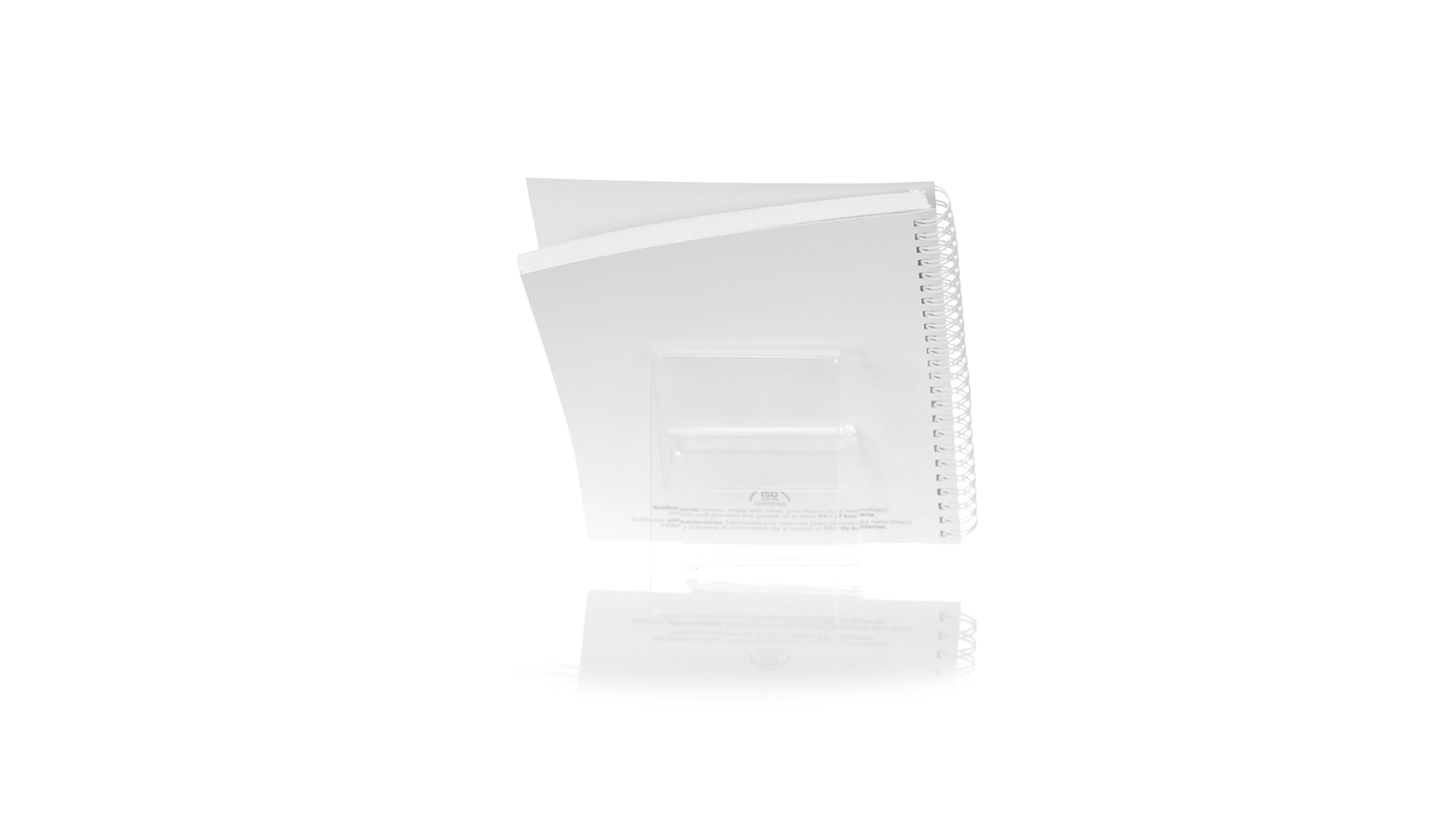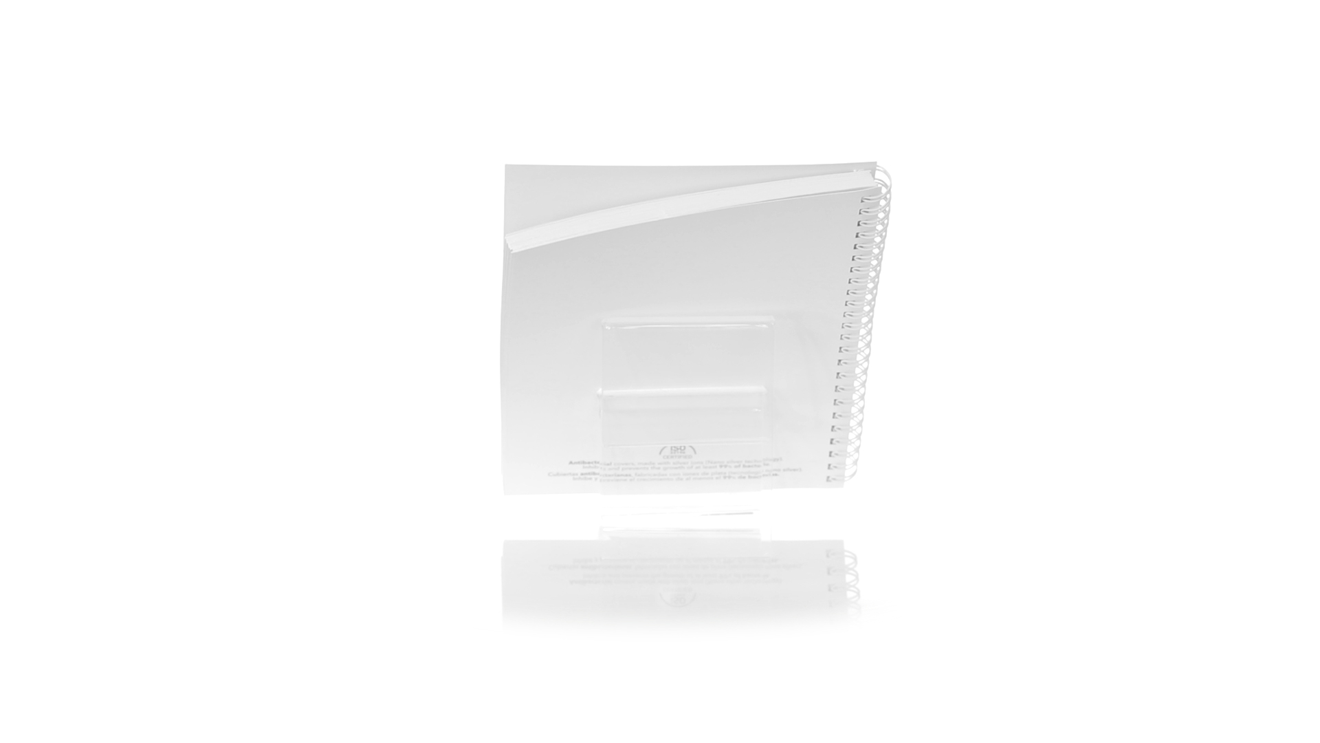 A5 Notizbuch mit flexiblen antibakteriellen Einbänden aus laminiertem Karton. In eleganter weisser, matter Ausführung, mit passenden Ringen. Antibakterielle Einbände, hergestellt mit Wirkstoffen auf Silberbasis, die das Wachstum von mindestens 99% der Bakterien hemmen und verhindern. Enthält 80 leere Blätter weisses Papier, Qualität 80g/m2. PEFC-Zertifizierung verfügbar.
