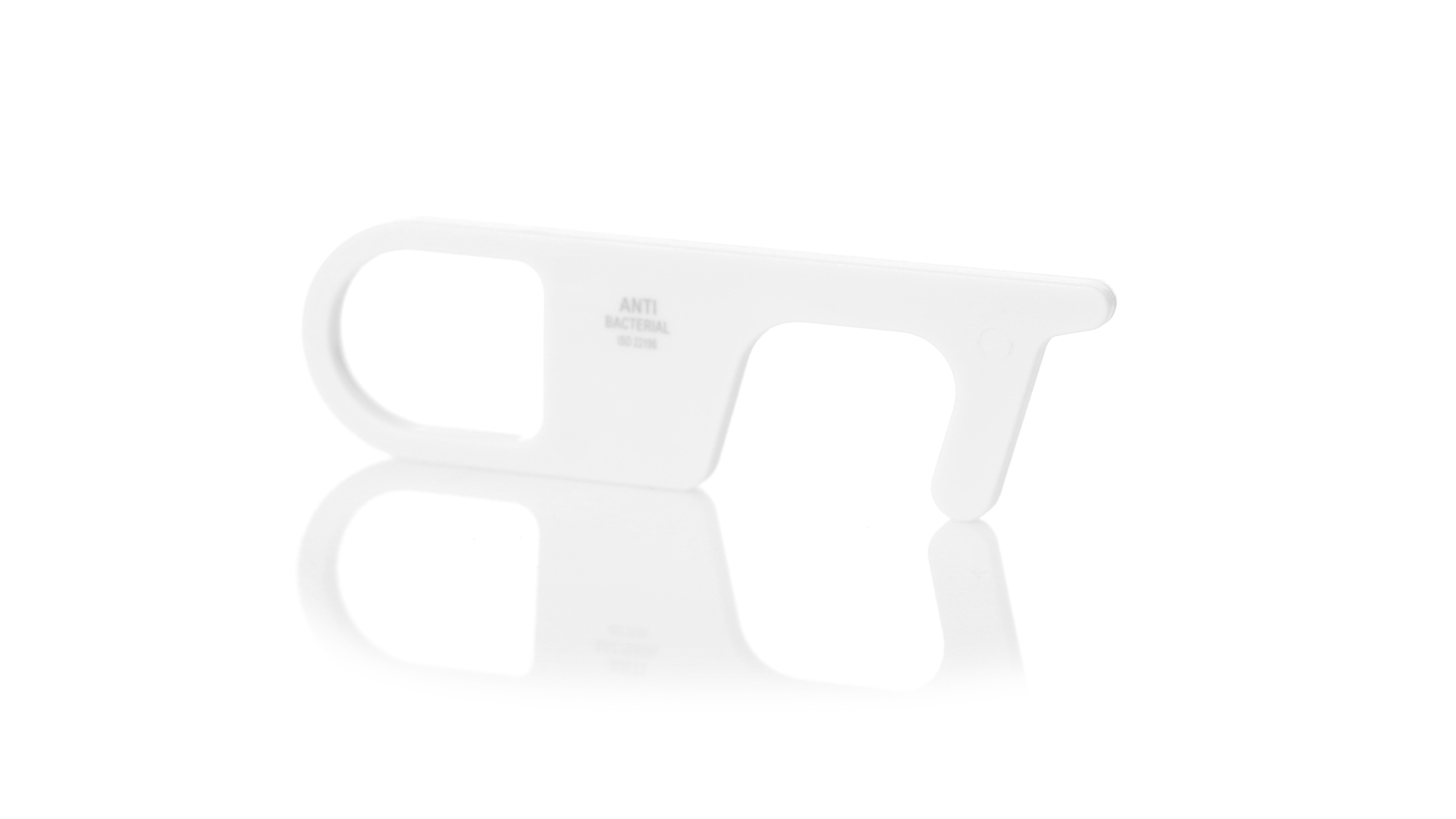 Hygienischer, antibakterieller und berührungssicherer Sicherheitsschlüsselanhänger, hergestellt aus widerstandsfähigem ABS mit einer soliden Verarbeitung. Speziell entwickelt, um das Berühren von Oberflächen im öffentlichen Bereich mit den Händen zu vermeiden (Türgriffe, Schalter, Wasserhähne im öffentlichen Bereich, Geldautomaten...). Mit komfortablem Ausschnitt für den Finger und in einer individuellen Tasche präsentiert. Empfohlen für Tampondruck.Produkte mit antibakterieller Behandlung sind in der Lage, die bakterielle Belastung der Materialoberflächen dank der Zugabe von permanenten statischen mikrobiellen Mitteln drastisch zu reduzieren, mit hoher Wirksamkeit bei der Hemmung und Verhinderung bakterieller Verunreinigungen.Artikel nach der Norm ISO 22196, die die antibakterielle Aktivität in Kunststoffen und auf nicht porösen Oberflächen bestimmt. Dies erlaubt es uns, die Wirksamkeit der Bakterienhemmung, die die Zusatzstoffe auf den behandelten Artikeln haben, anhand einer quantitativen Bewertung zu bestimmen.