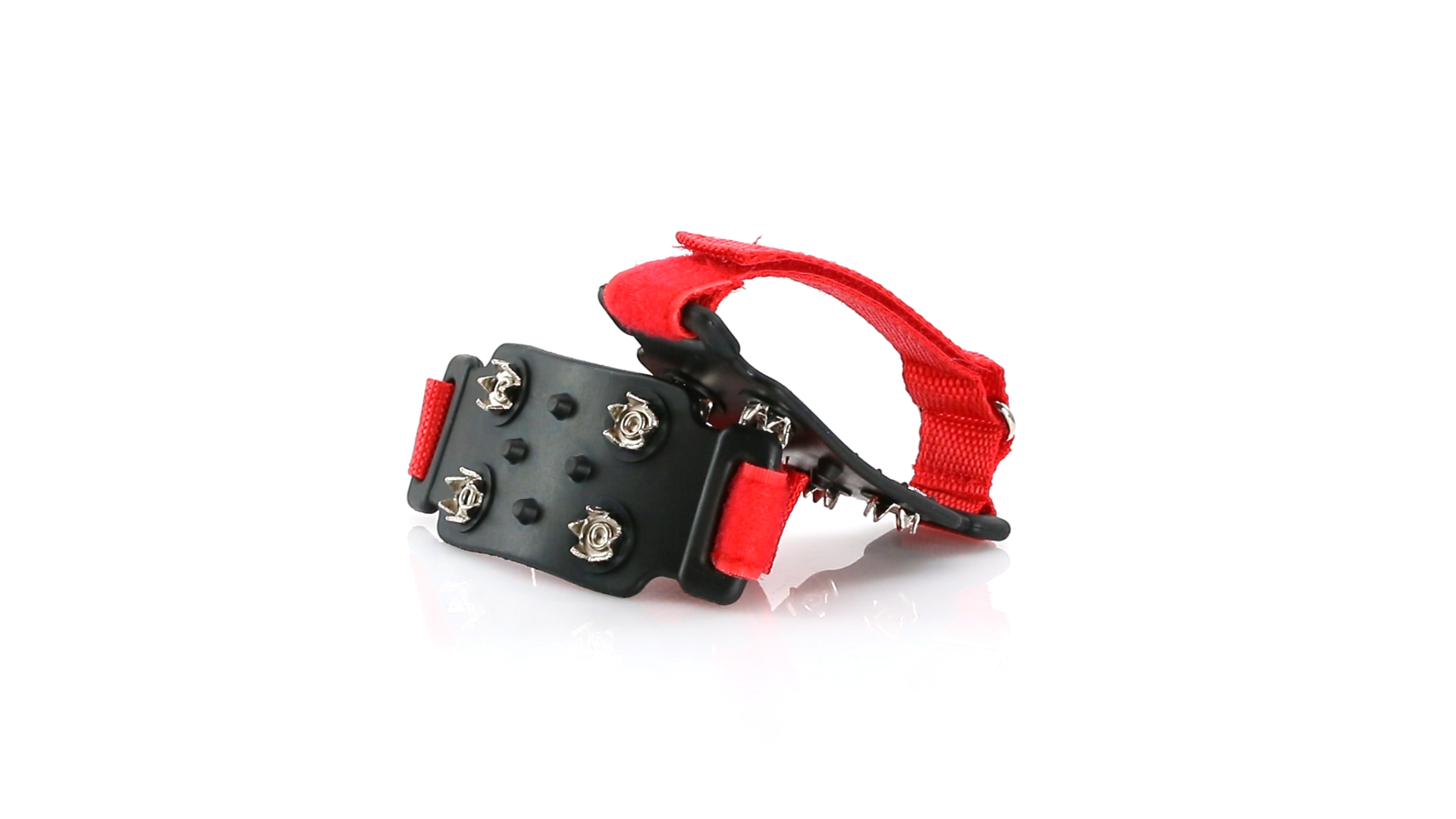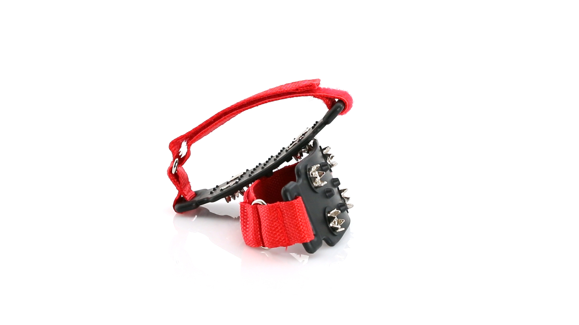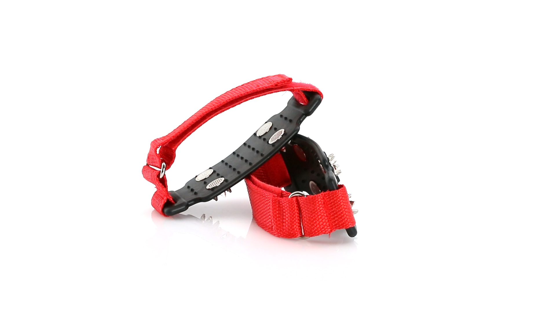 Rutschfeste Spikes für Eis und Schnee aus widerstandsfähigem Polyester in verschiedenen kräftigen Farben. Mit vier Krallen und Verstellmöglichkeit durch Klettverschluss.