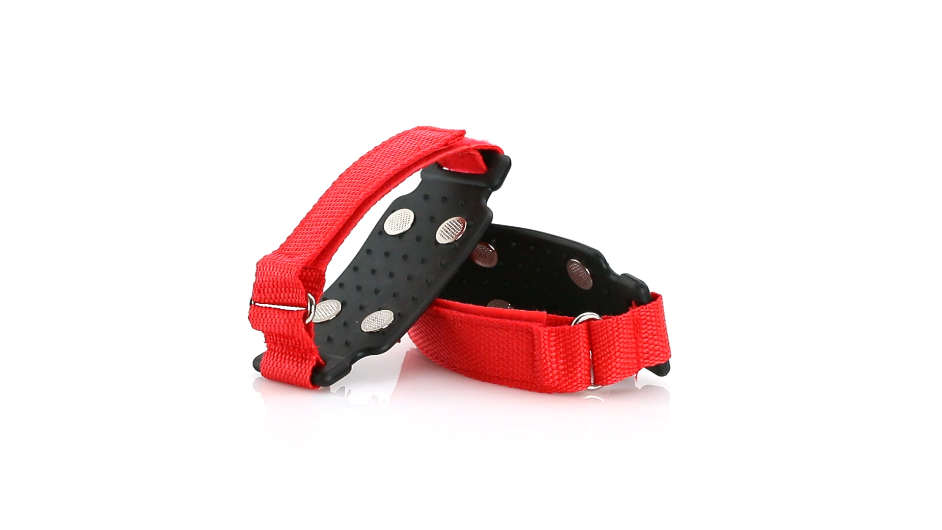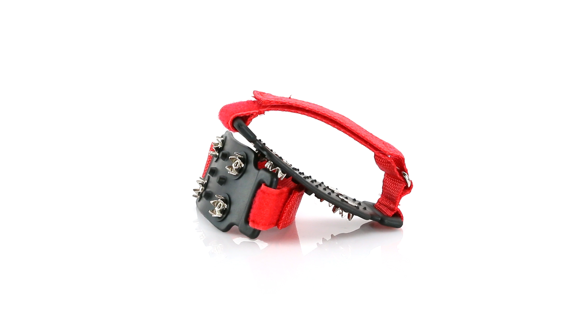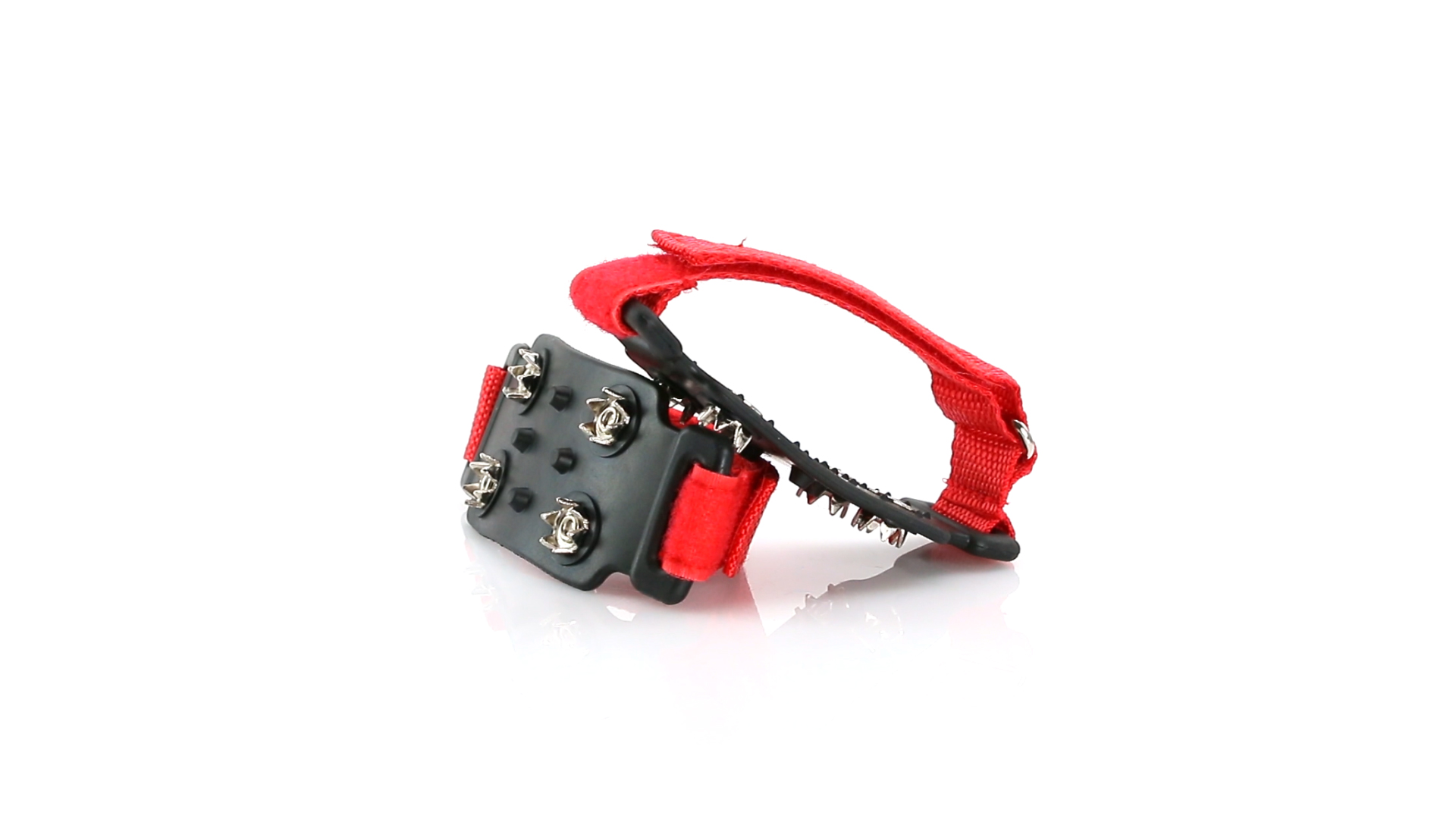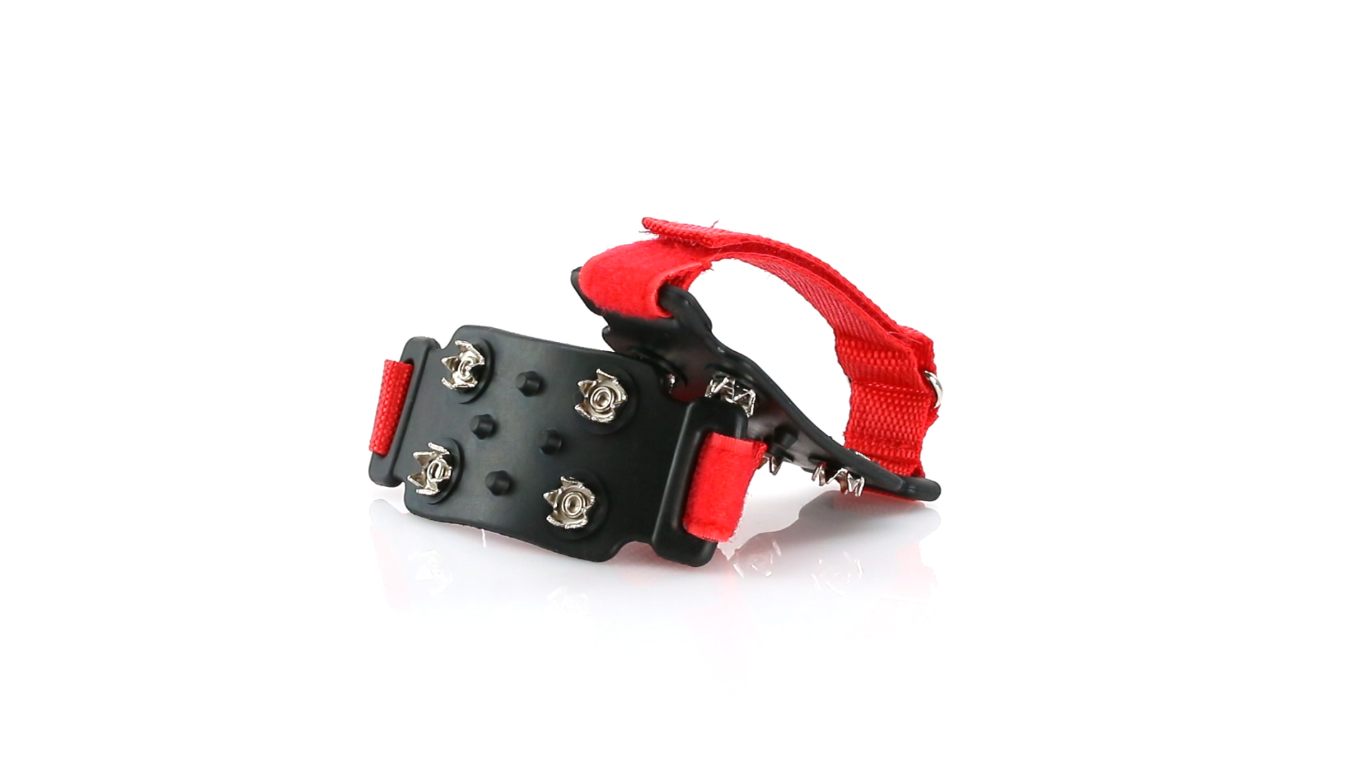 Rutschfeste Spikes für Eis und Schnee aus widerstandsfähigem Polyester in verschiedenen kräftigen Farben. Mit vier Krallen und Verstellmöglichkeit durch Klettverschluss.