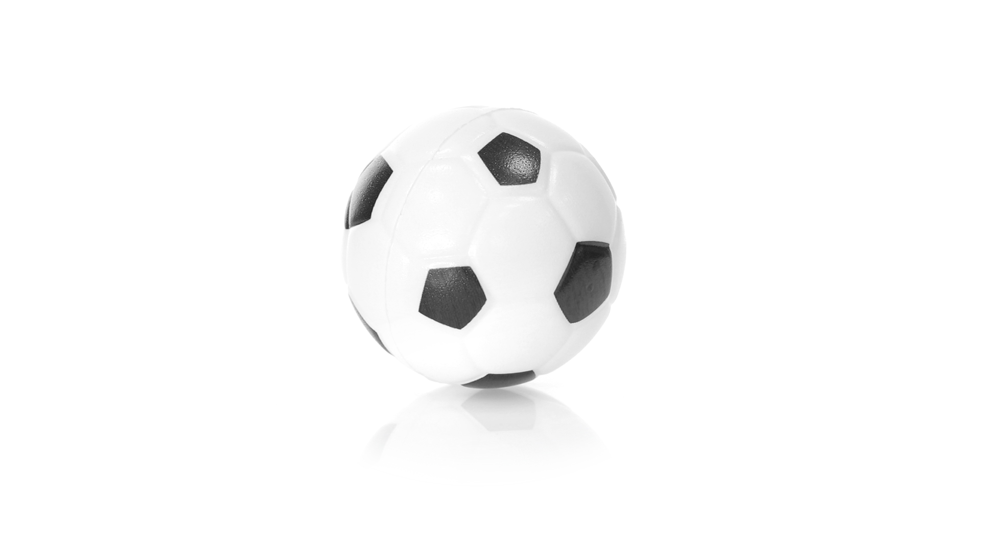 Anti-Stress-Ball im Fussball-Design und weichem PU-Körper.