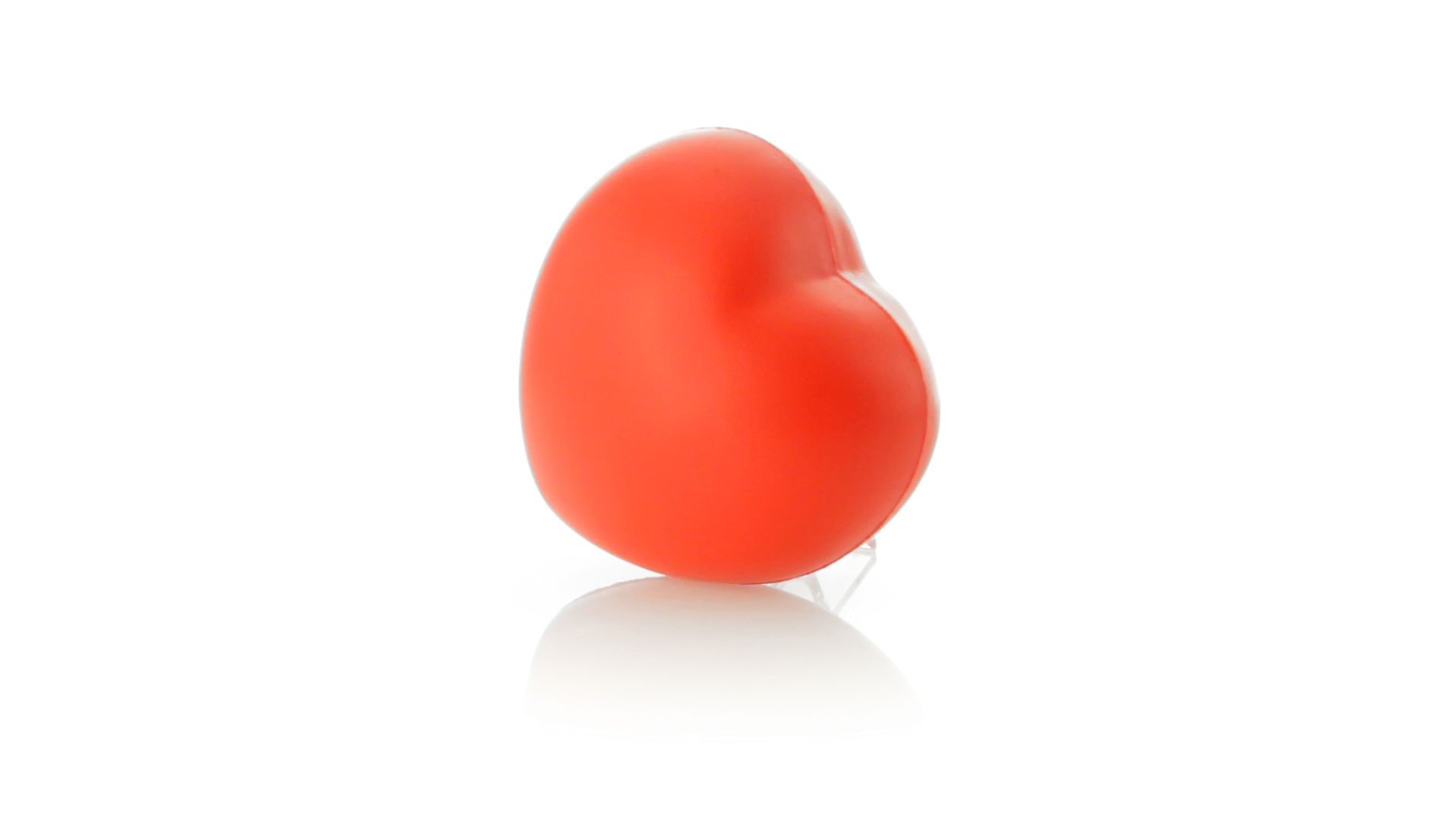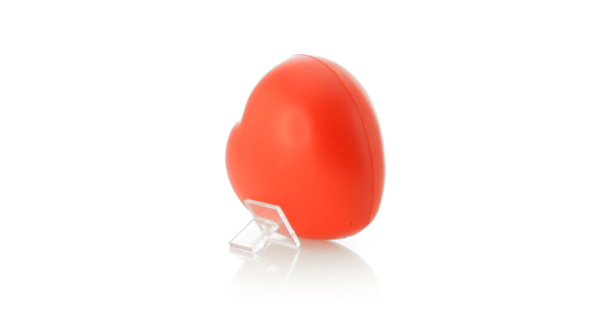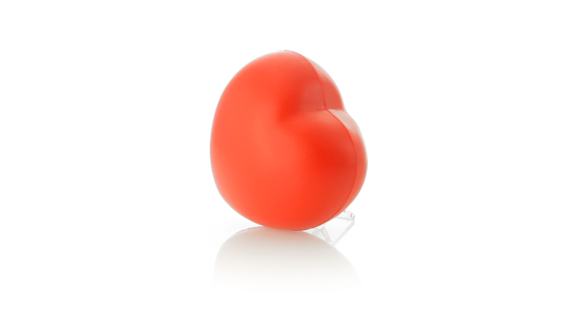 Anti-Stress-Herz in lebendigen Farben aus weichem, glänzendem PU-Schaum.