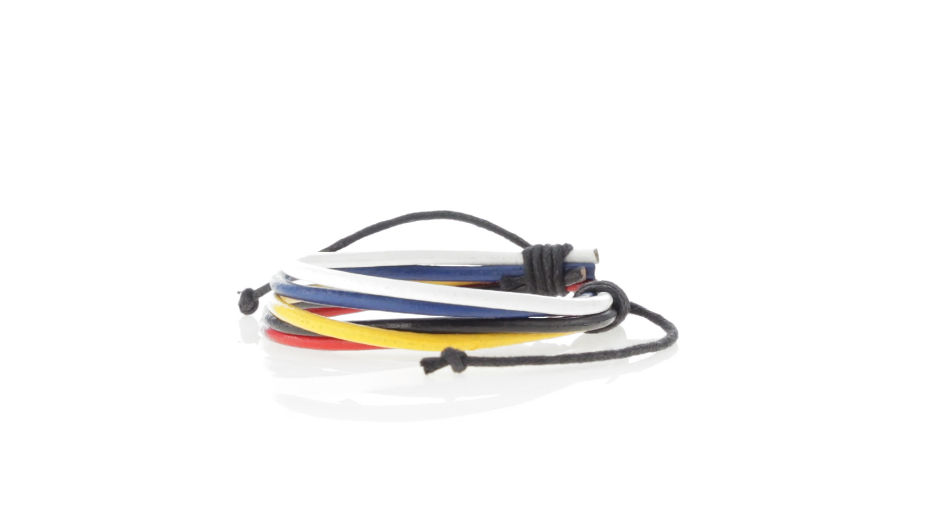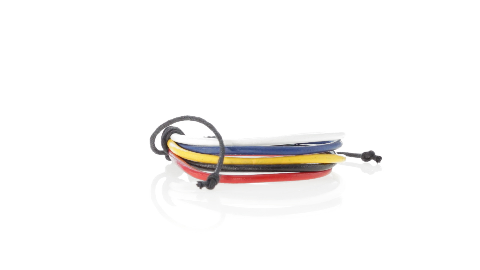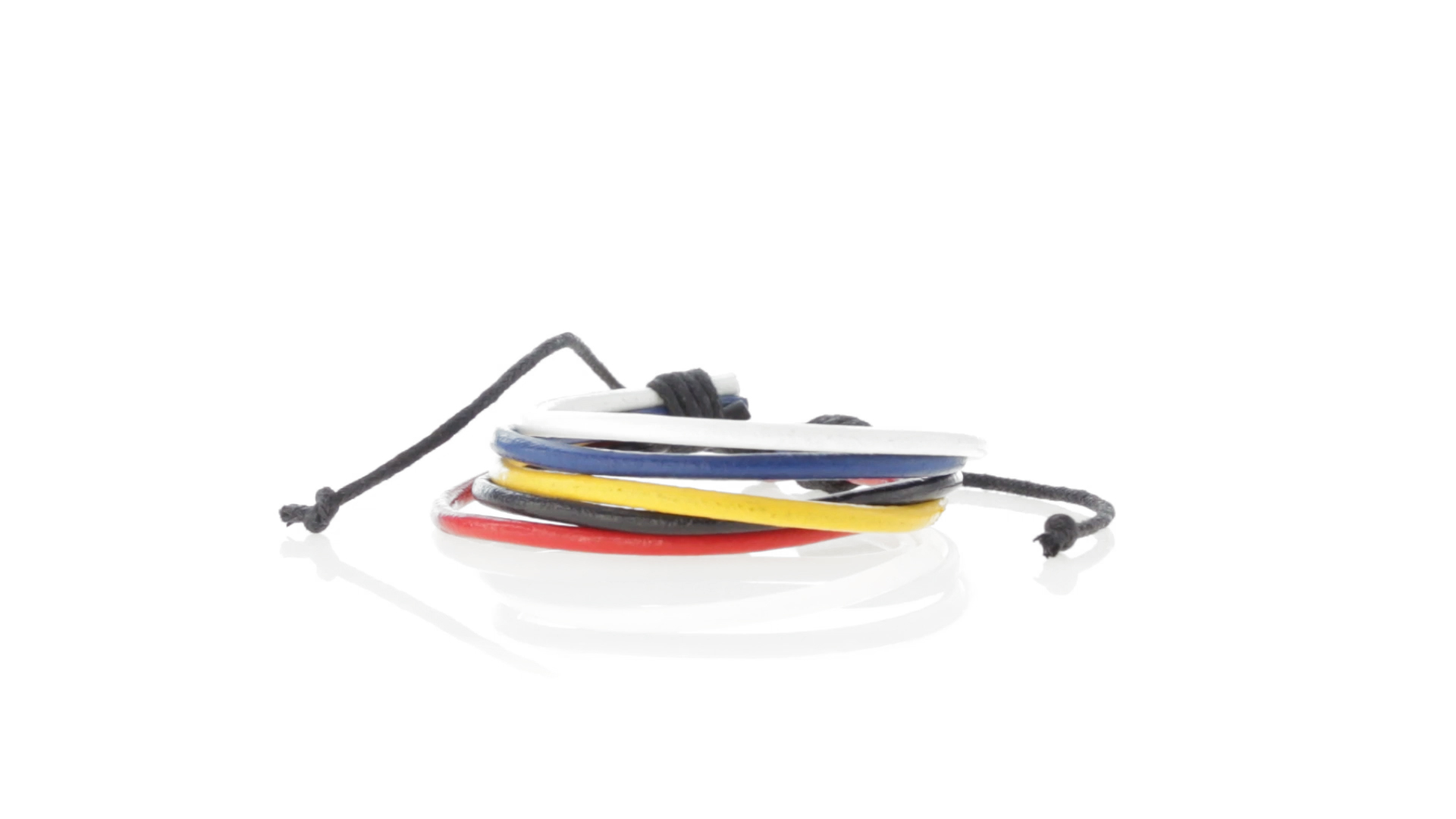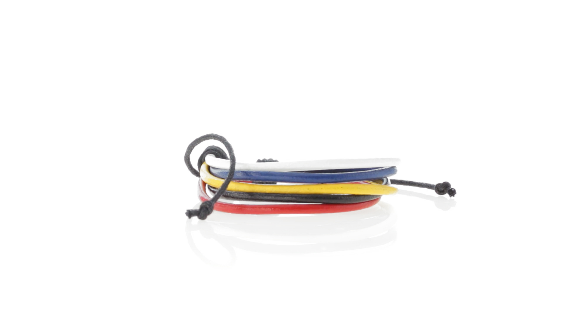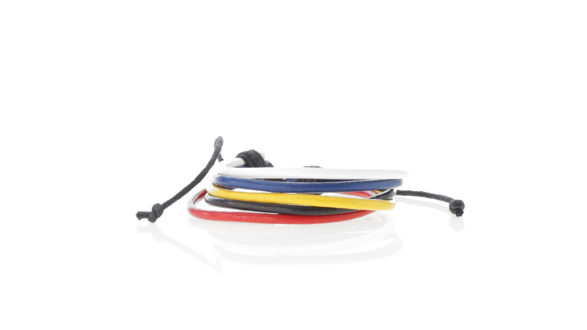 Verstellbares Kunstlederarmband mit 5 bunten Bändern - speziell für den Tampondruck entwickelt.