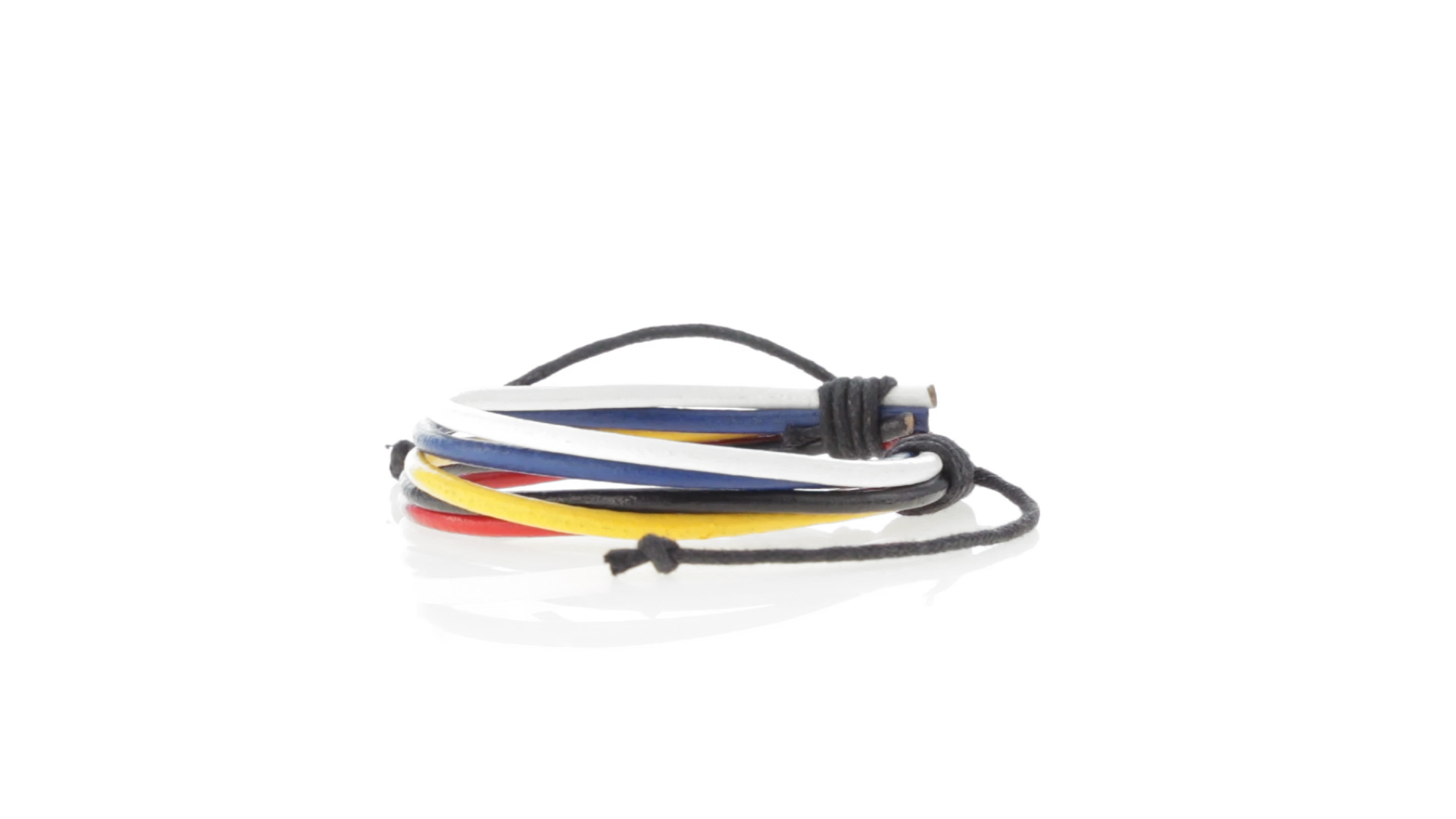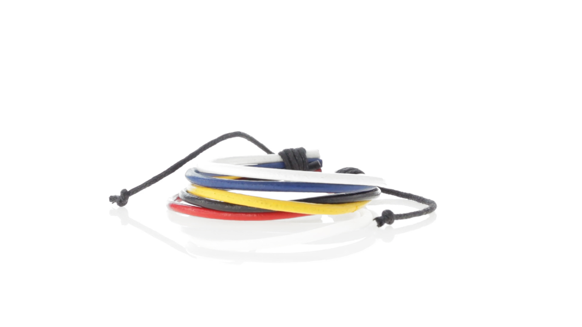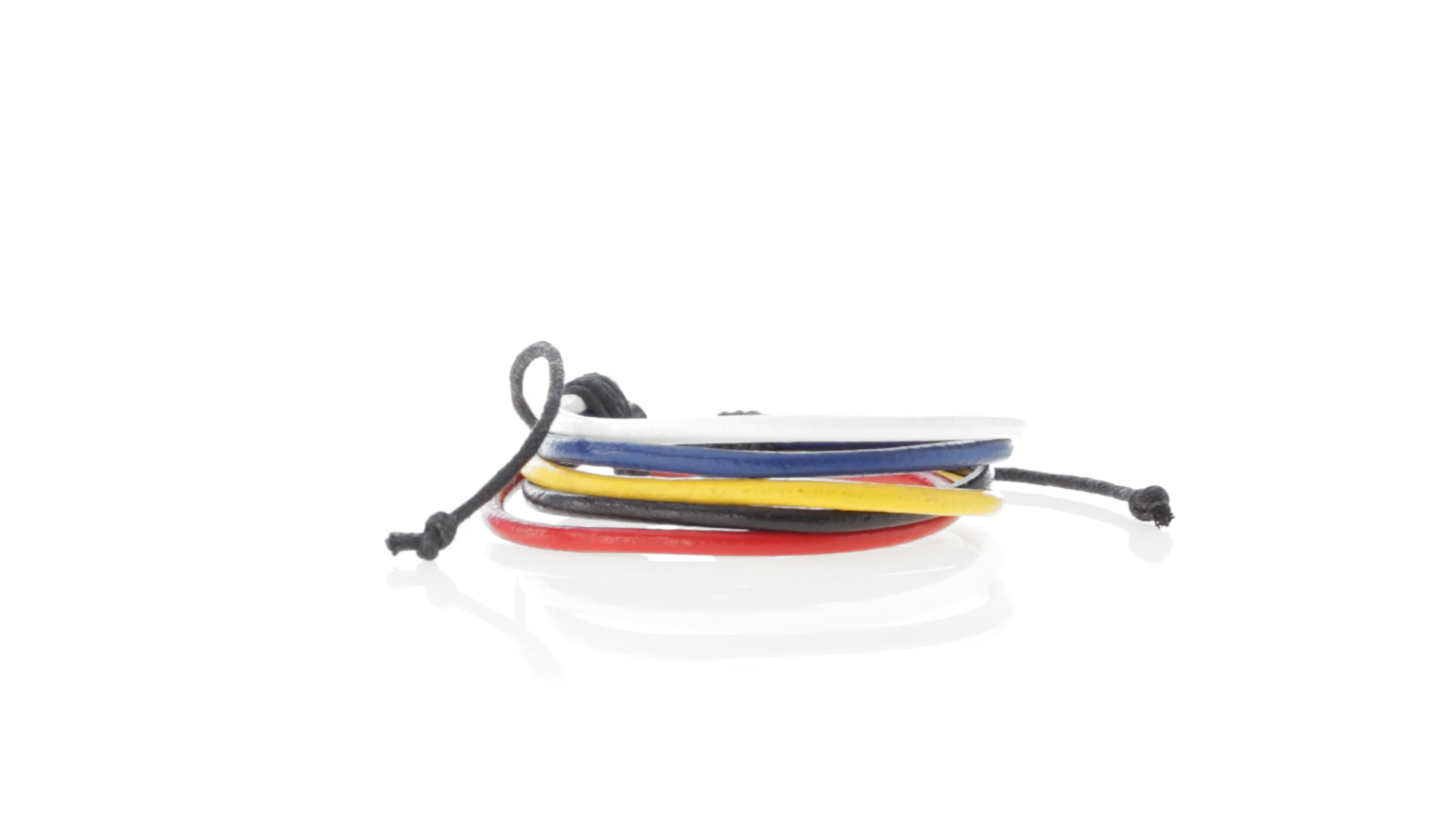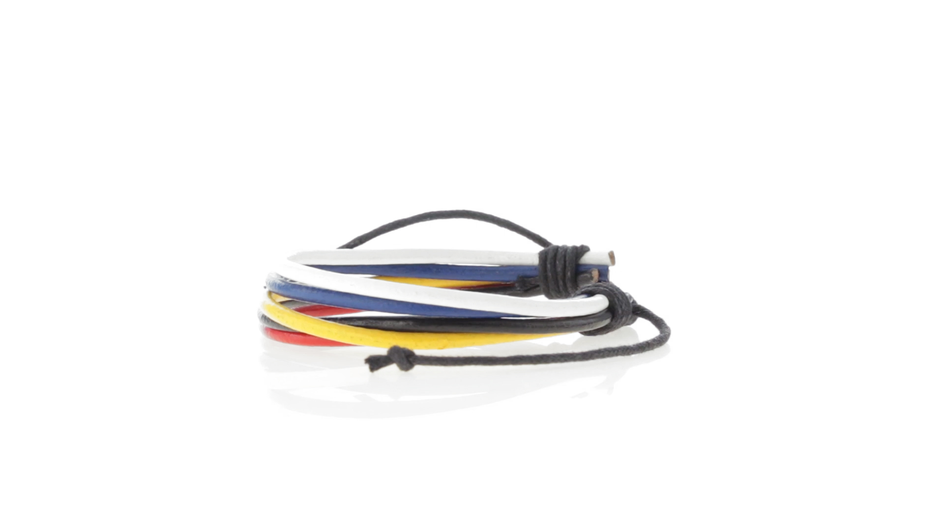 Verstellbares Kunstlederarmband mit 5 bunten Bändern - speziell für den Tampondruck entwickelt.
