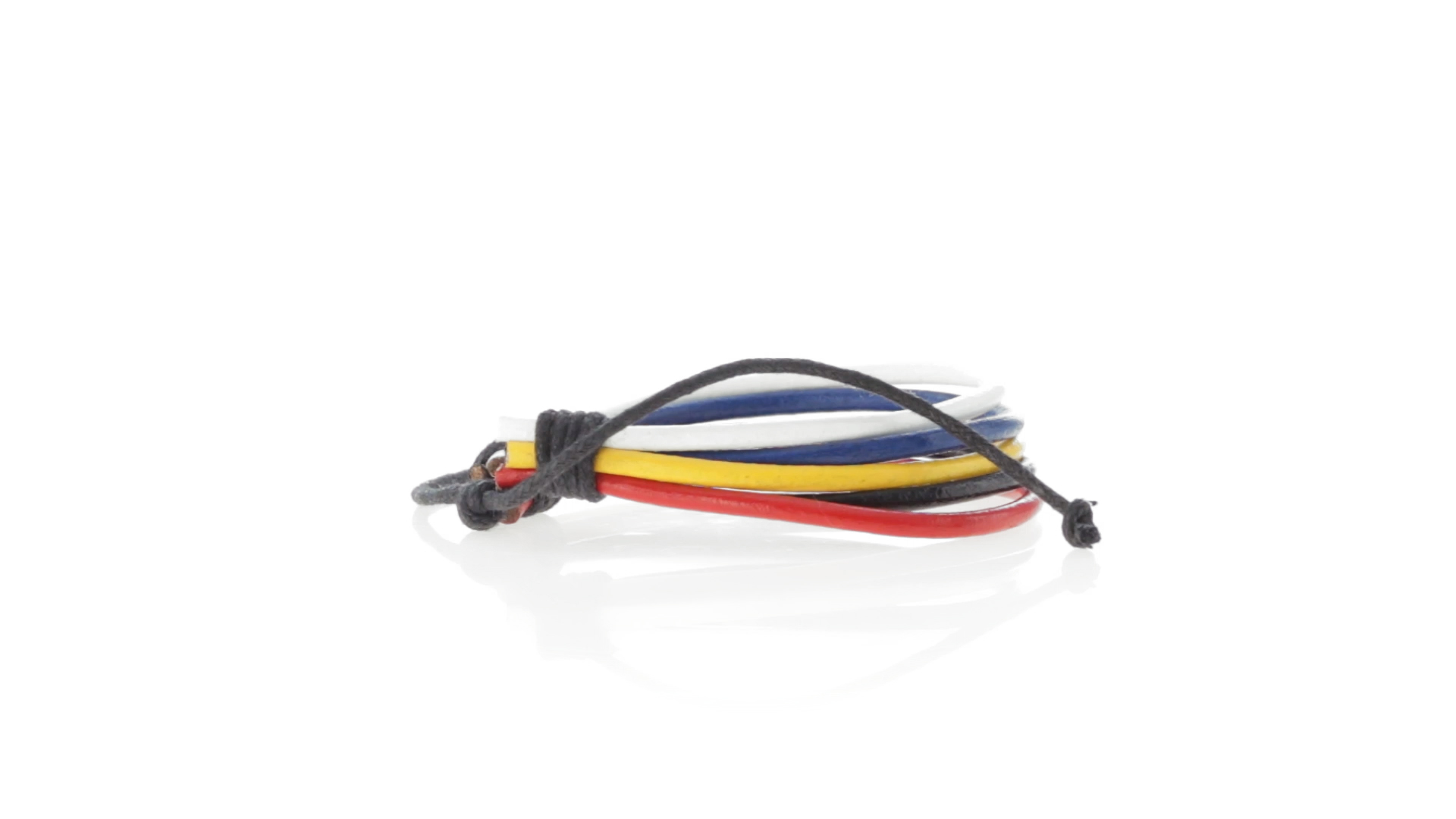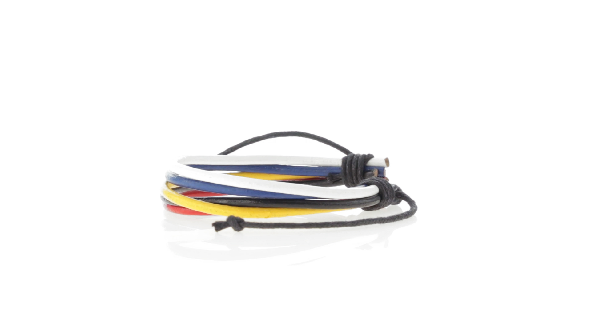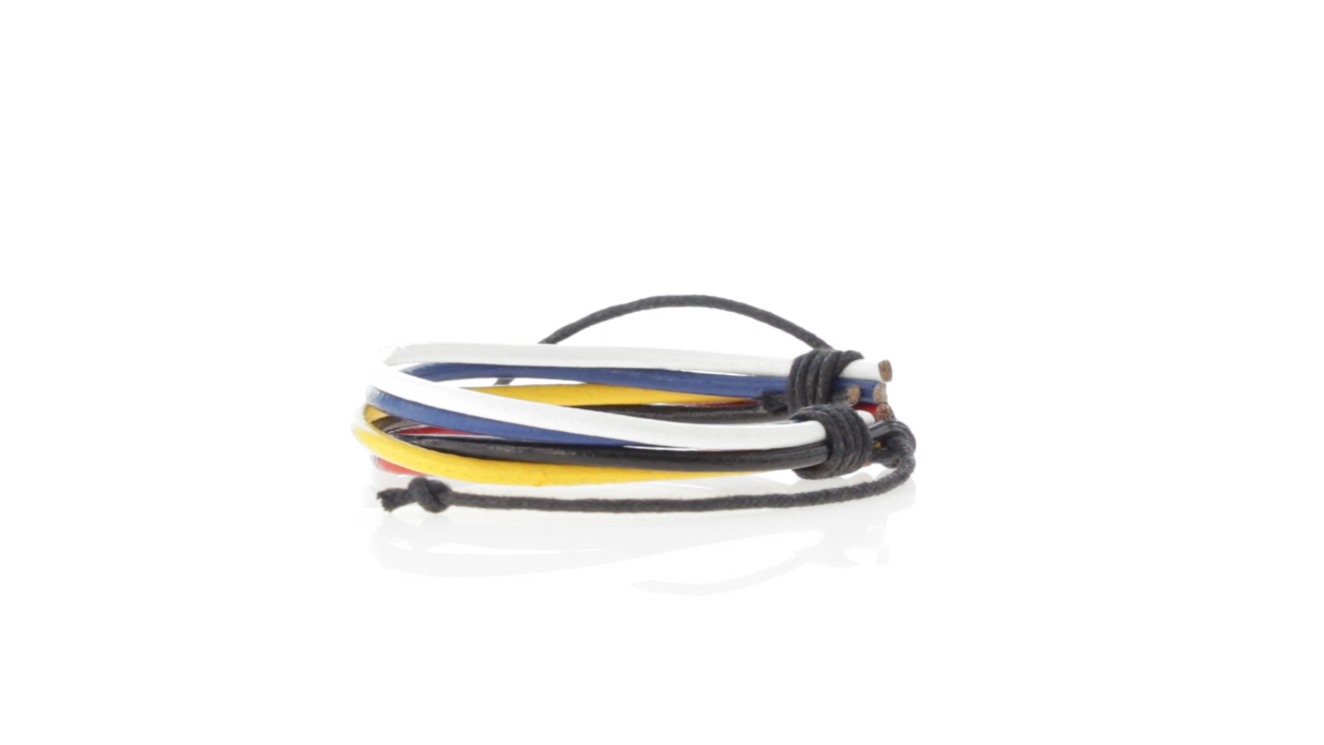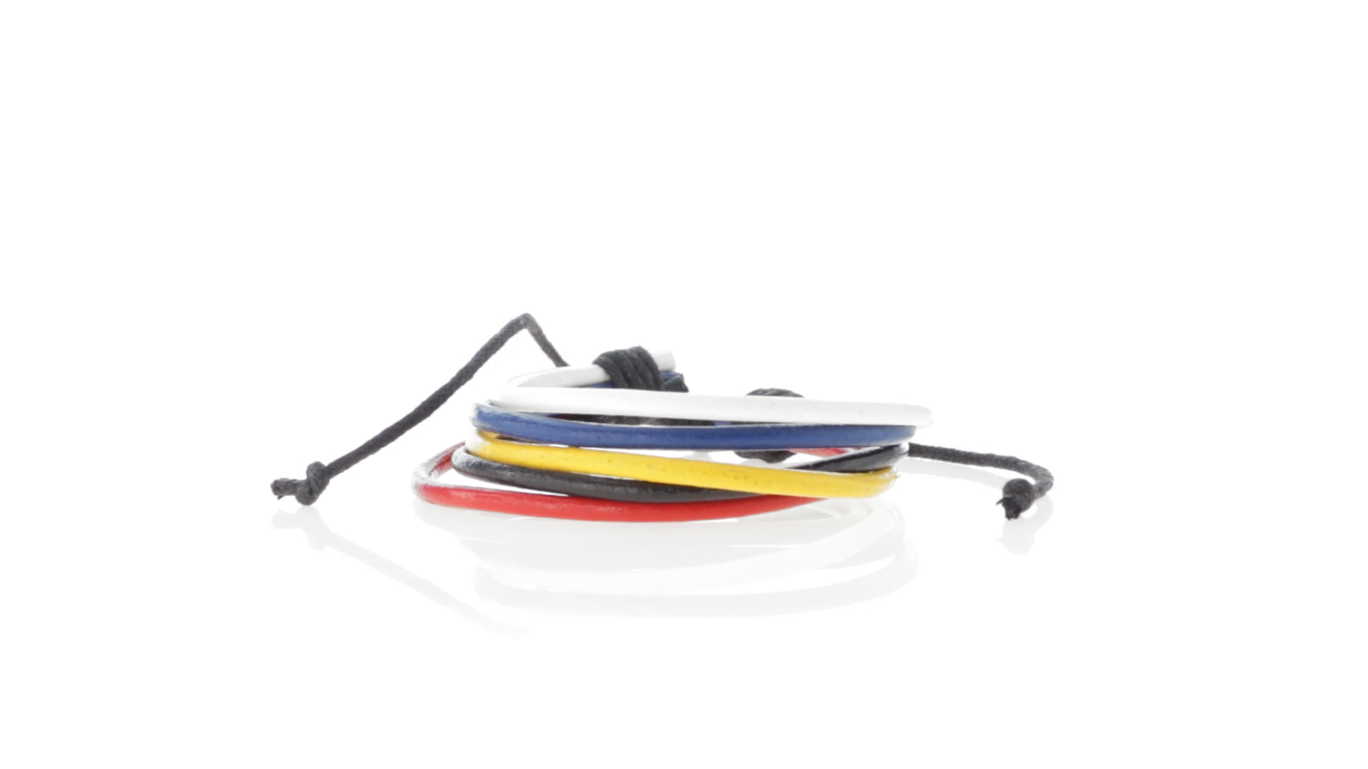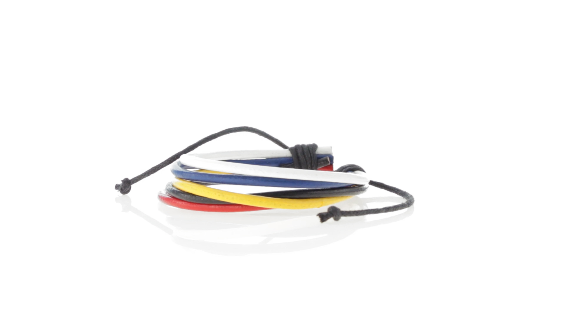 Verstellbares Kunstlederarmband mit 5 bunten Bändern - speziell für den Tampondruck entwickelt.
