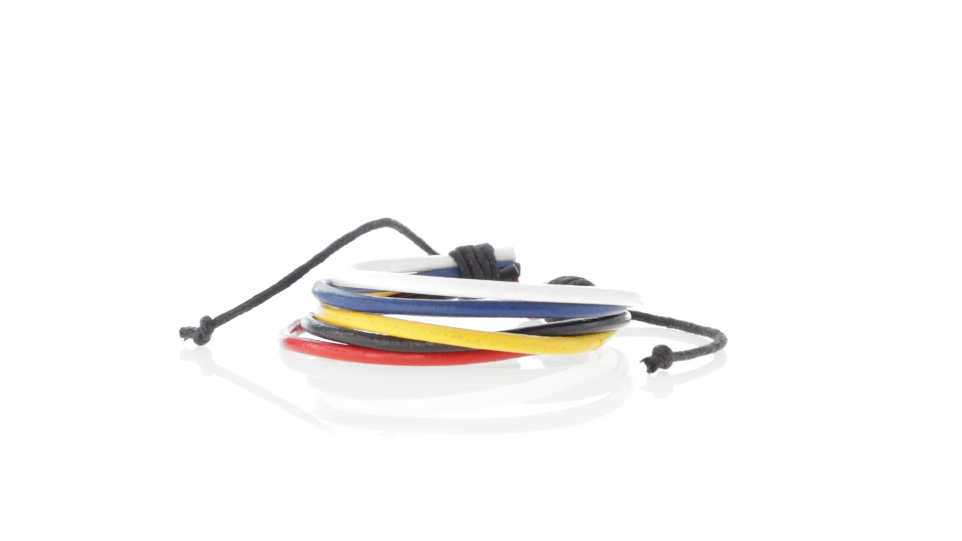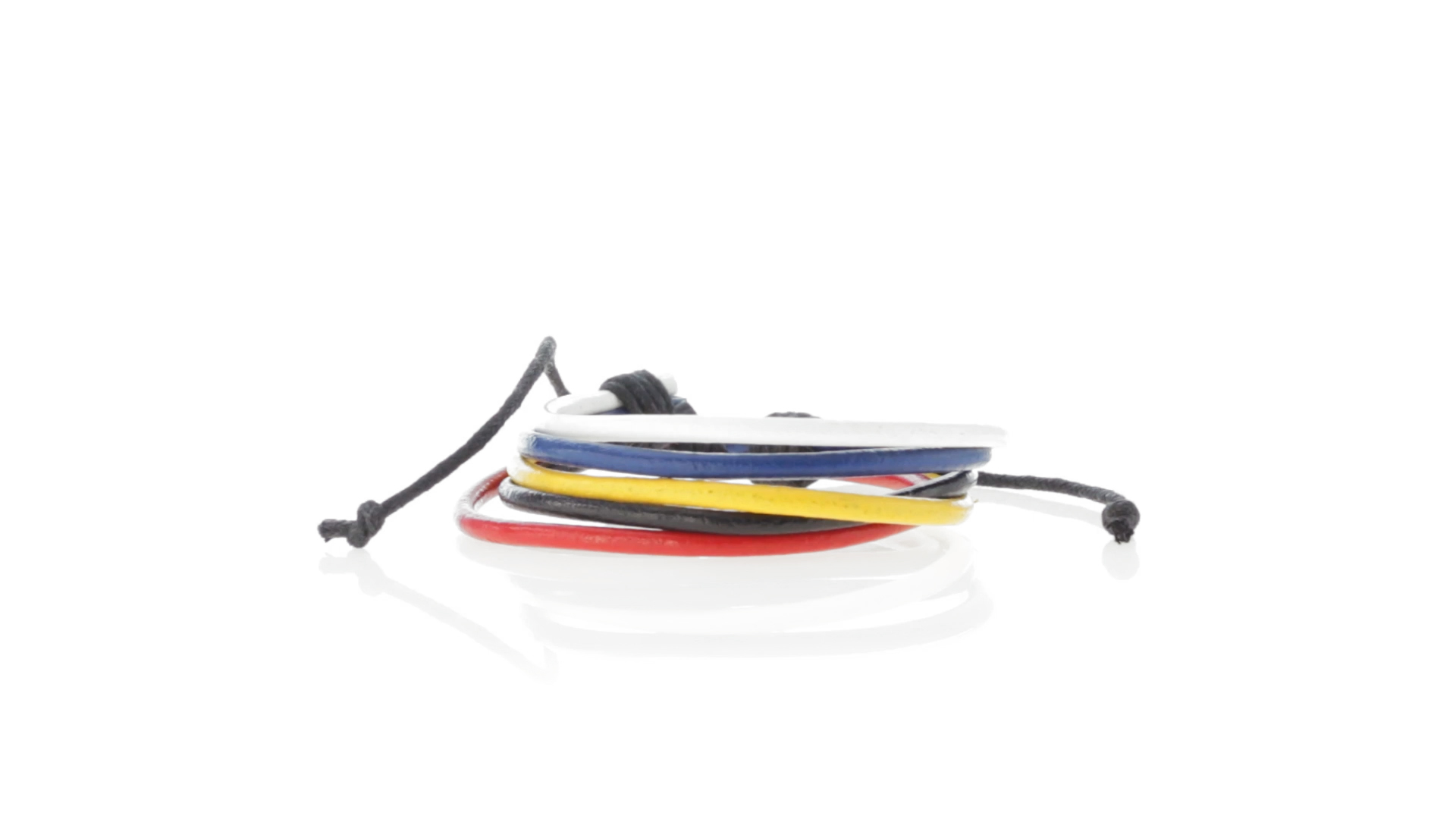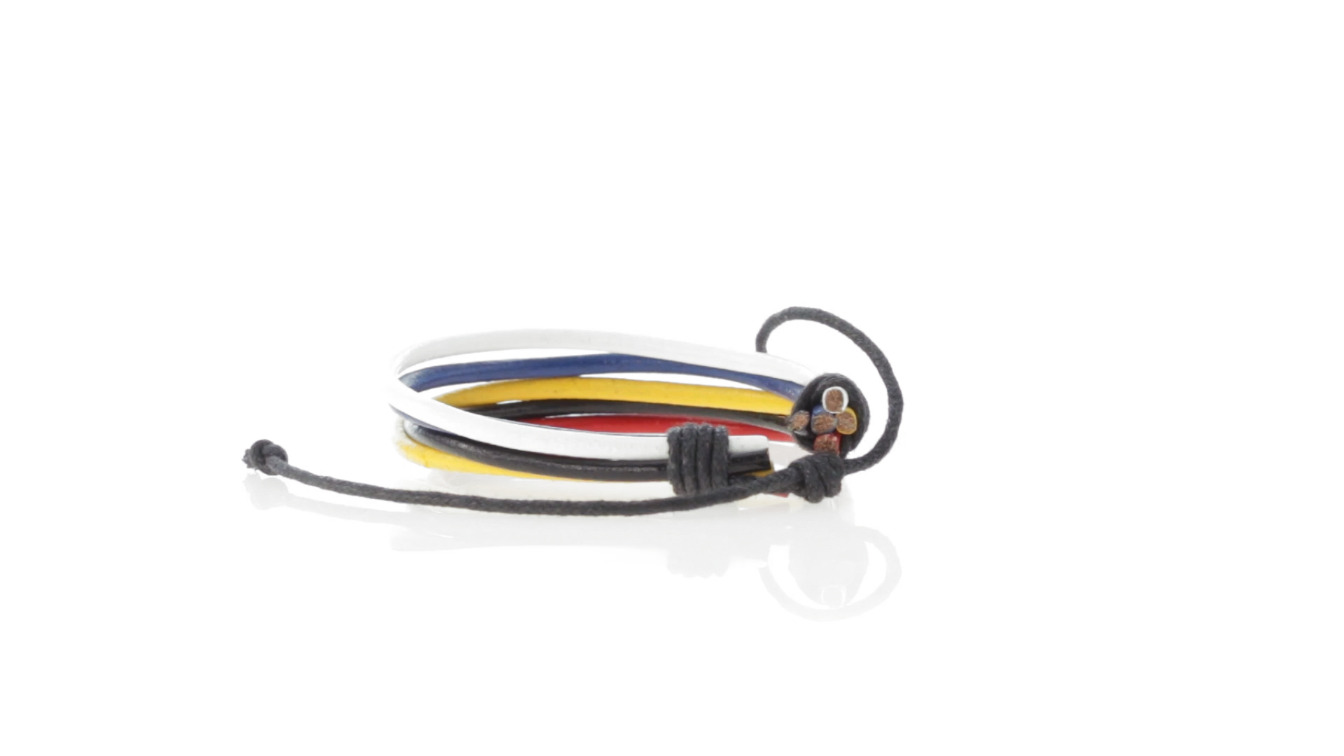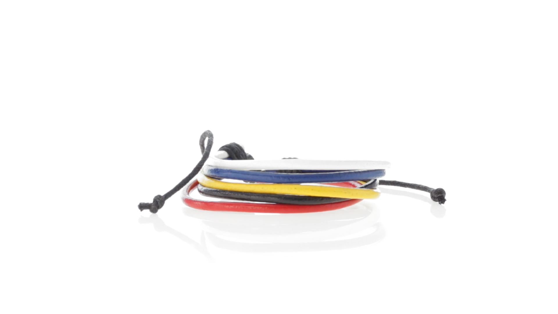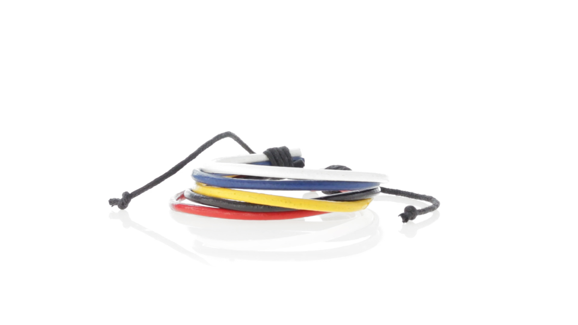 Verstellbares Kunstlederarmband mit 5 bunten Bändern - speziell für den Tampondruck entwickelt.