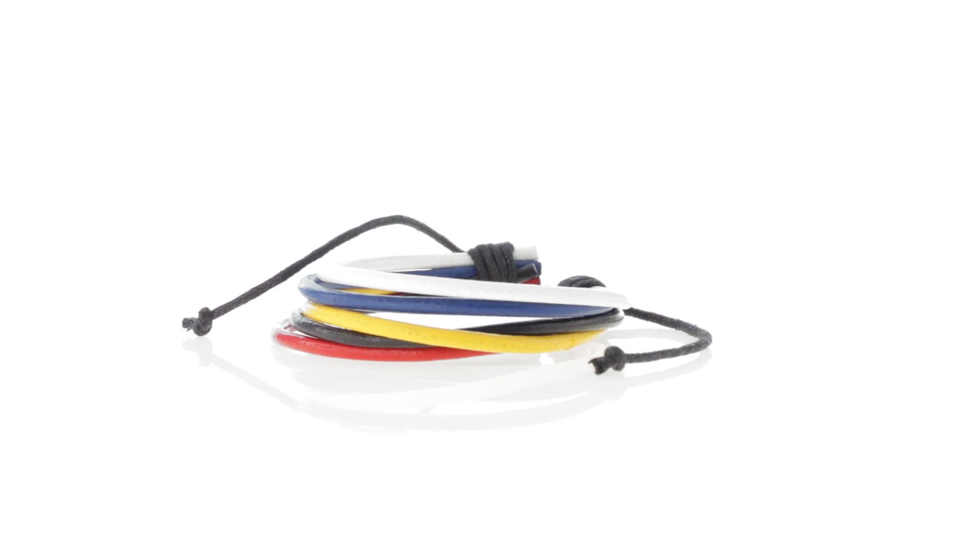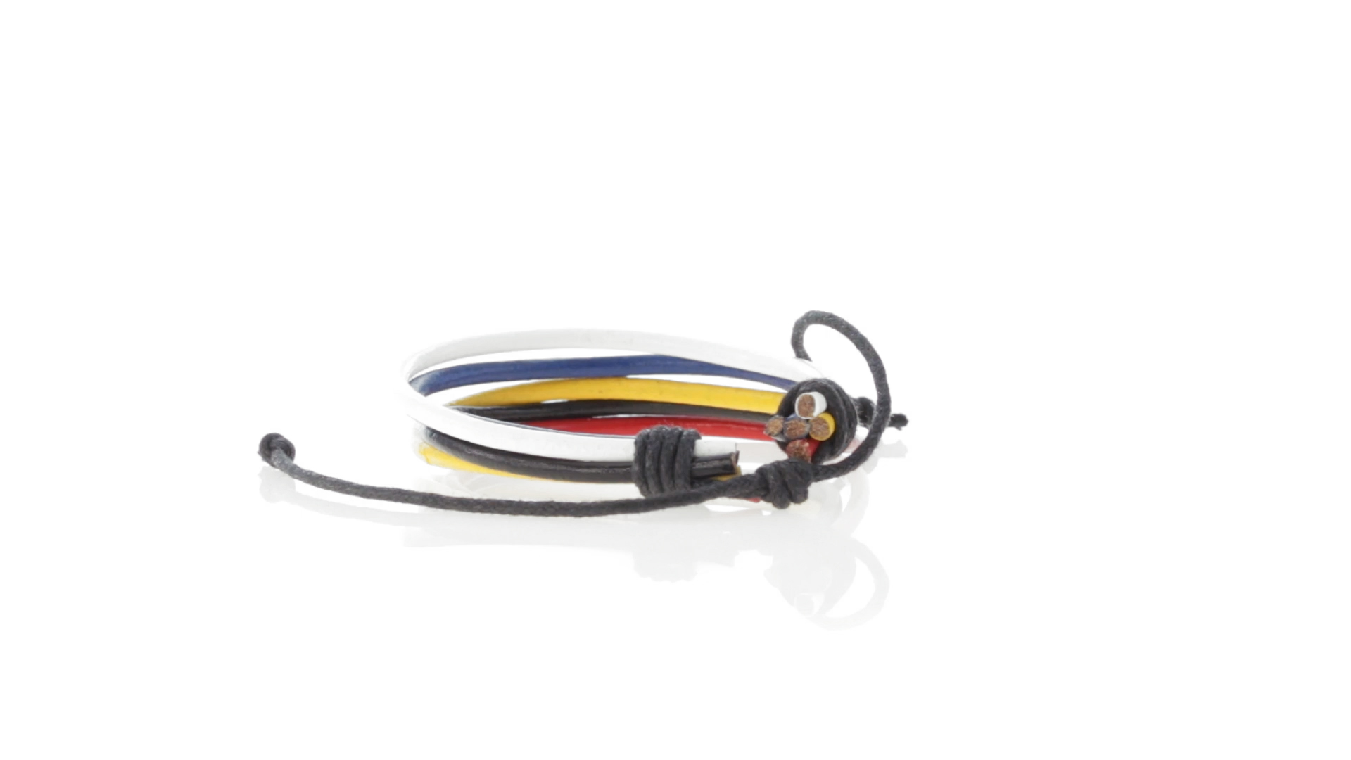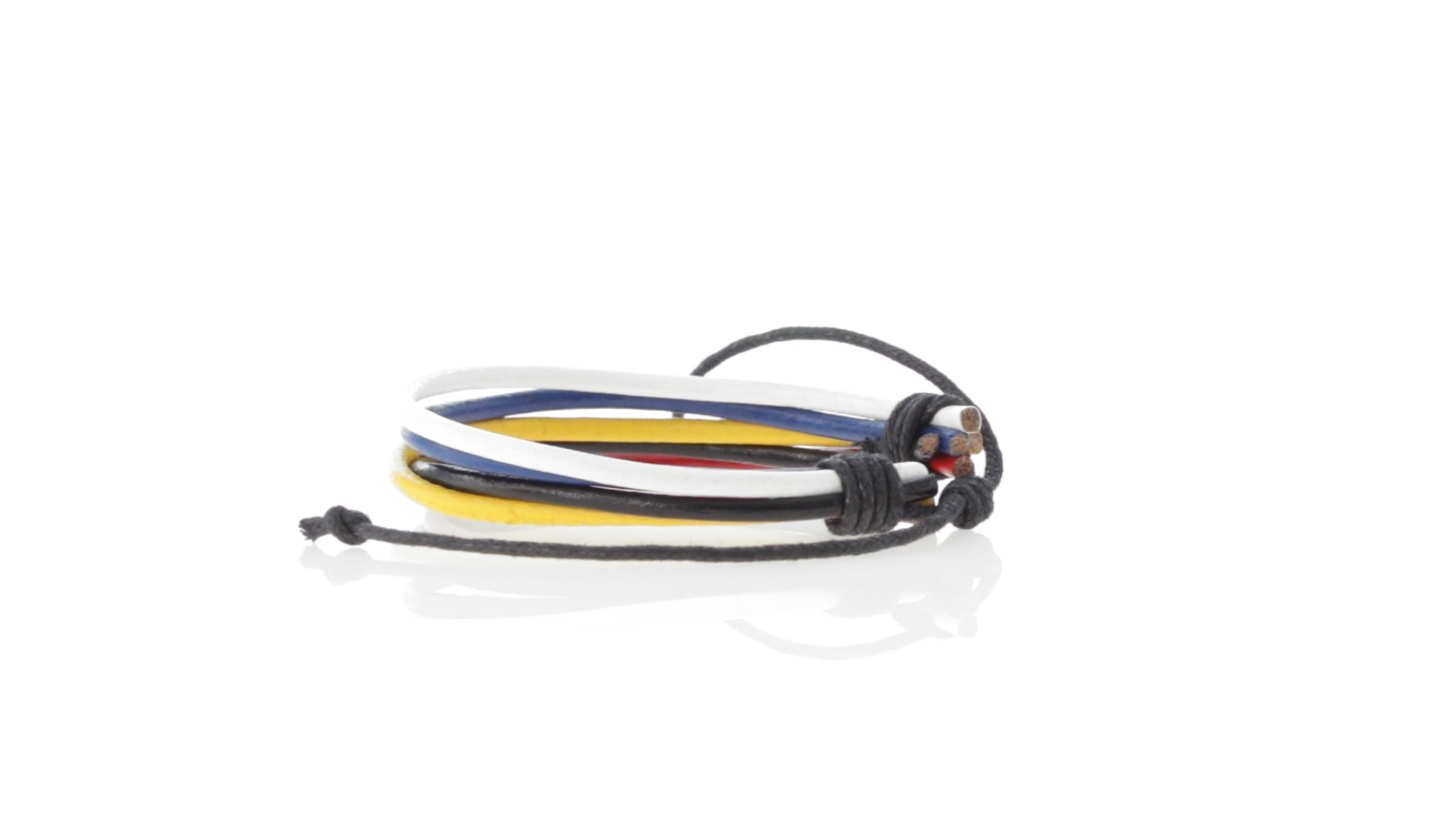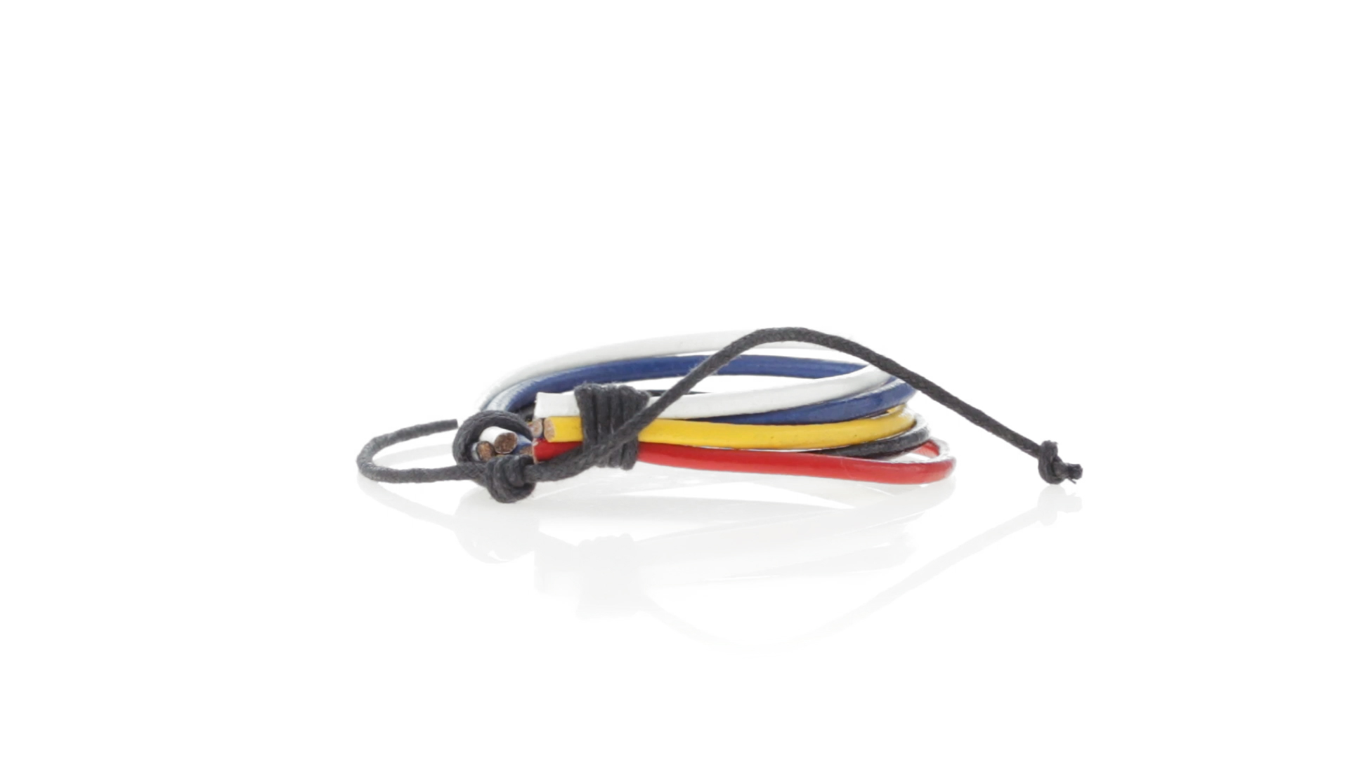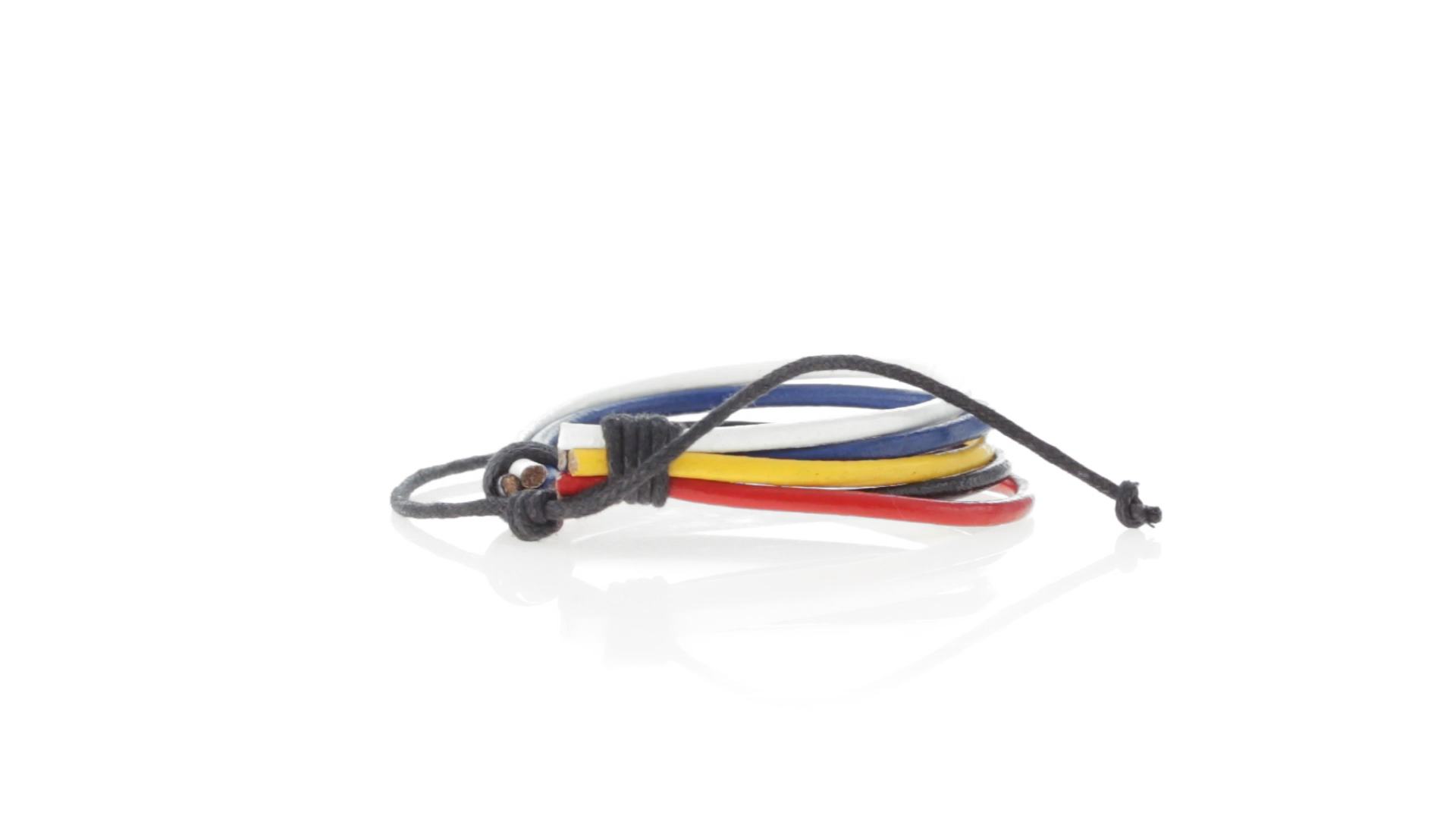 Verstellbares Kunstlederarmband mit 5 bunten Bändern - speziell für den Tampondruck entwickelt.