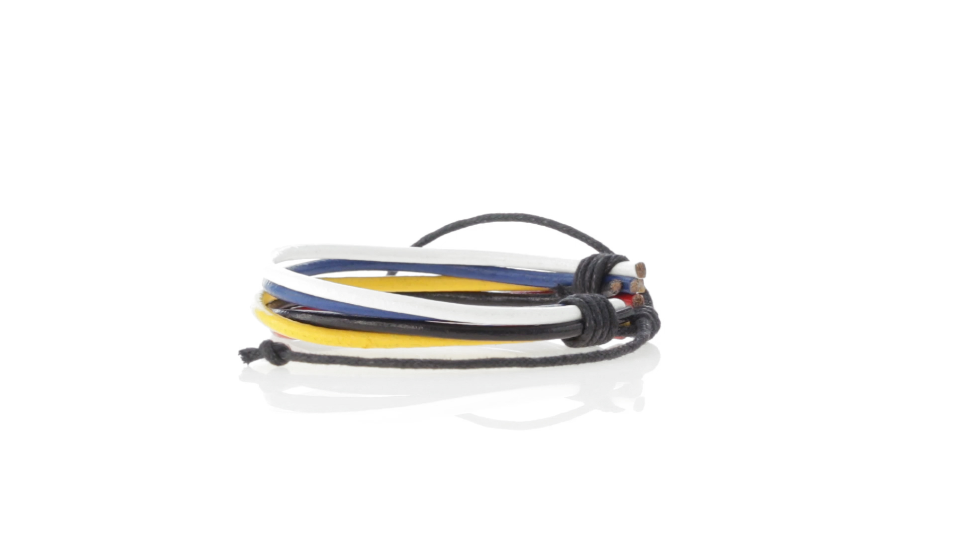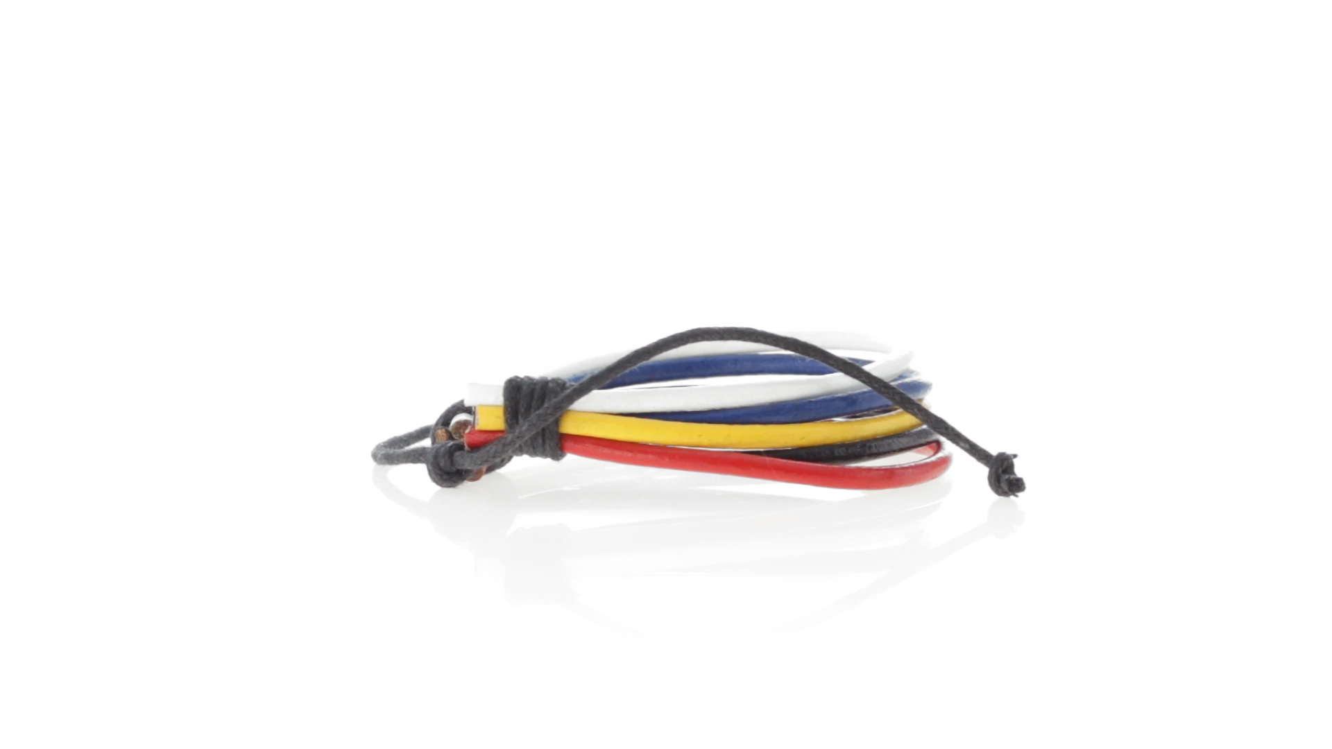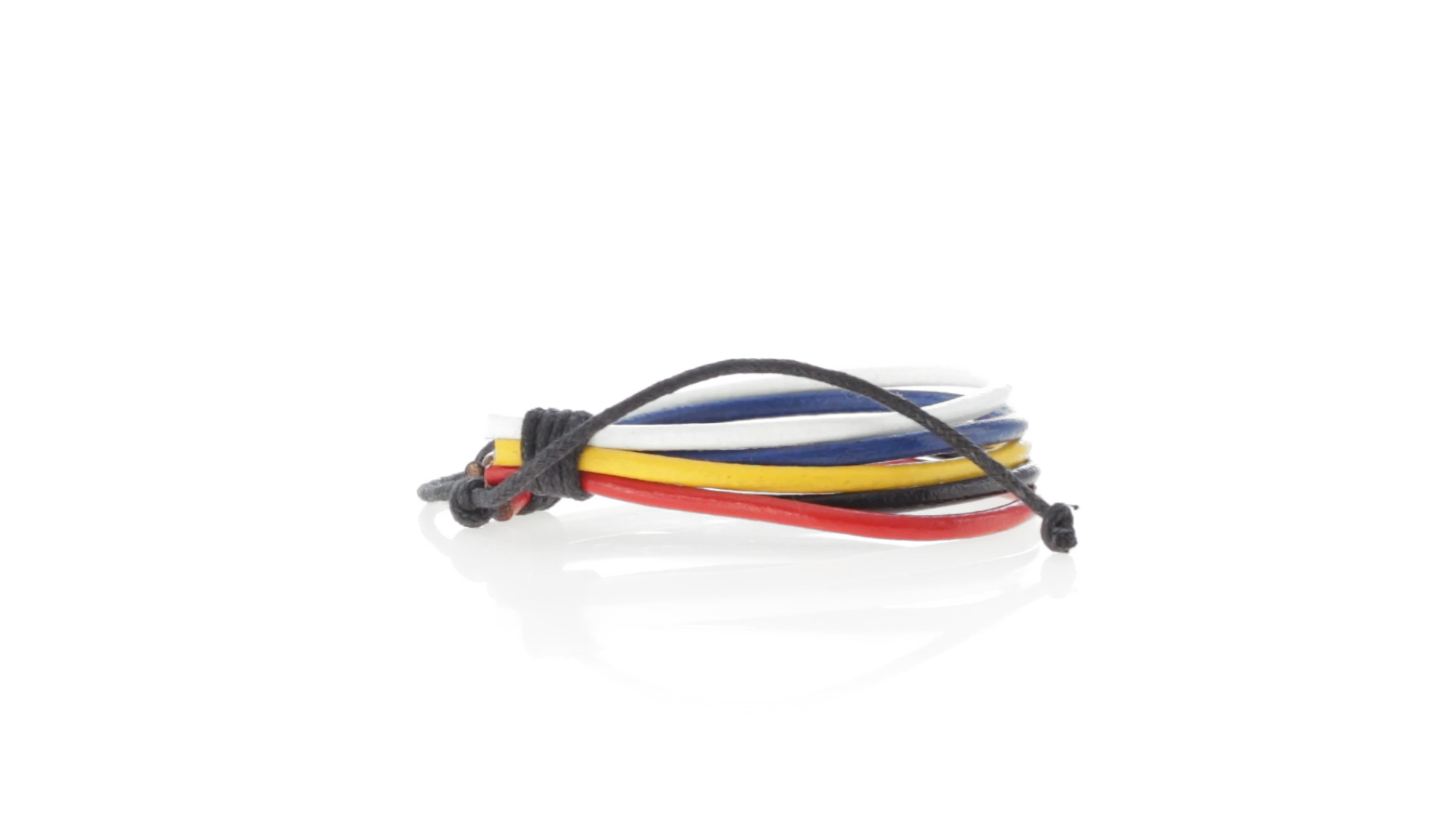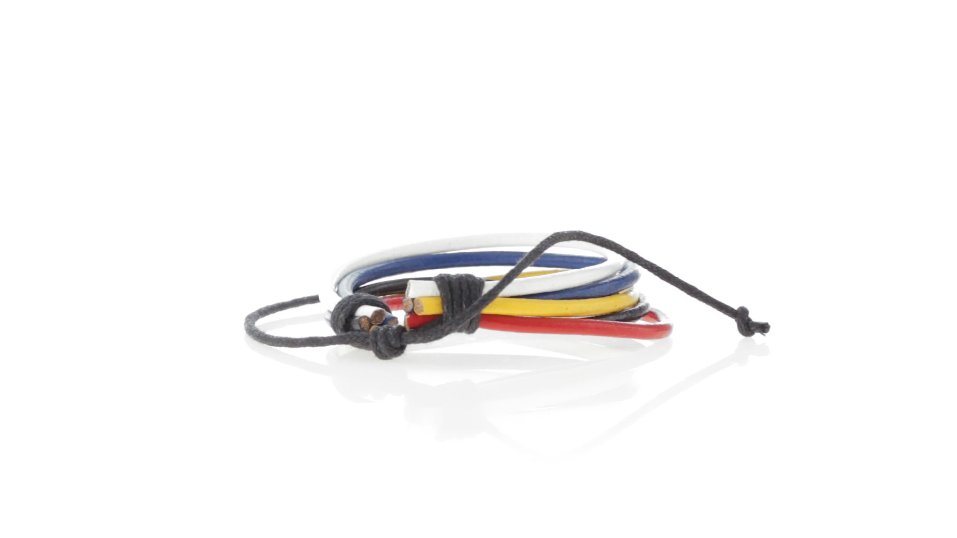 Verstellbares Kunstlederarmband mit 5 bunten Bändern - speziell für den Tampondruck entwickelt.