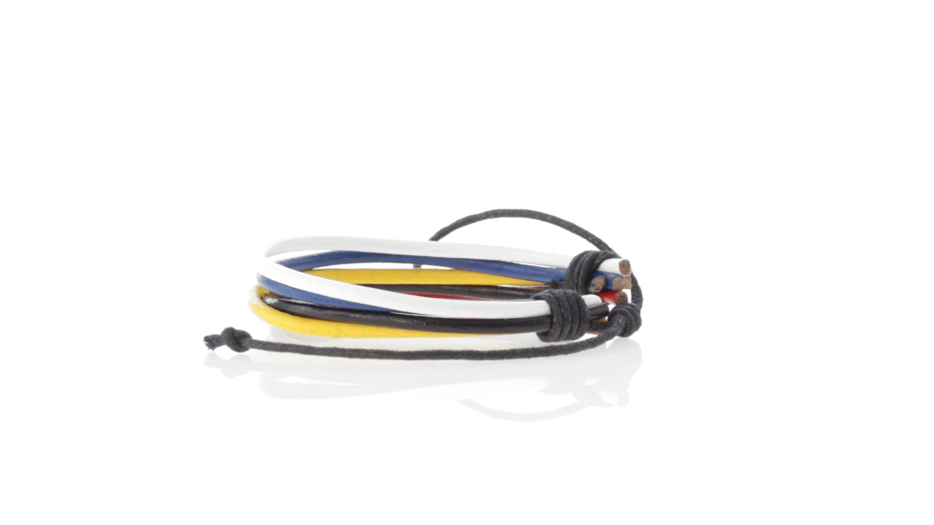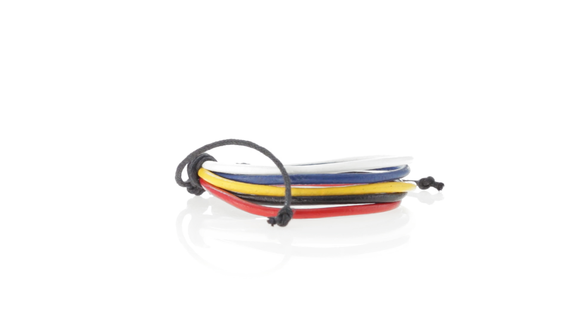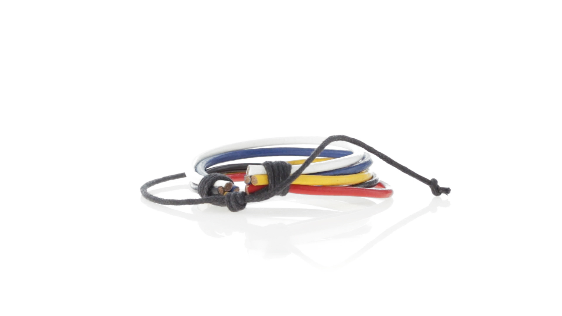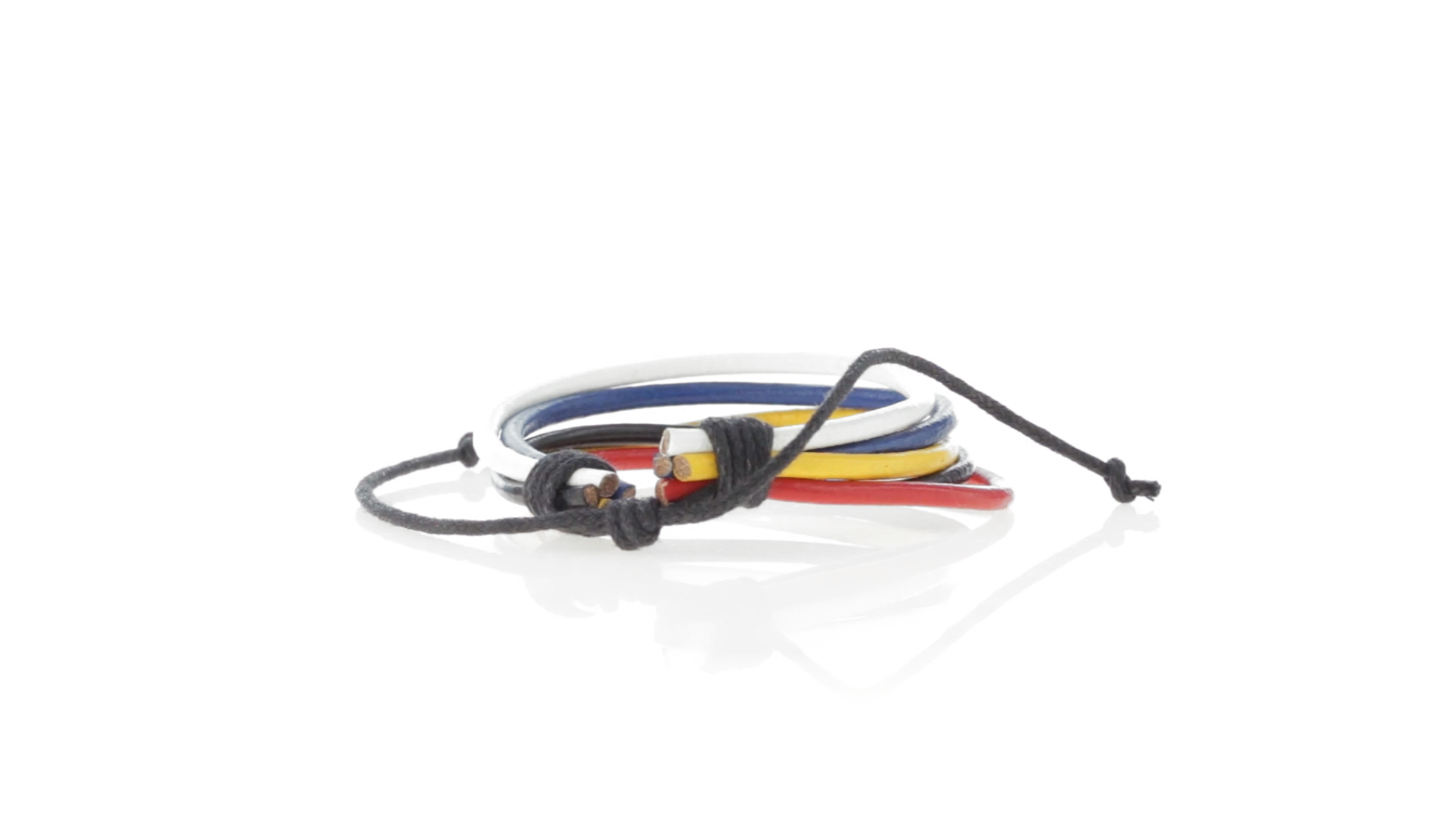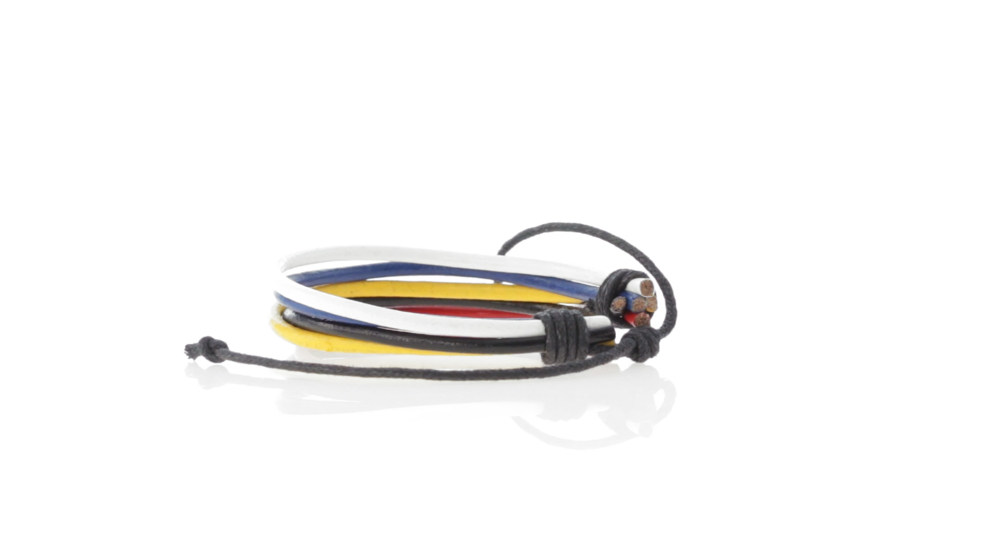 Verstellbares Kunstlederarmband mit 5 bunten Bändern - speziell für den Tampondruck entwickelt.