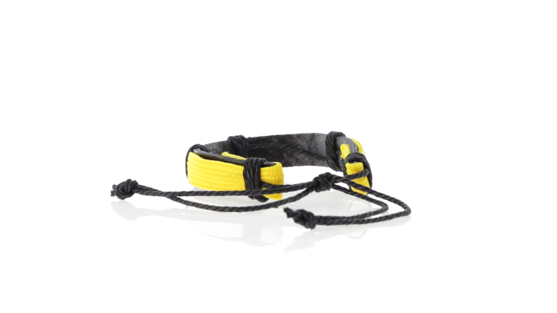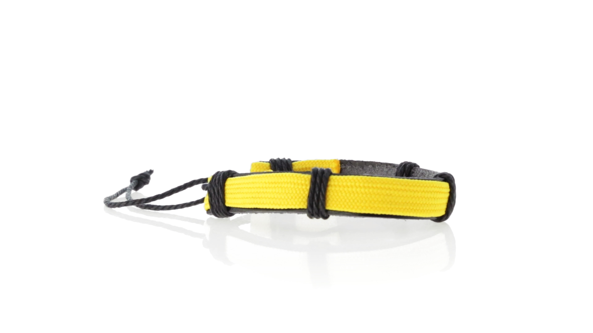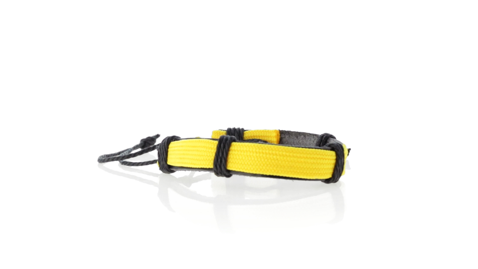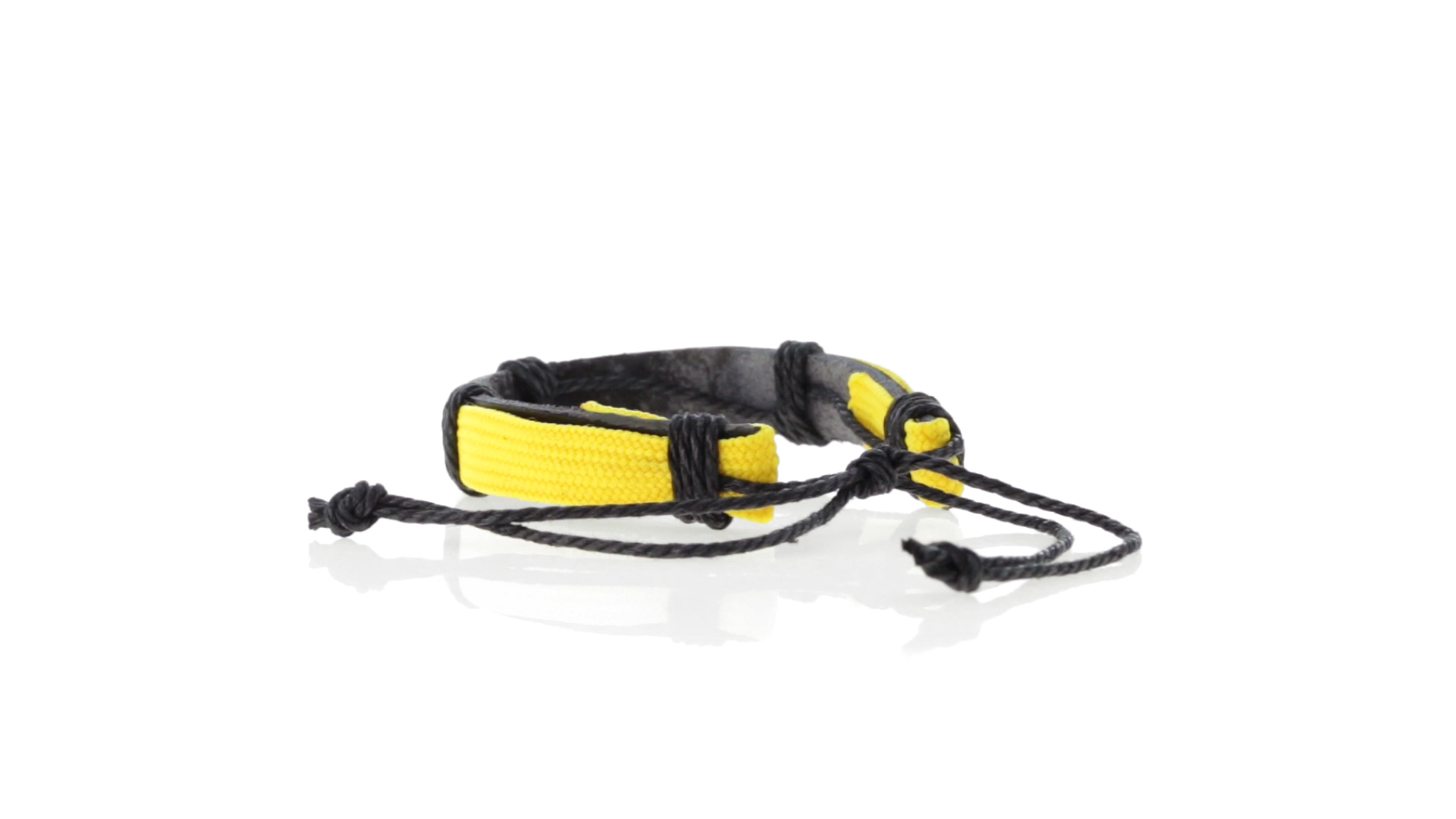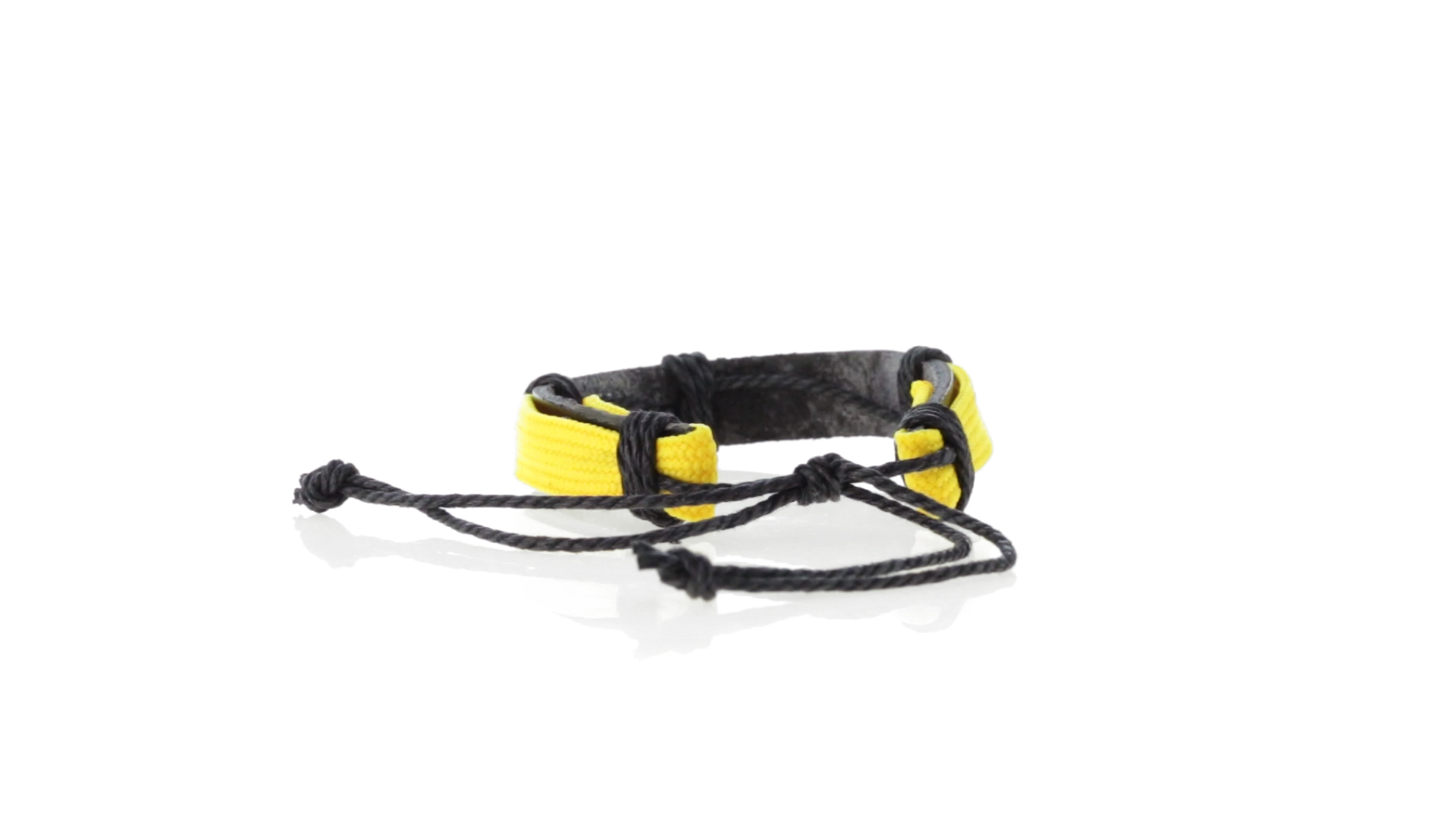 Verstellbares Lederarmband mit Polyesterfäden in lebendigen Farben. Mit verstellbaren, verstärkten Verschlussbändern.