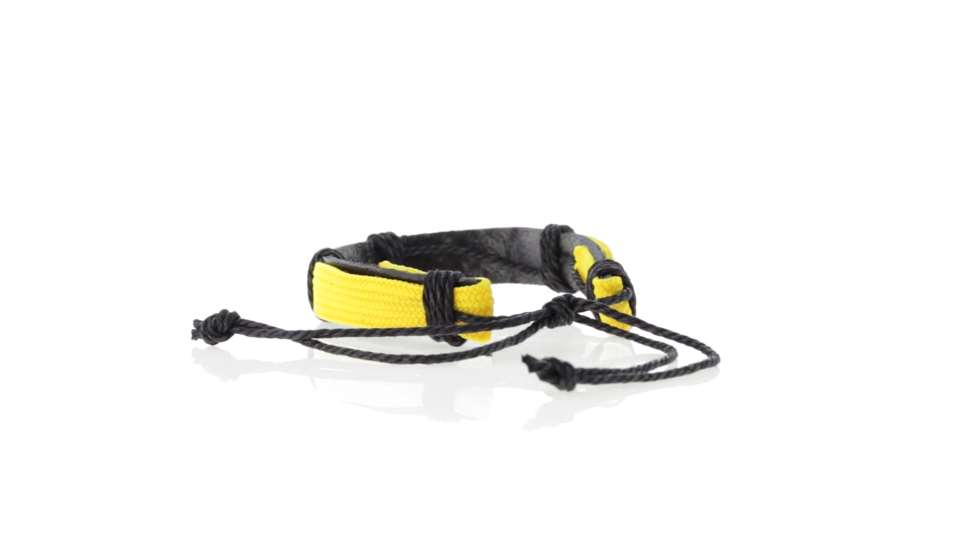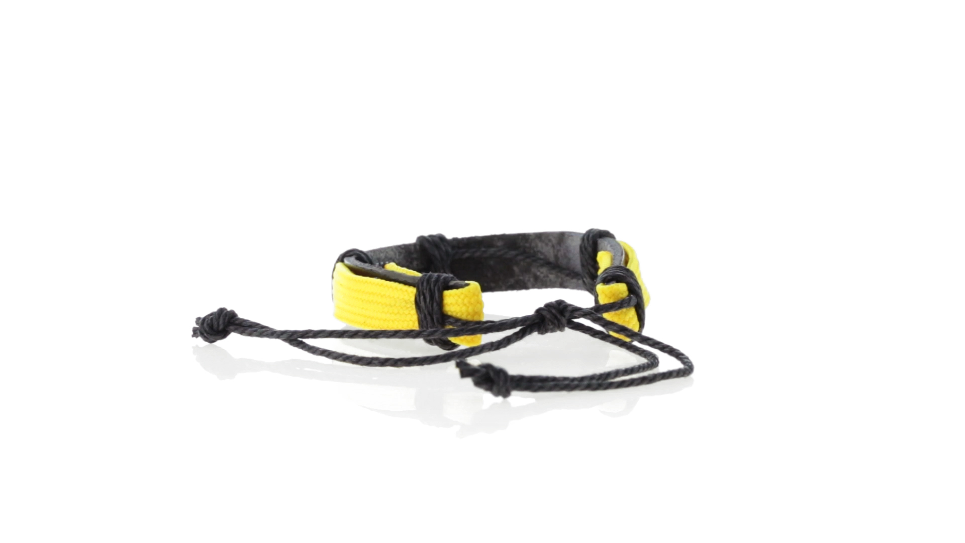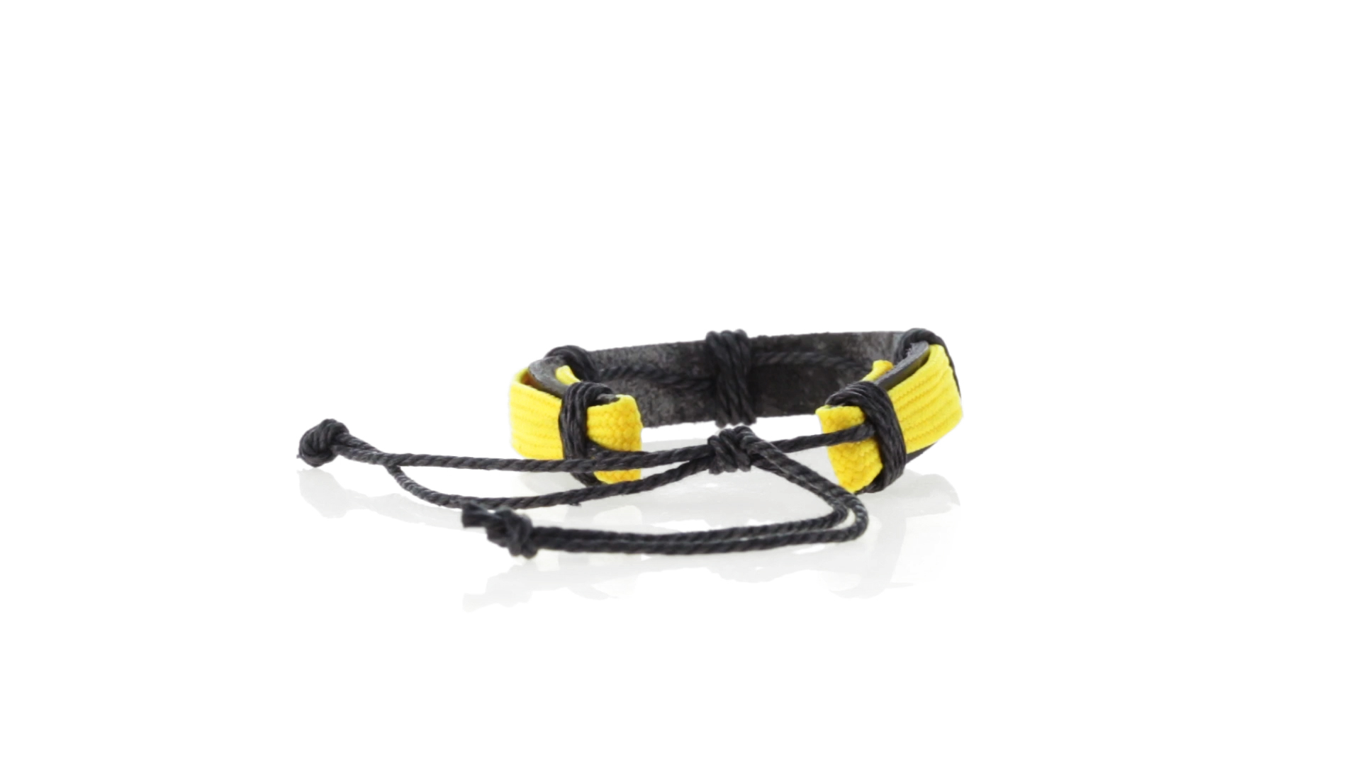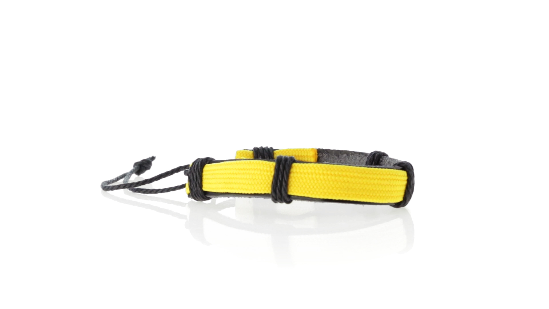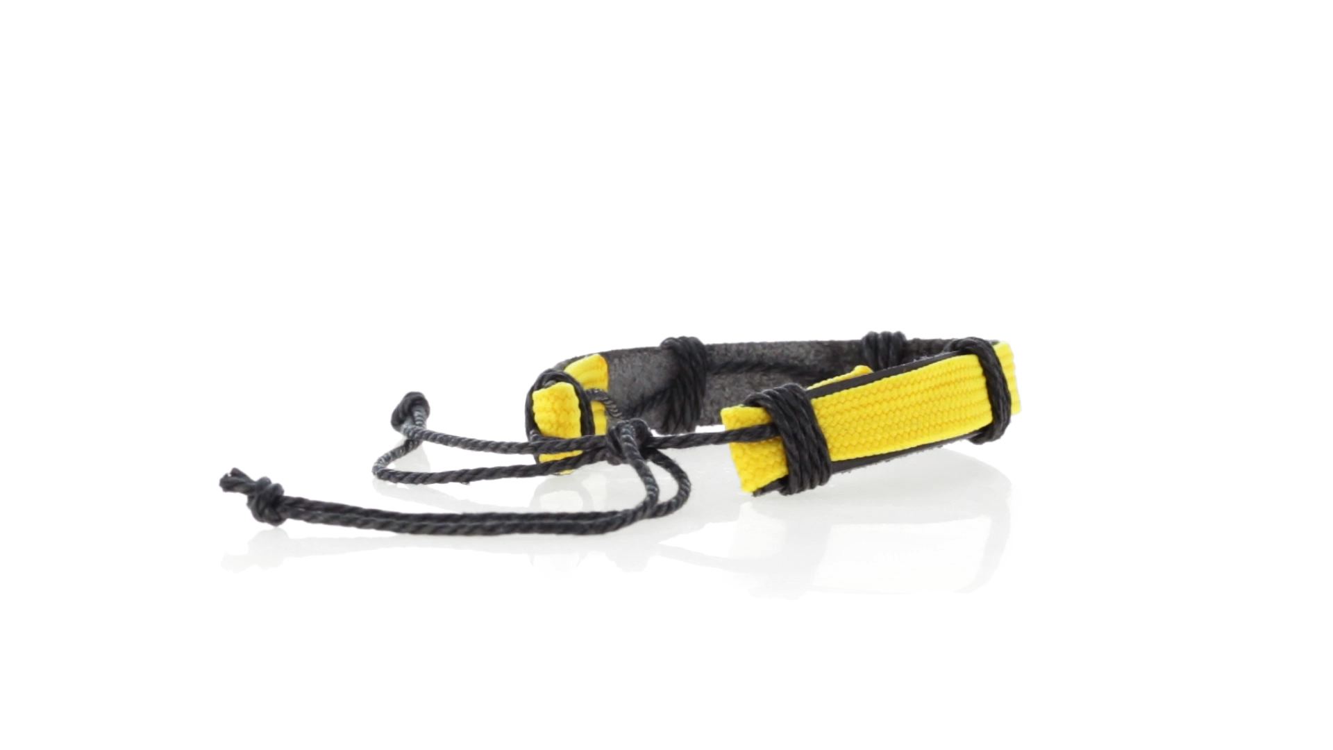 Verstellbares Lederarmband mit Polyesterfäden in lebendigen Farben. Mit verstellbaren, verstärkten Verschlussbändern.