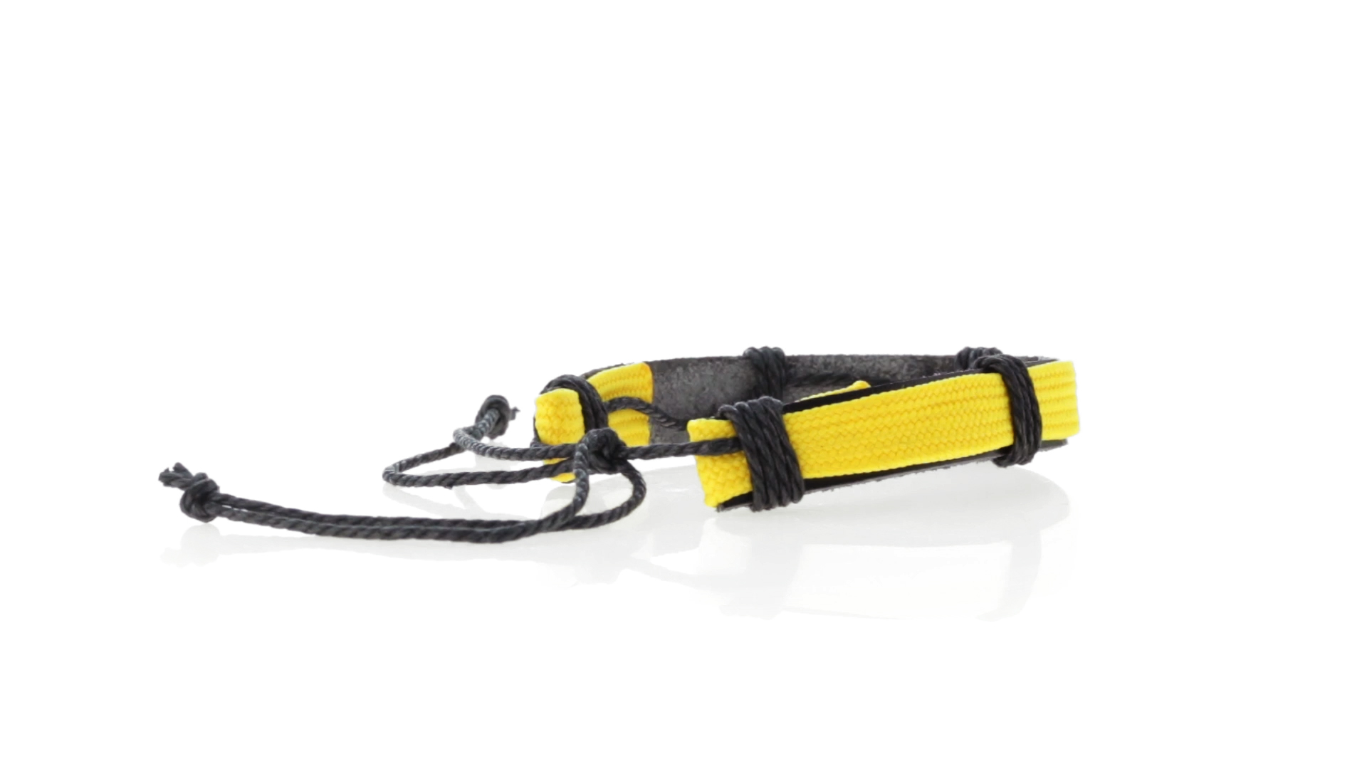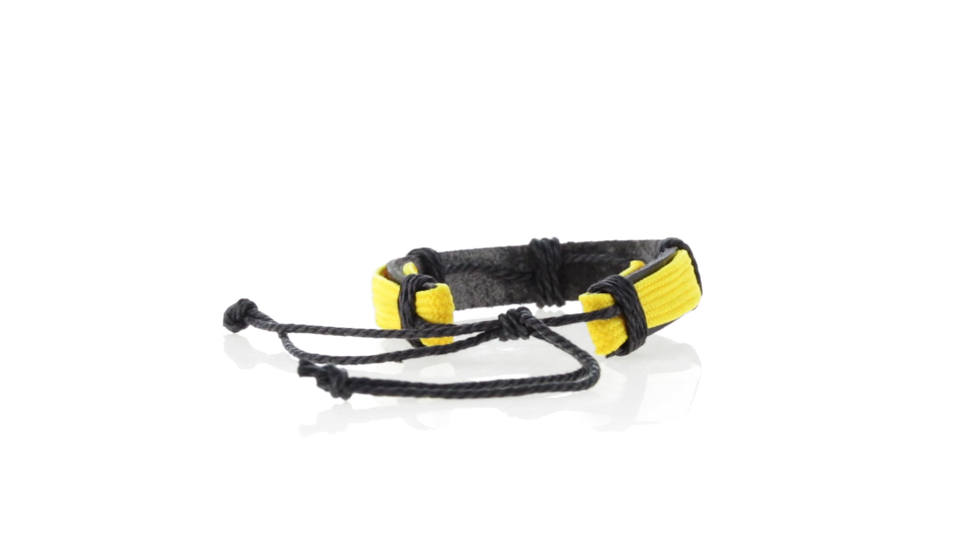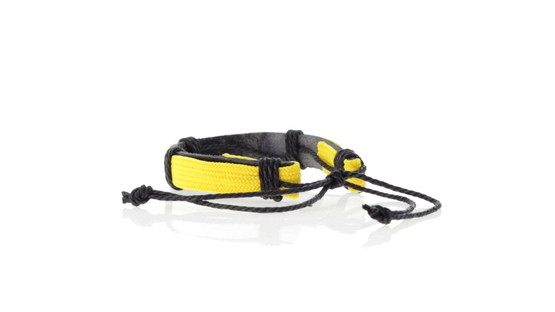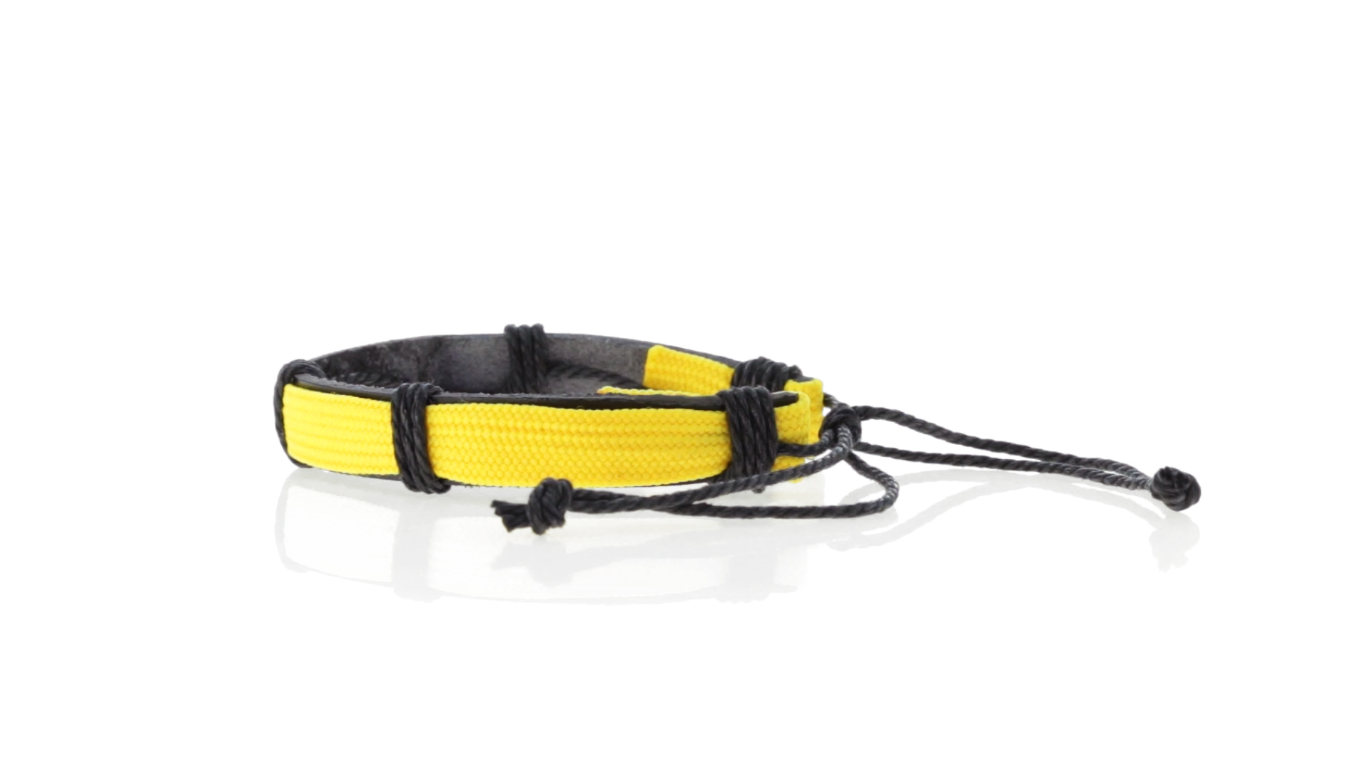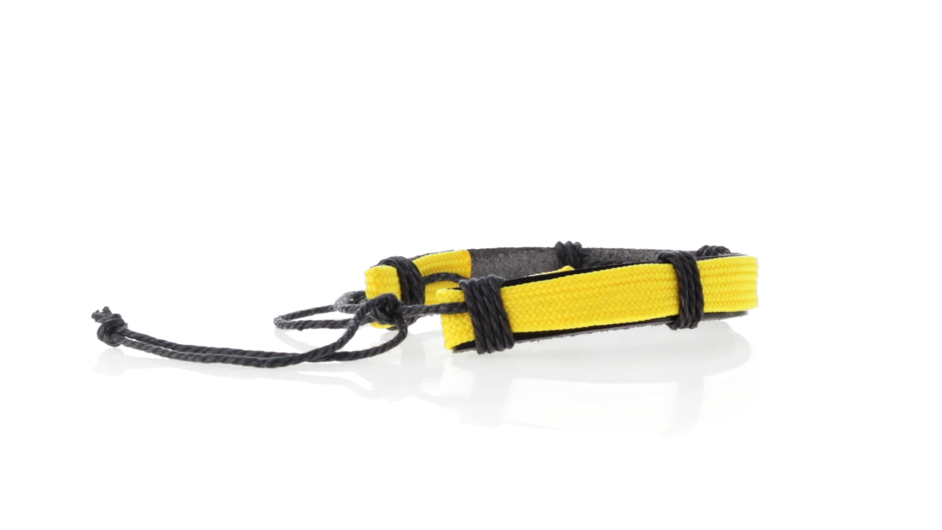 Verstellbares Lederarmband mit Polyesterfäden in lebendigen Farben. Mit verstellbaren, verstärkten Verschlussbändern.