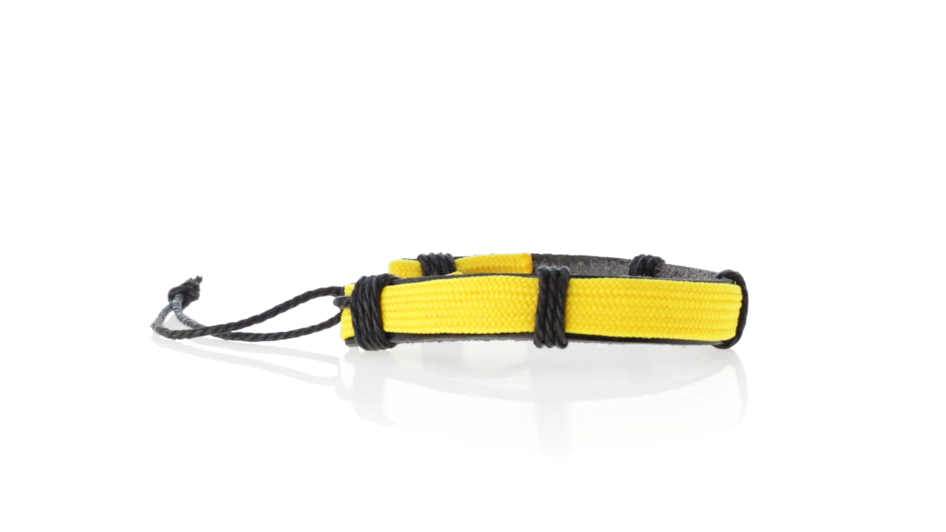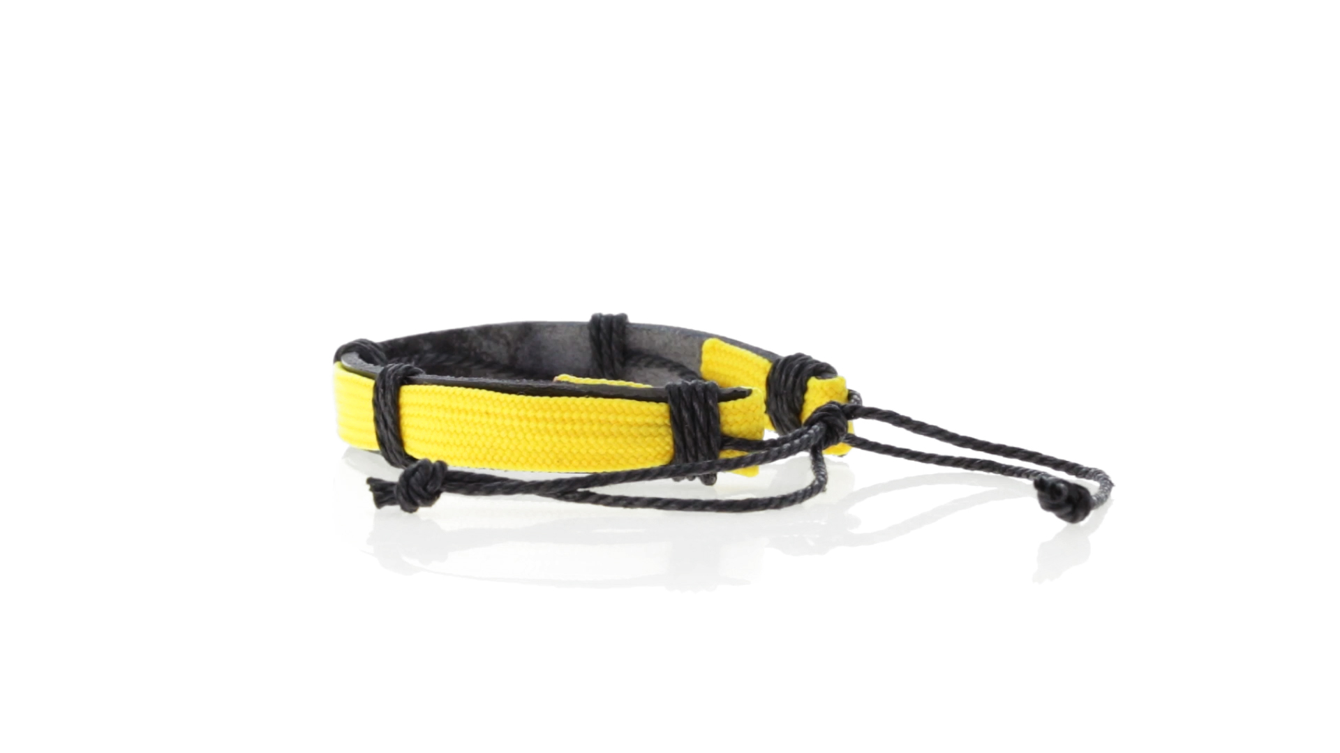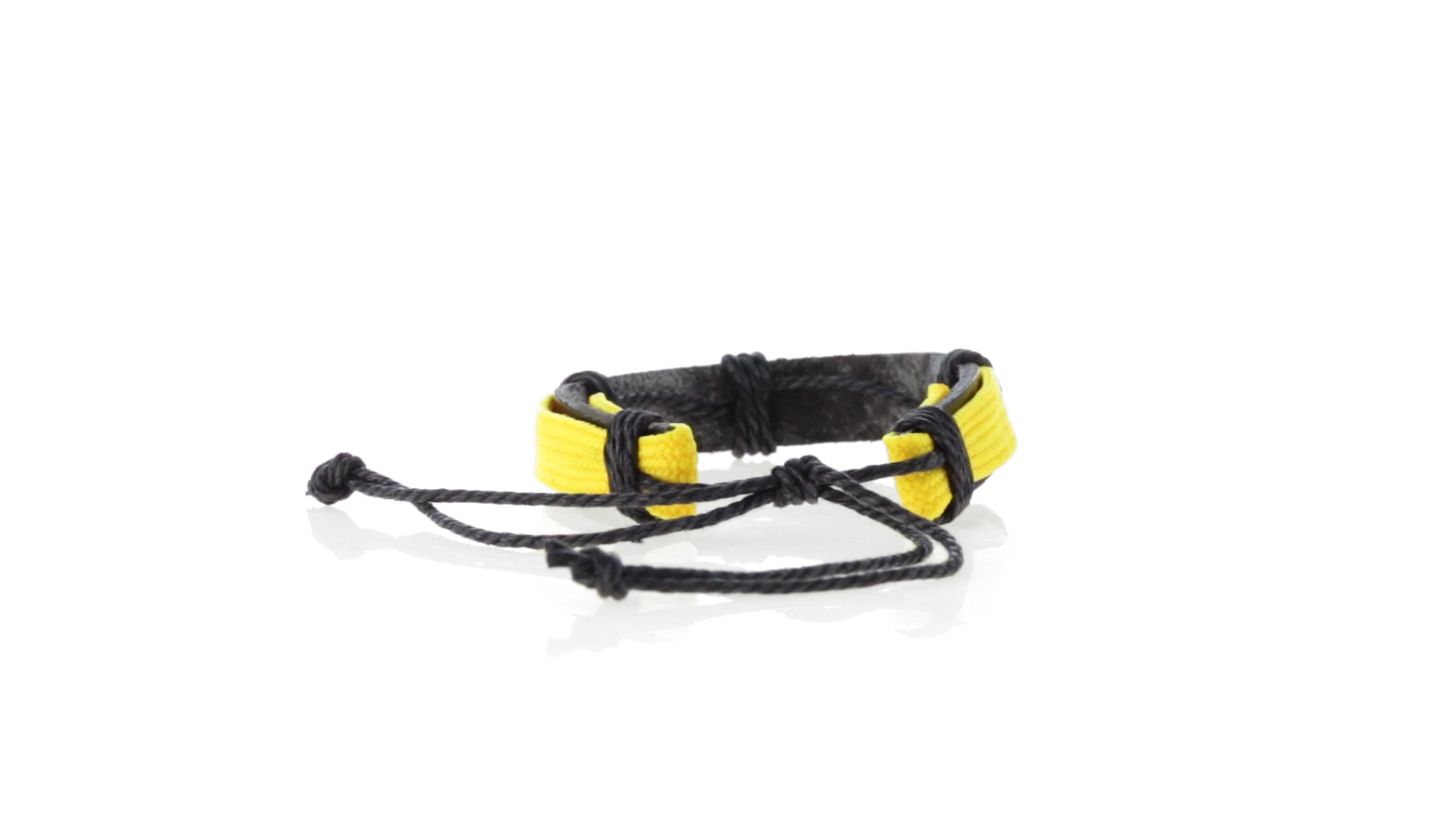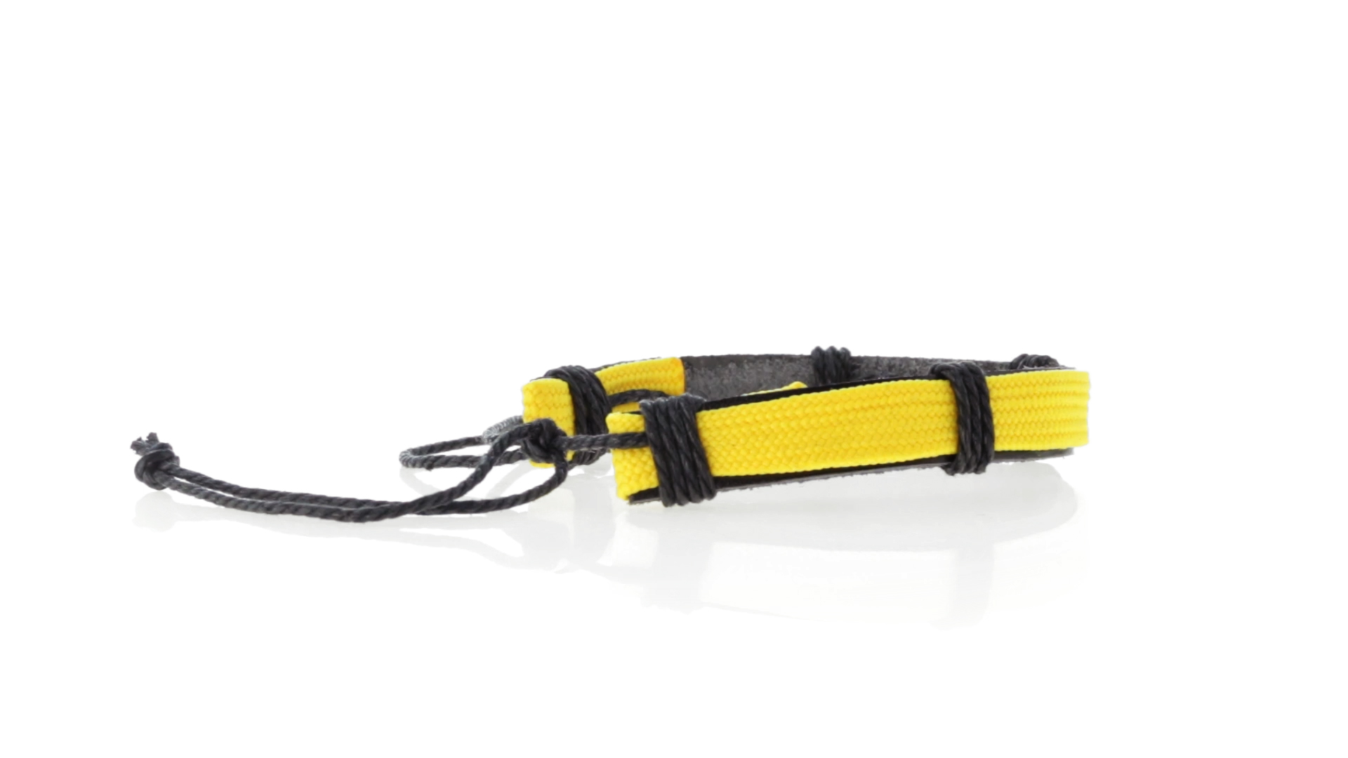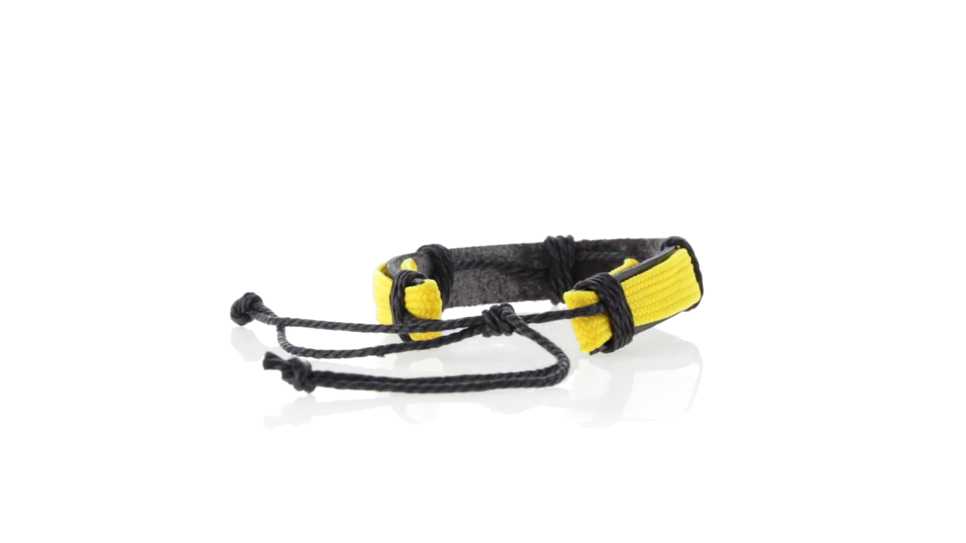 Verstellbares Lederarmband mit Polyesterfäden in lebendigen Farben. Mit verstellbaren, verstärkten Verschlussbändern.