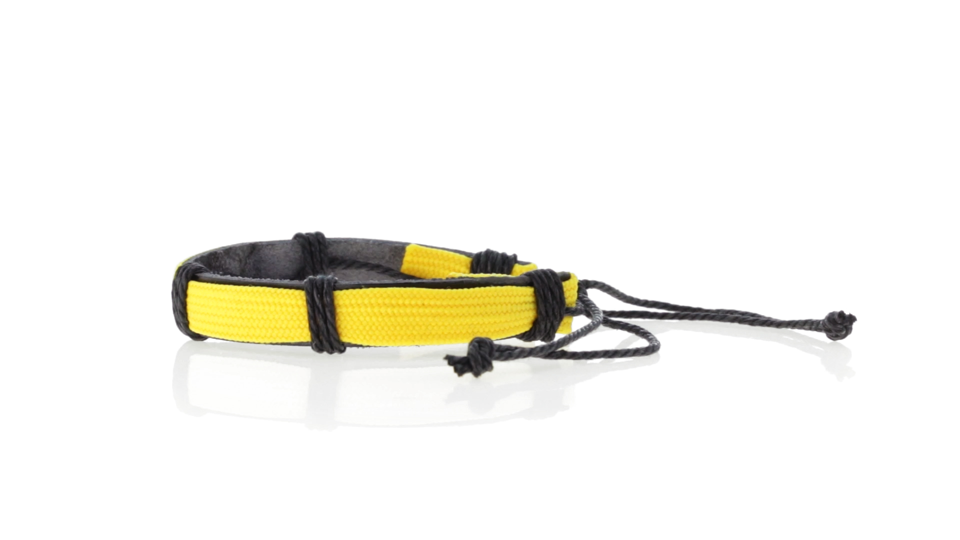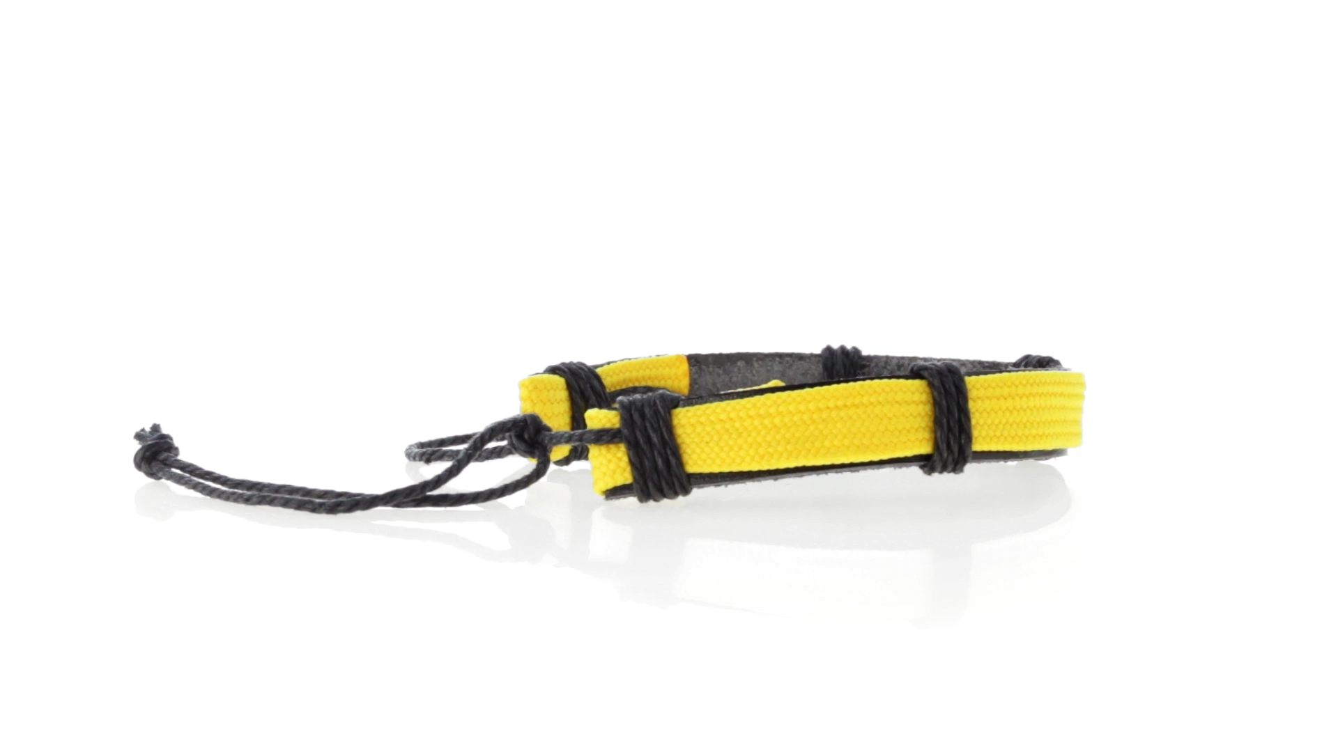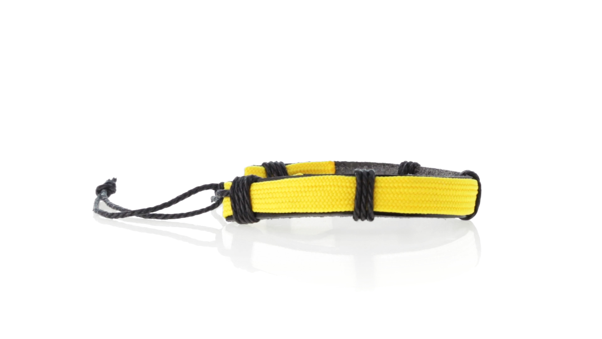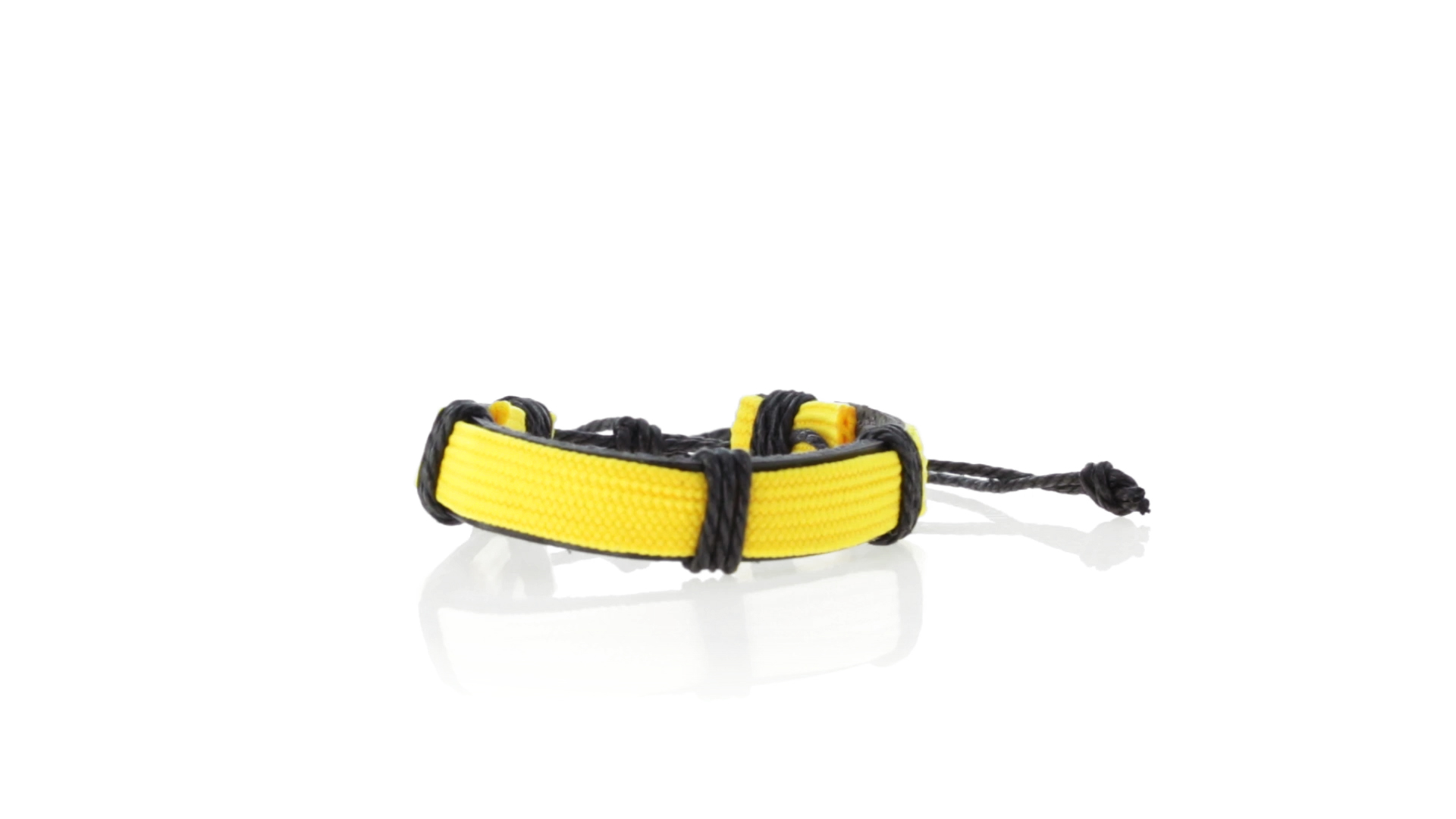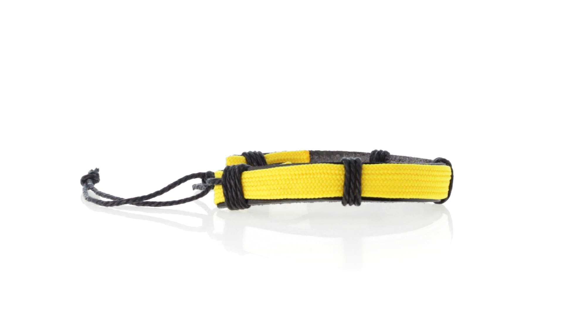 Verstellbares Lederarmband mit Polyesterfäden in lebendigen Farben. Mit verstellbaren, verstärkten Verschlussbändern.