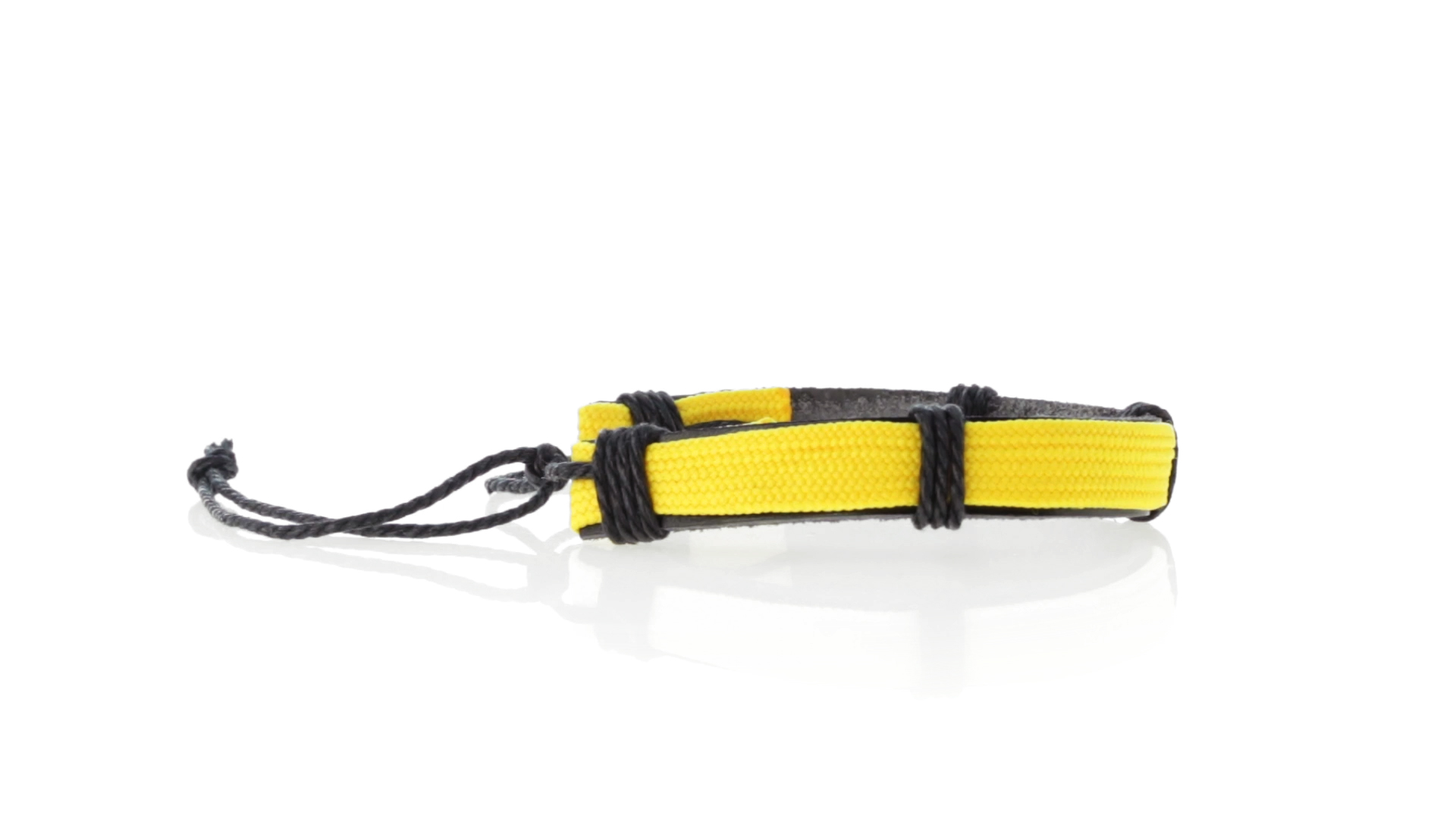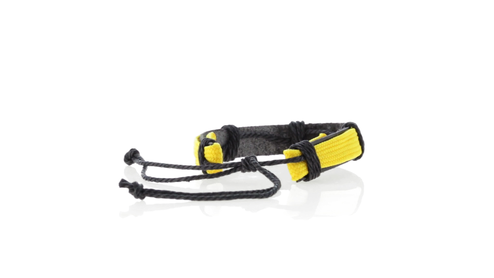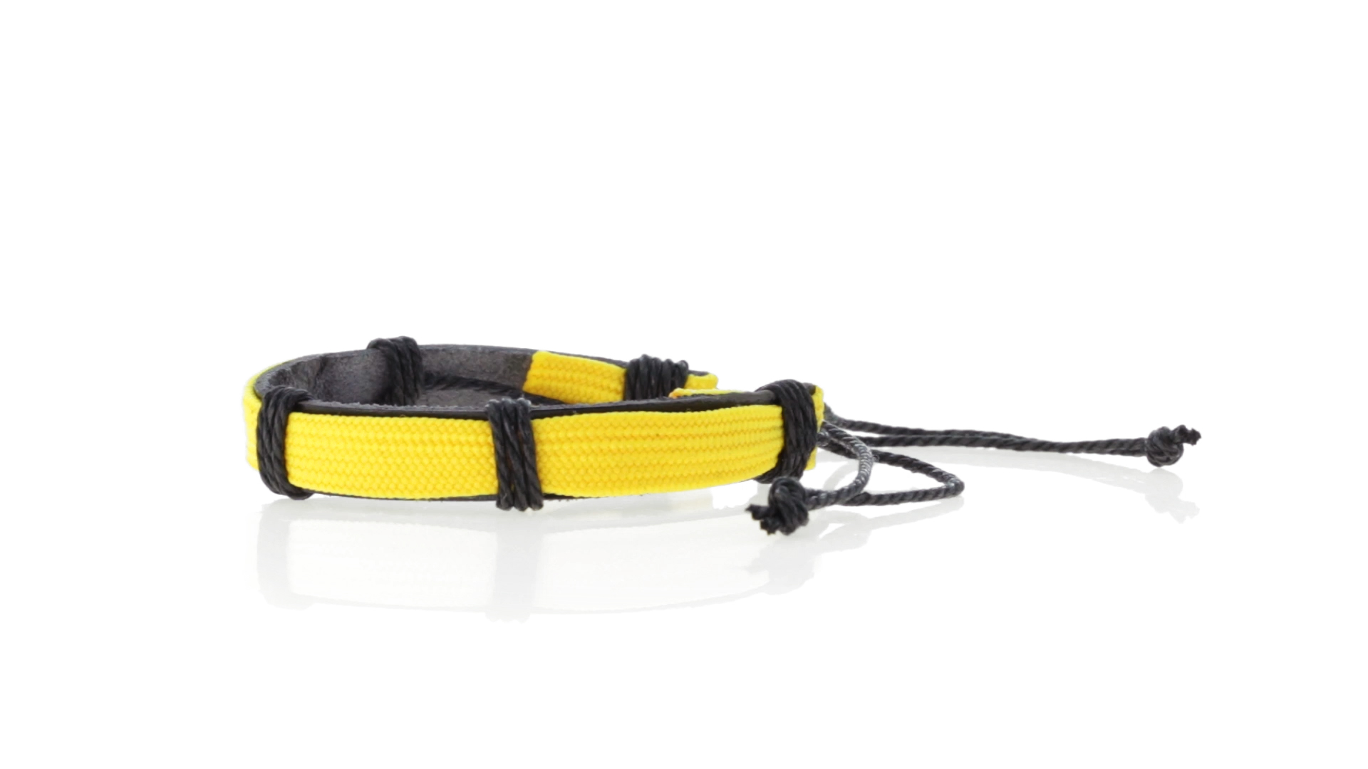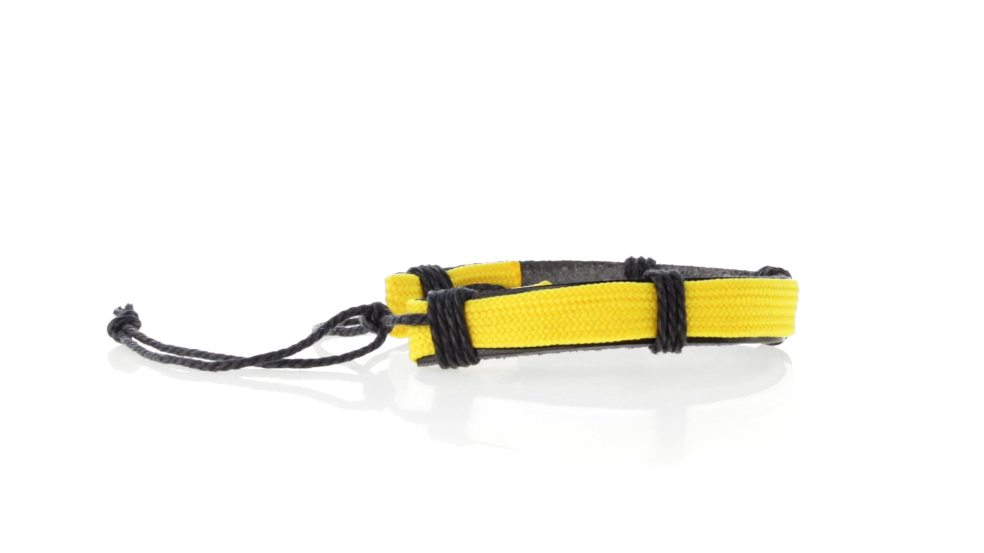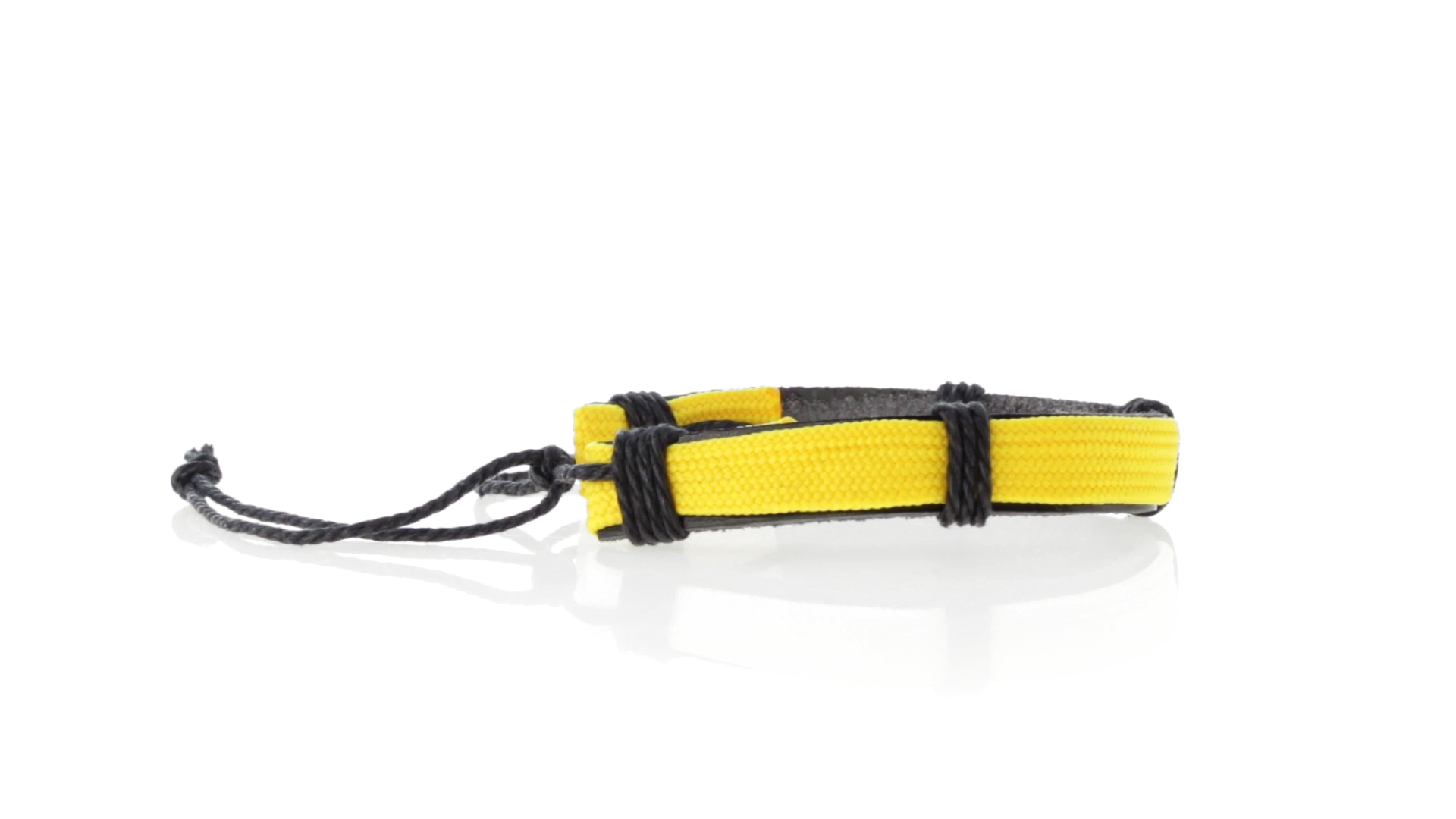 Verstellbares Lederarmband mit Polyesterfäden in lebendigen Farben. Mit verstellbaren, verstärkten Verschlussbändern.