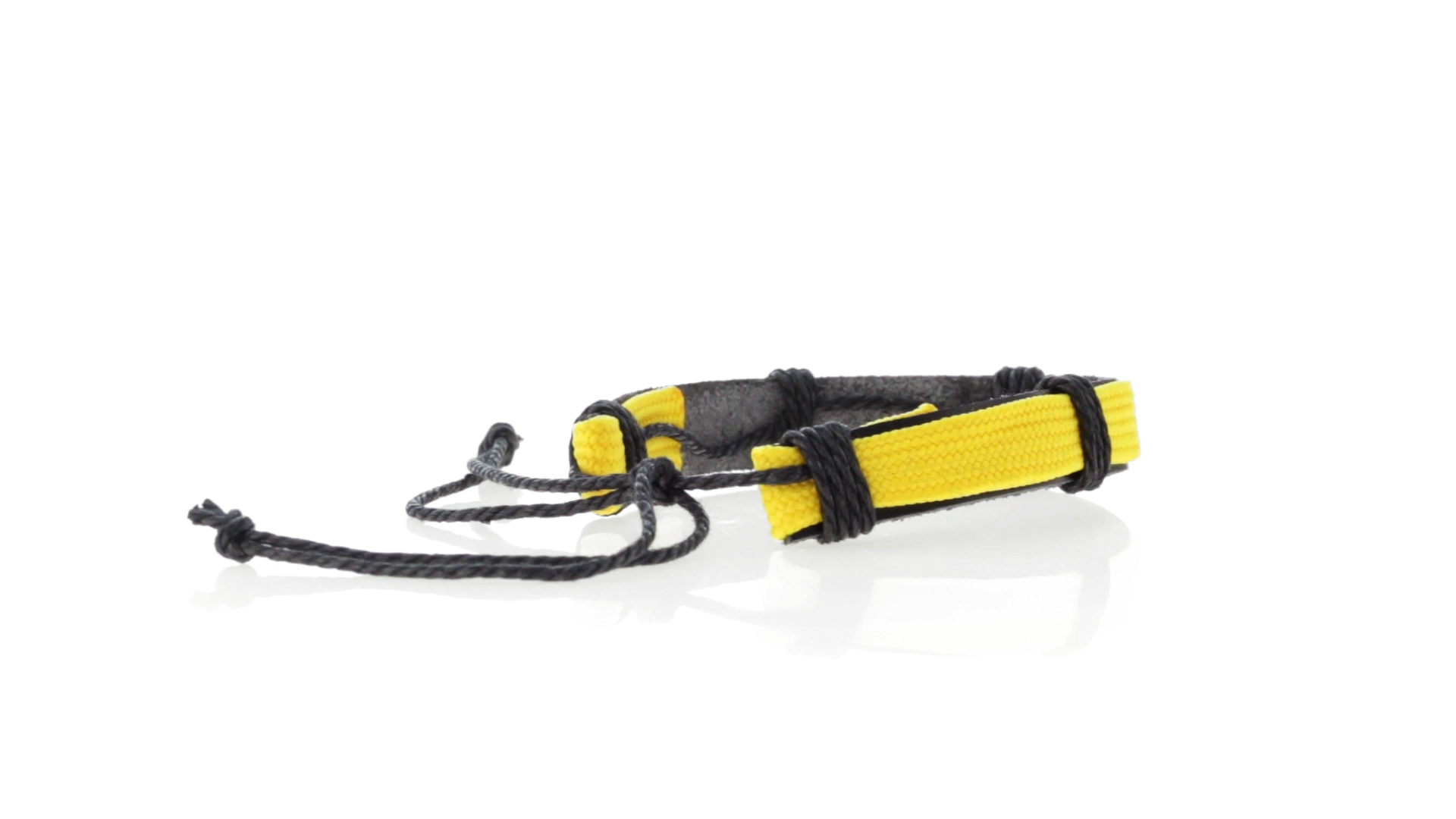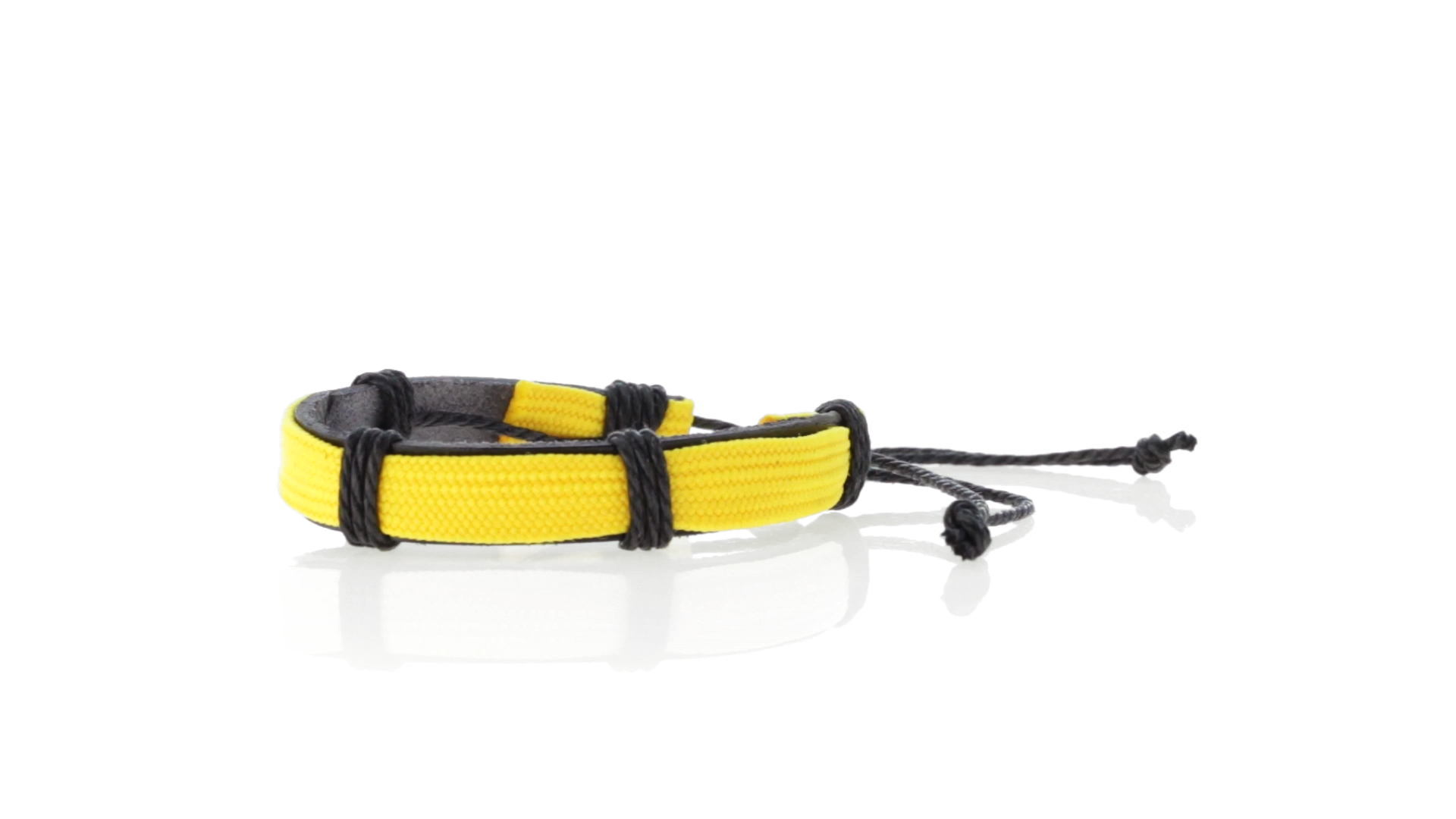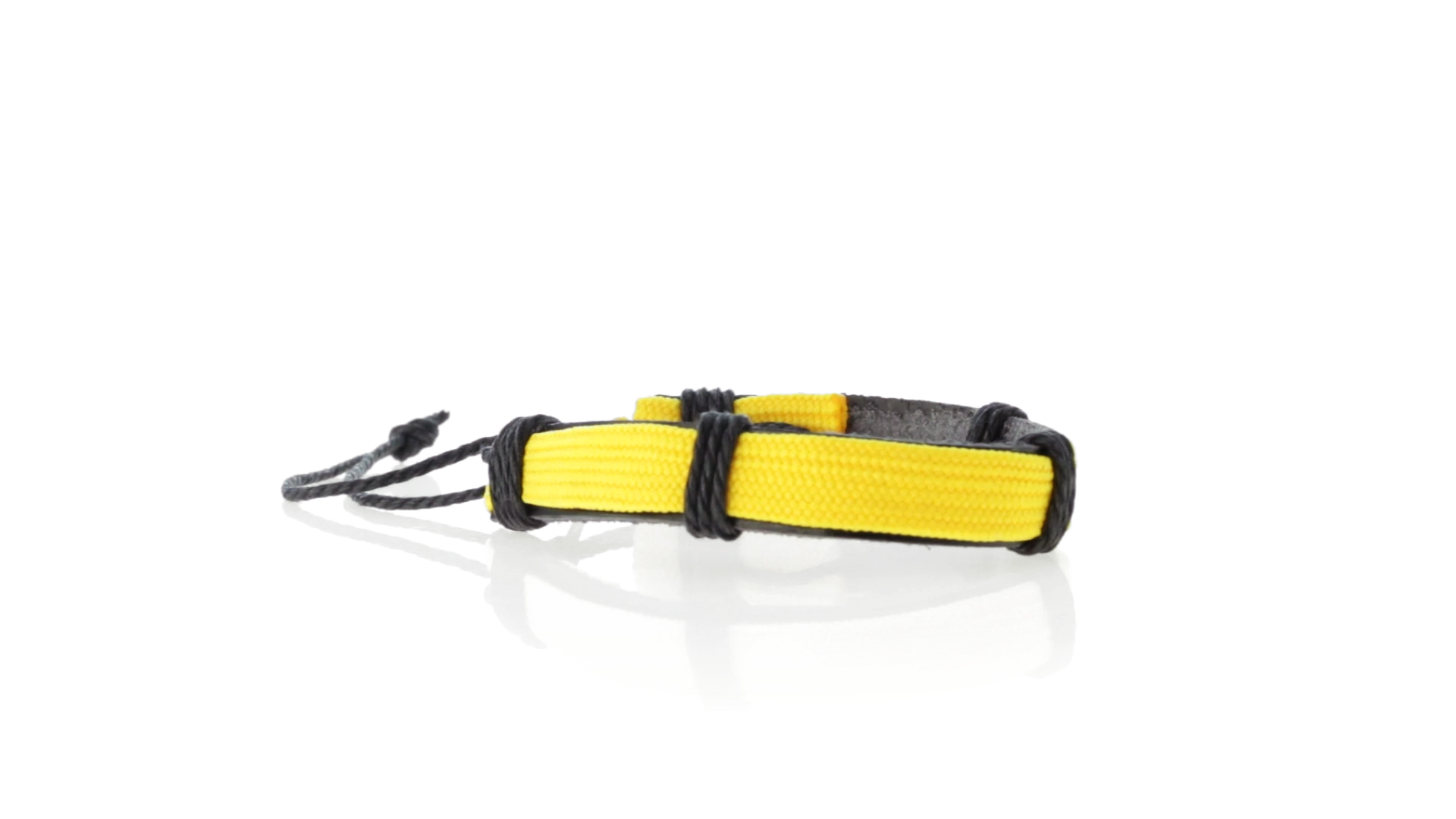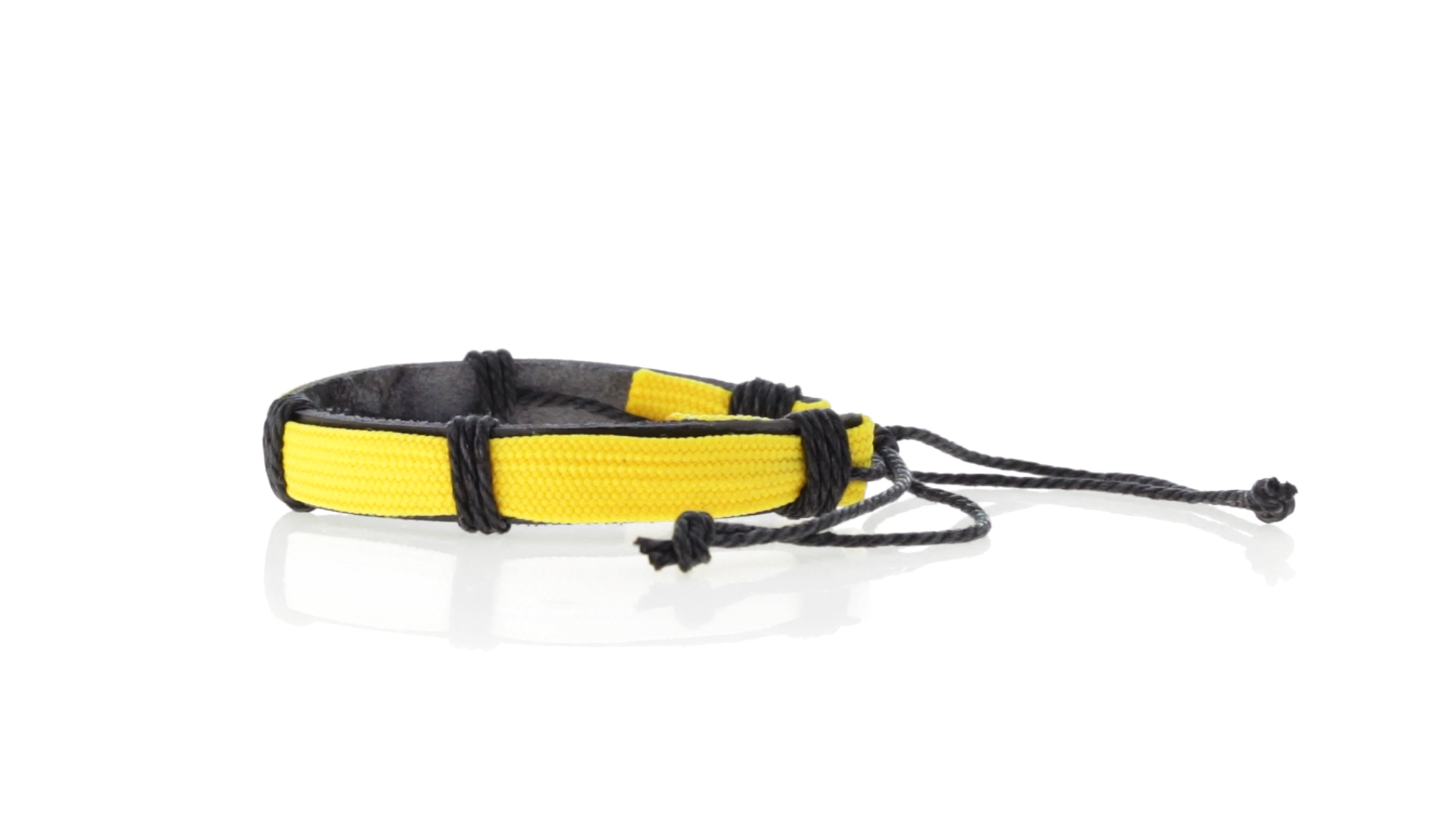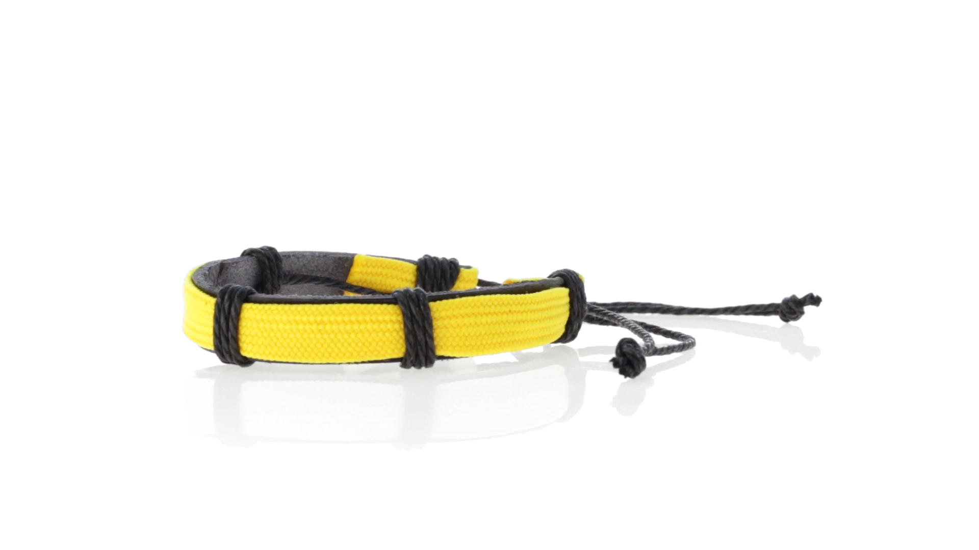 Verstellbares Lederarmband mit Polyesterfäden in lebendigen Farben. Mit verstellbaren, verstärkten Verschlussbändern.