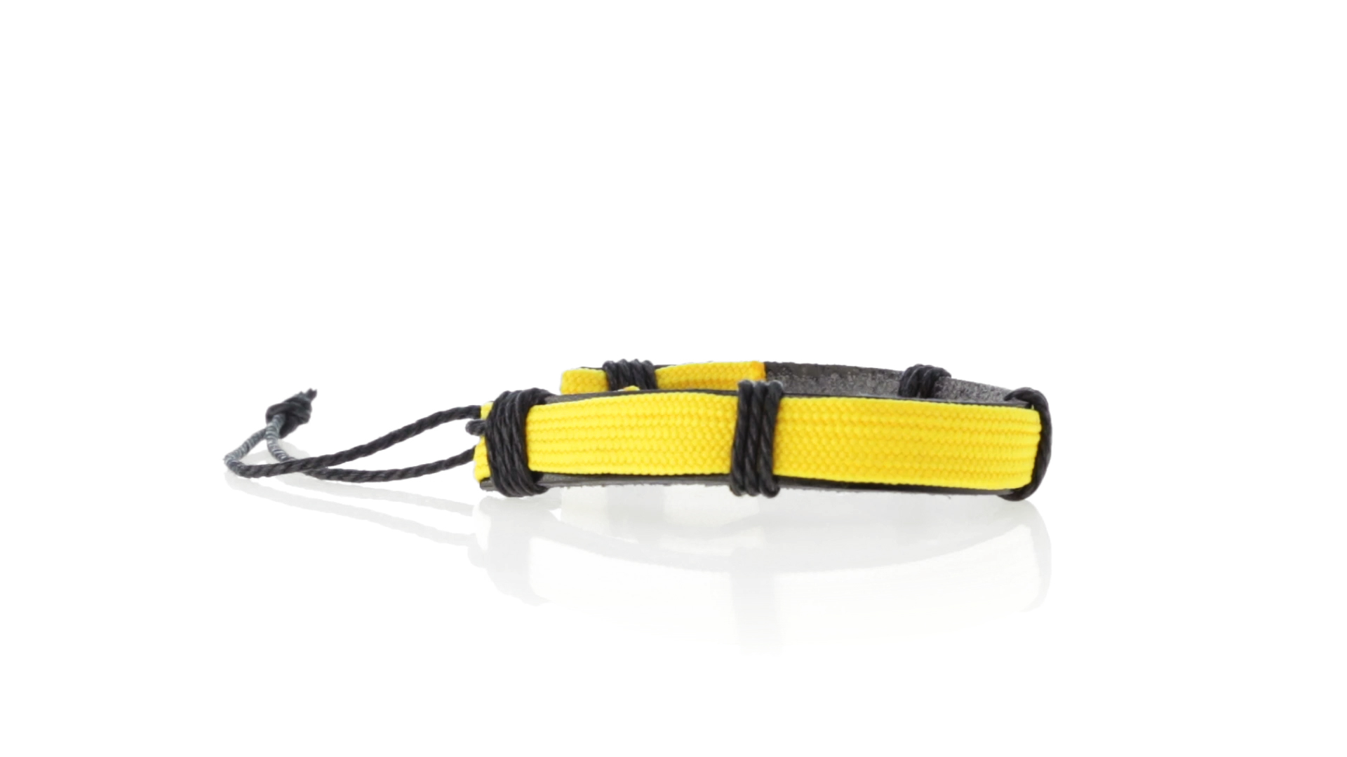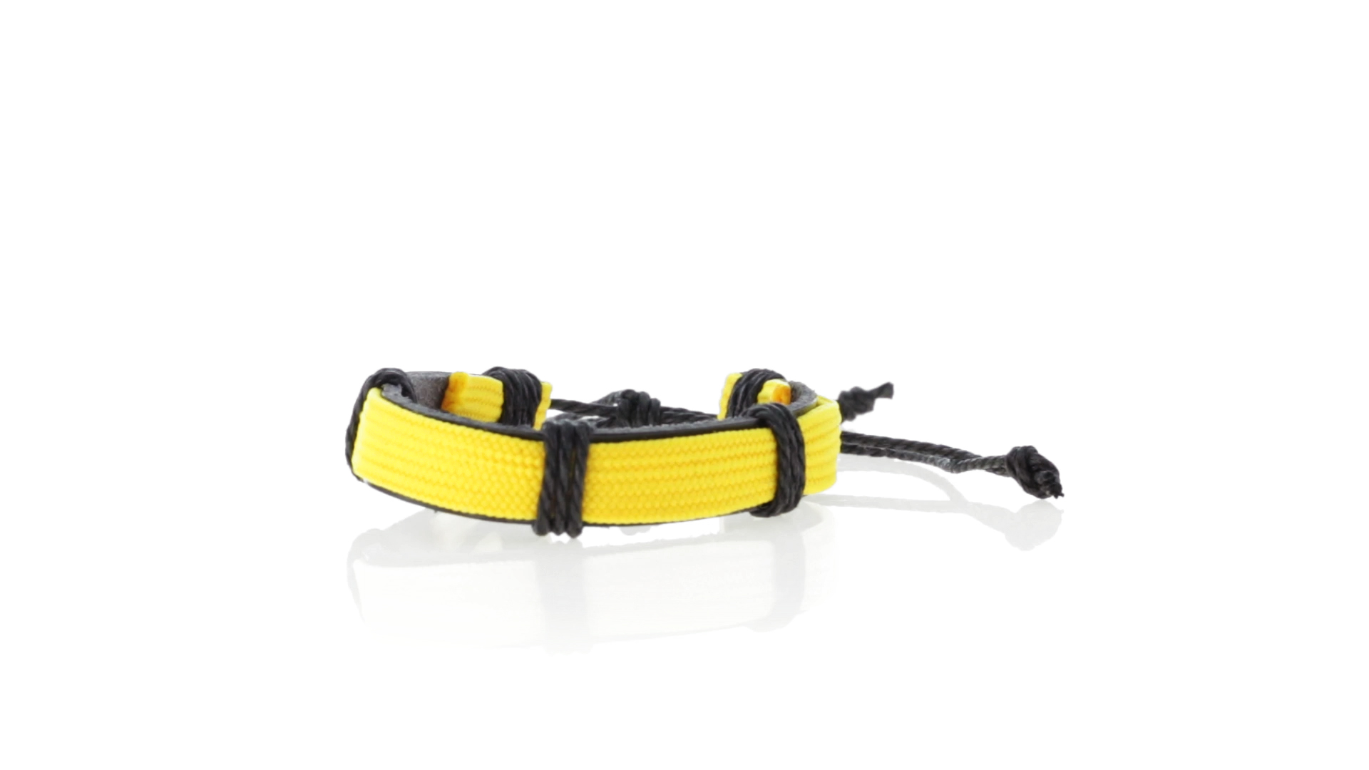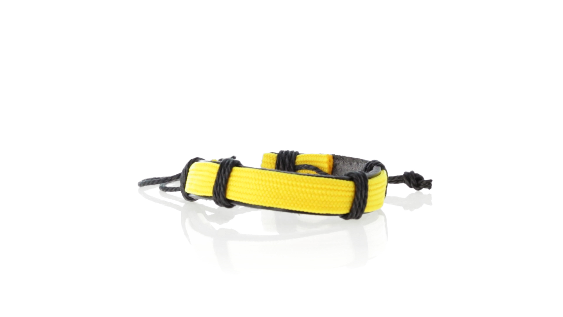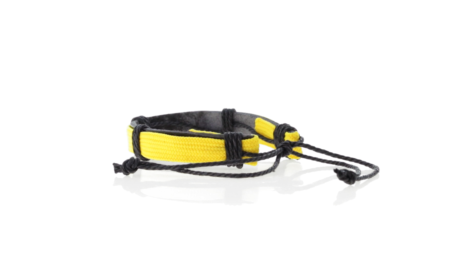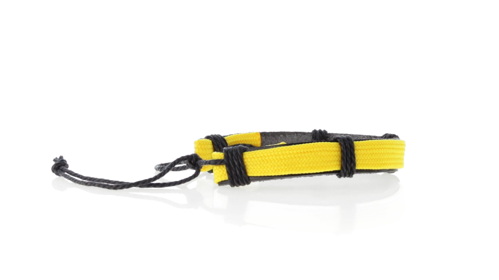 Verstellbares Lederarmband mit Polyesterfäden in lebendigen Farben. Mit verstellbaren, verstärkten Verschlussbändern.