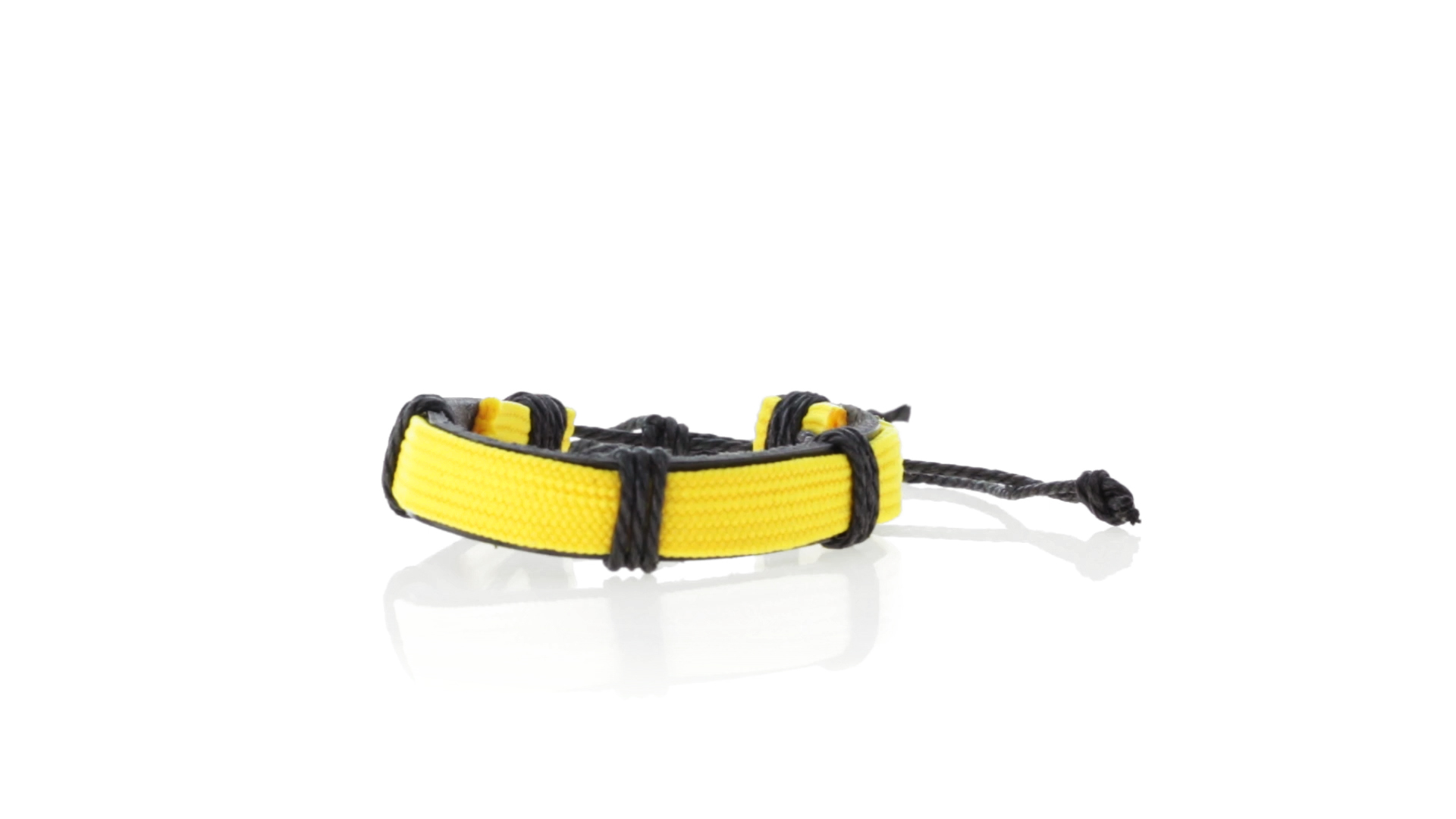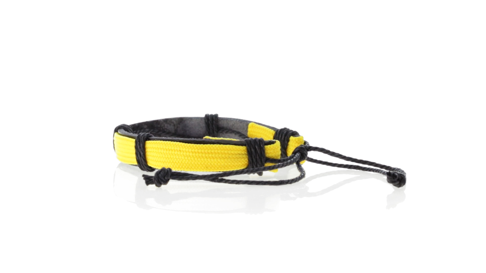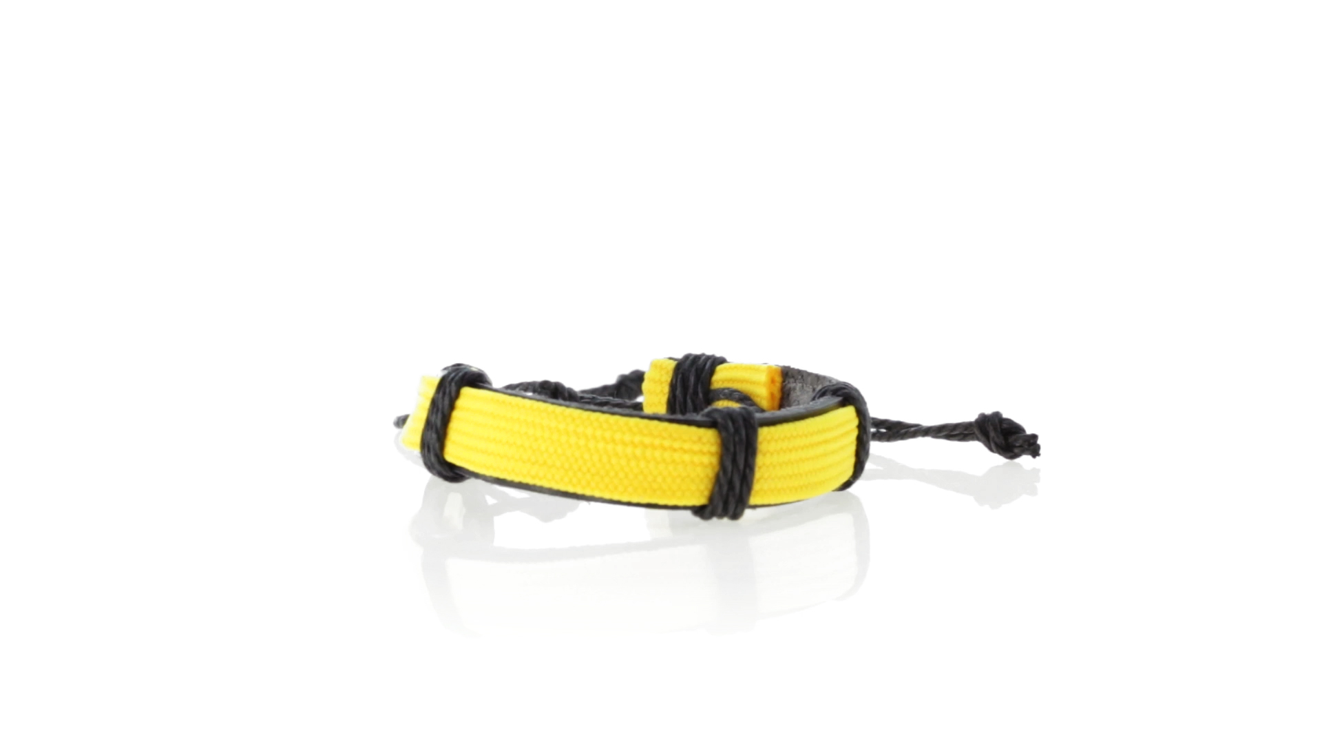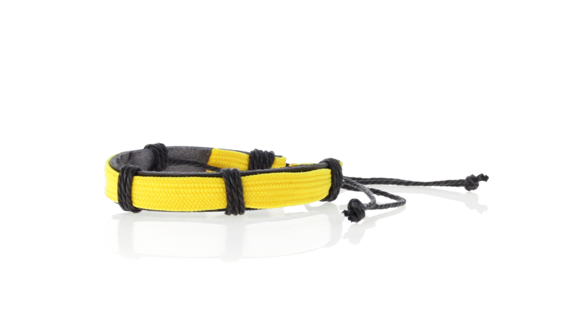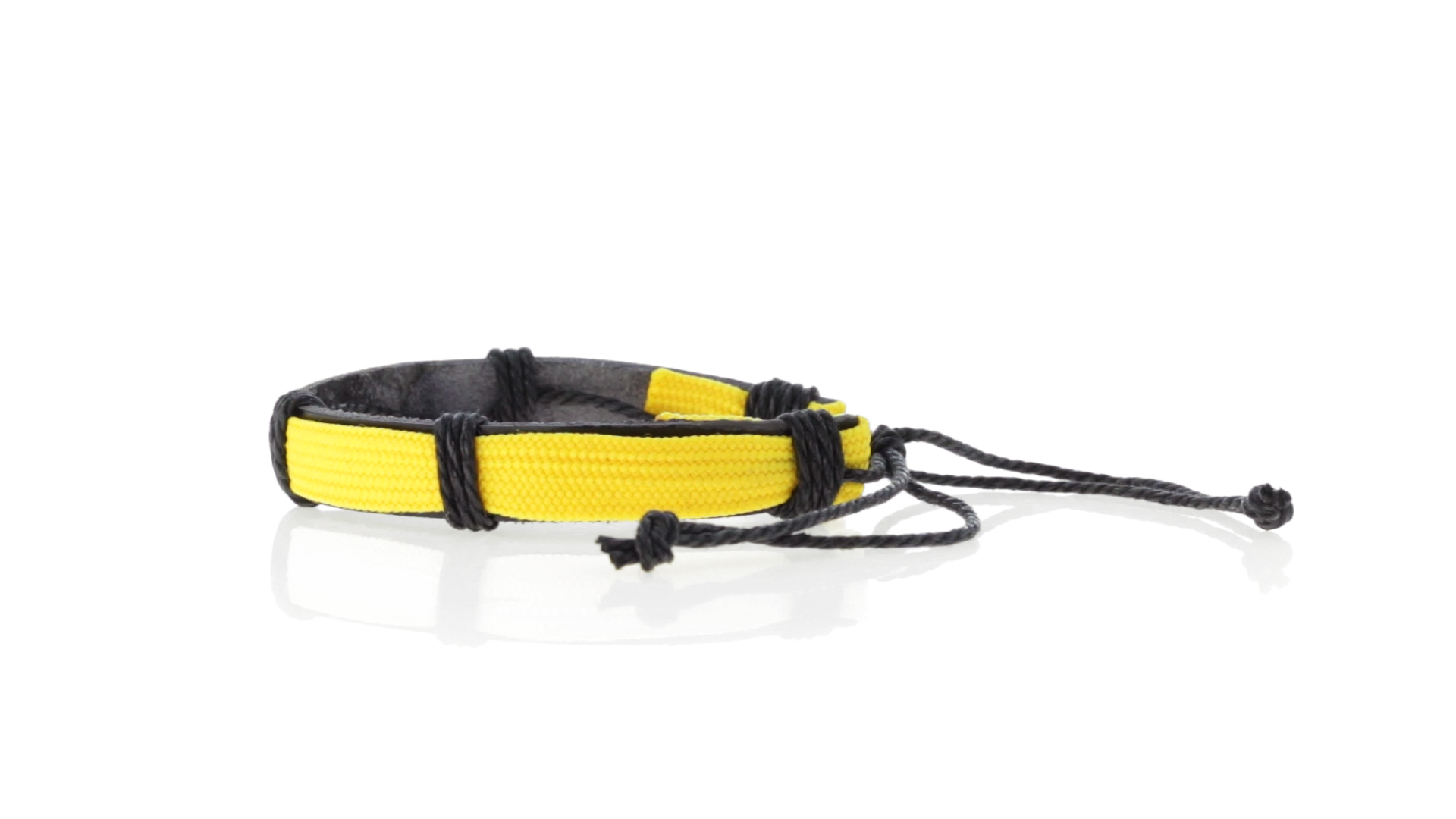 Verstellbares Lederarmband mit Polyesterfäden in lebendigen Farben. Mit verstellbaren, verstärkten Verschlussbändern.