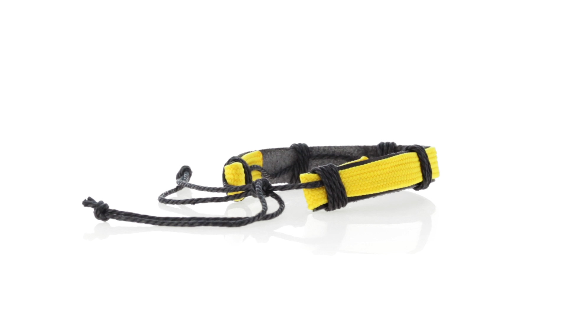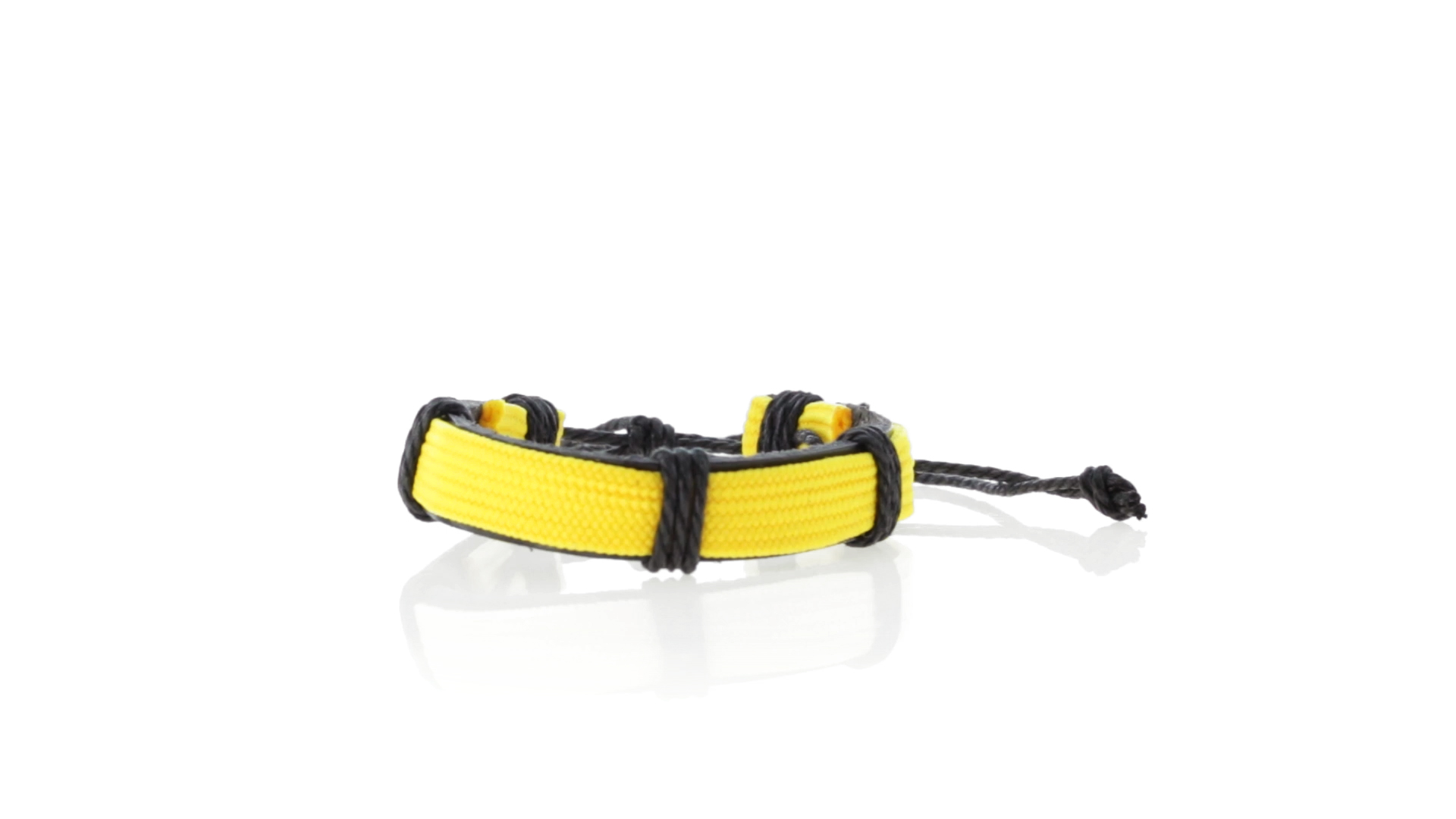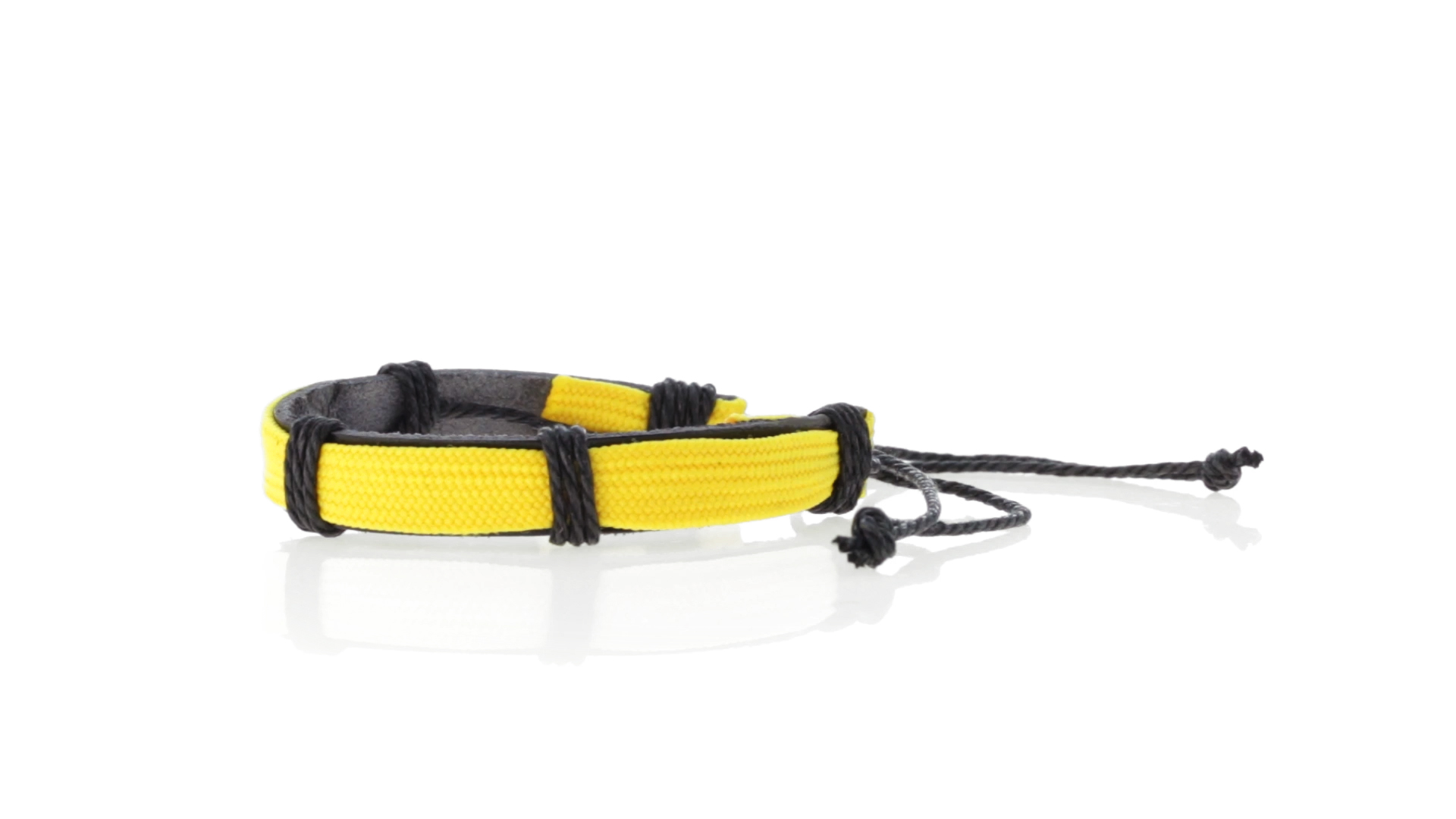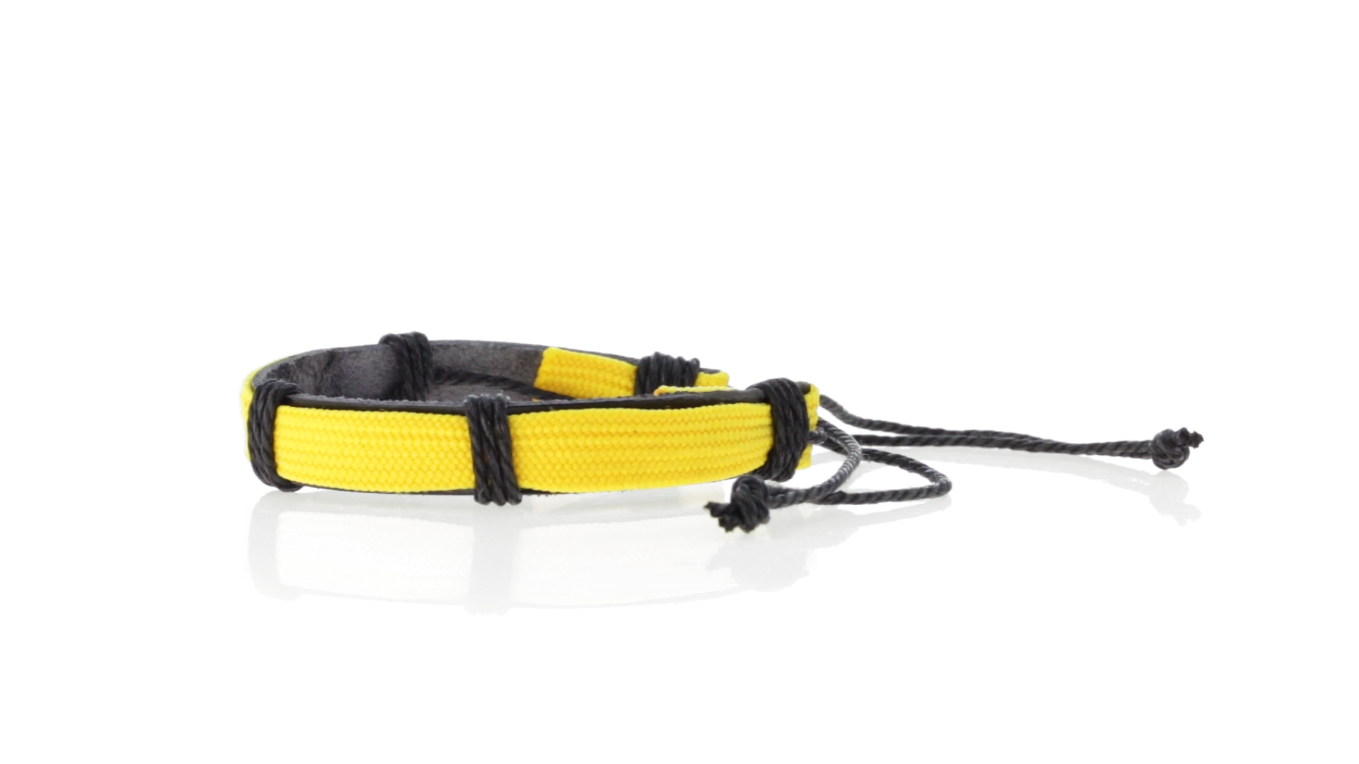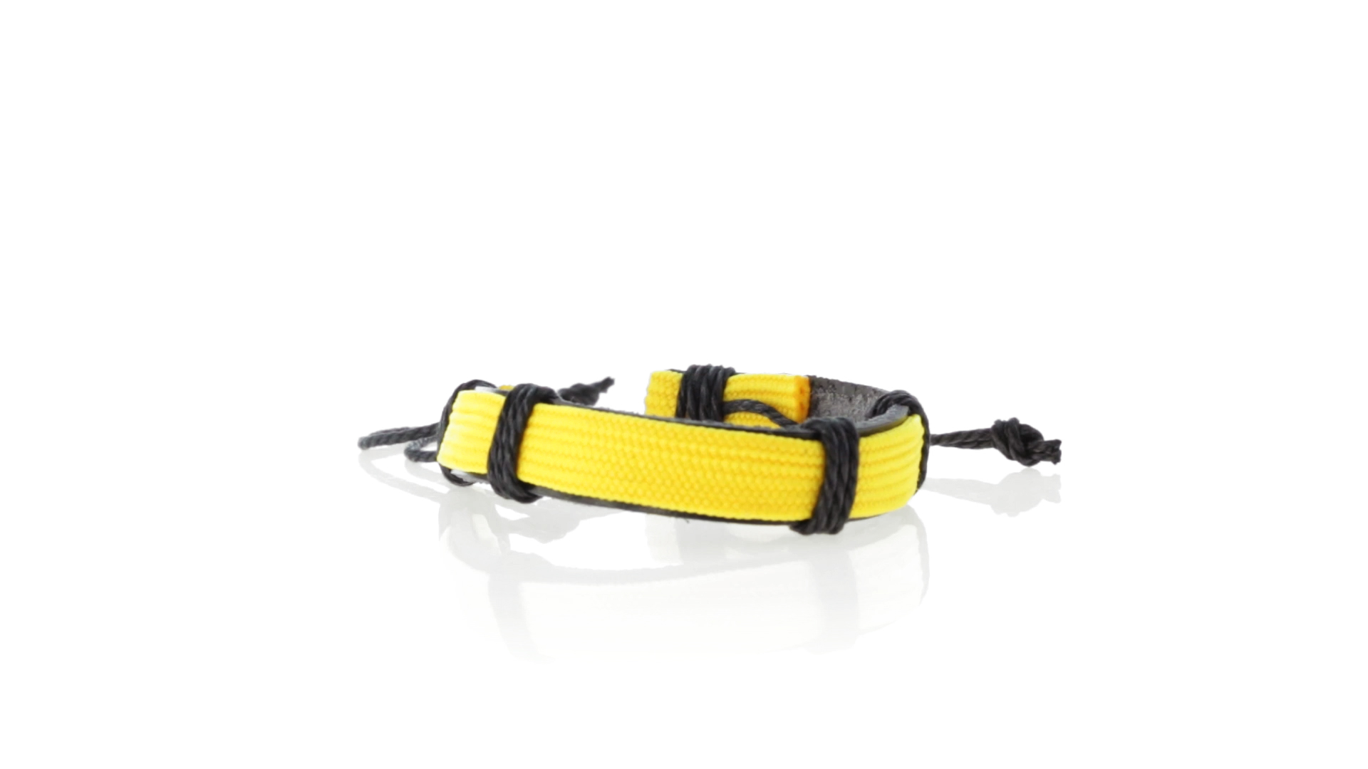 Verstellbares Lederarmband mit Polyesterfäden in lebendigen Farben. Mit verstellbaren, verstärkten Verschlussbändern.