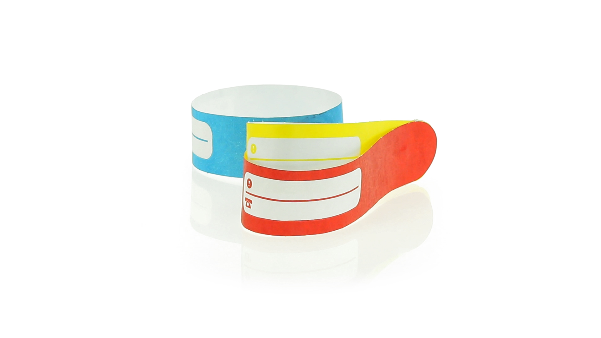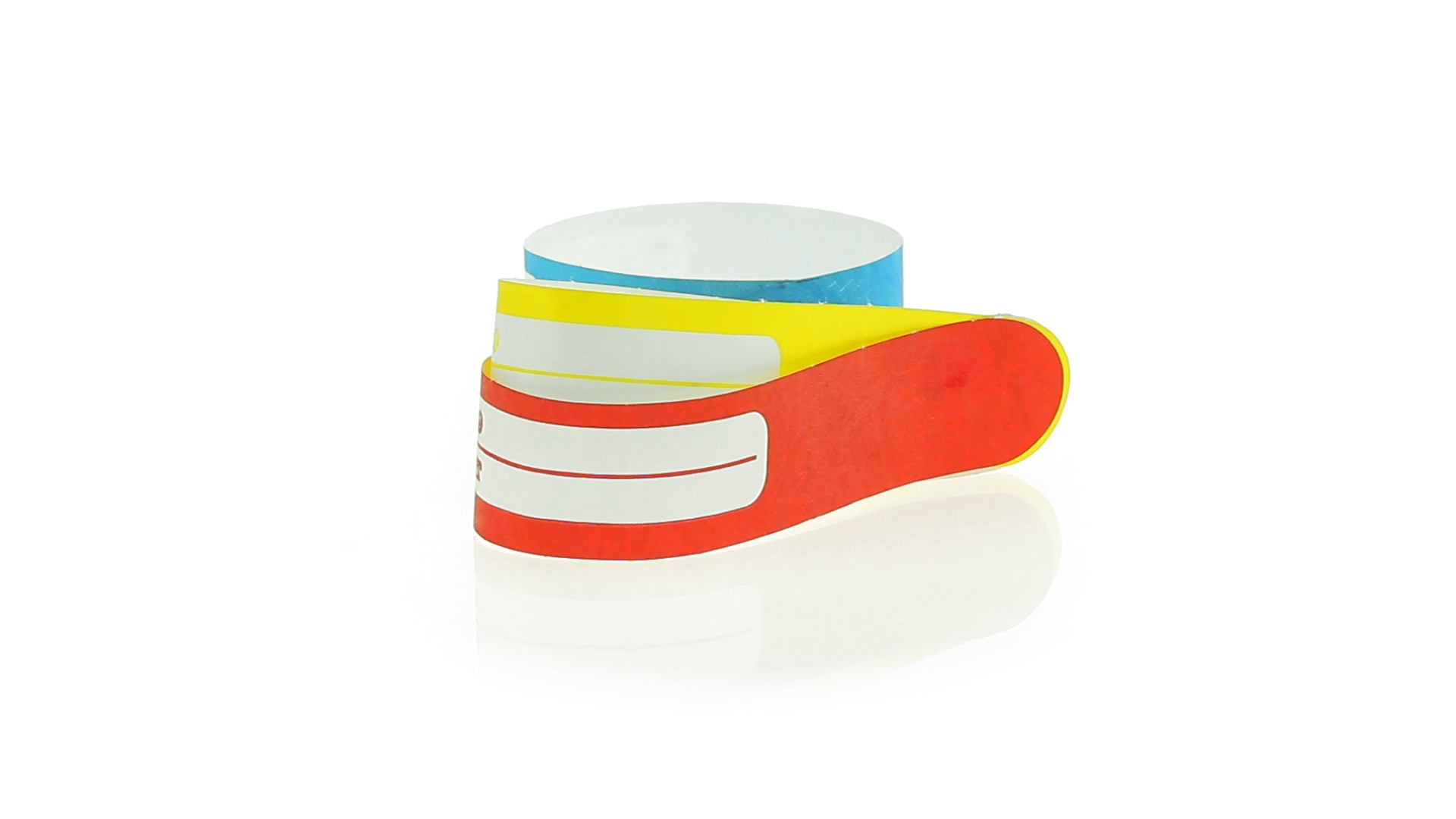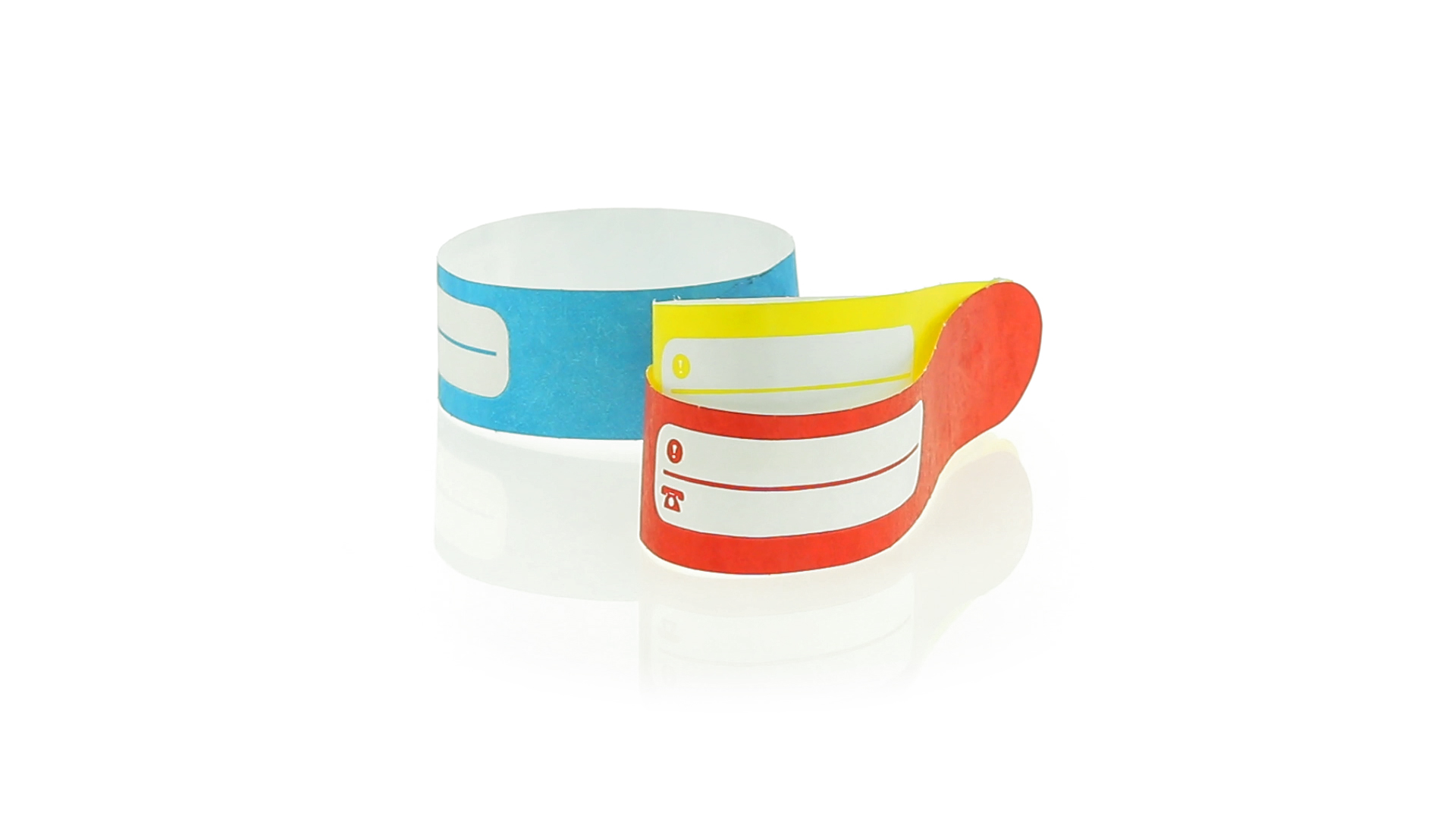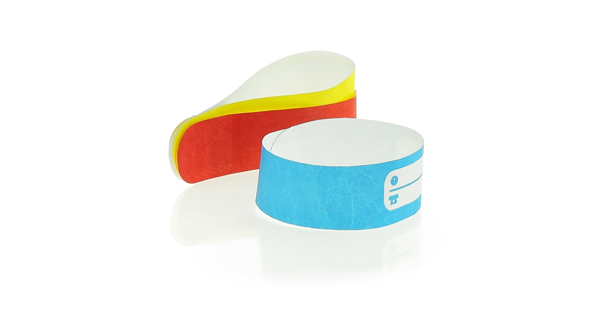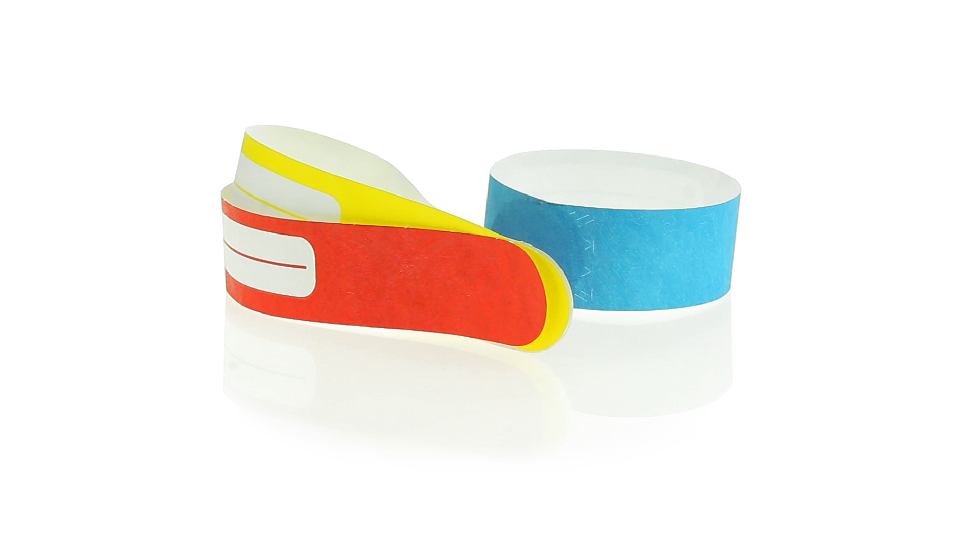 Armband für Kinder aus synthetischer Faser in einer Vielzahl von kräftigen Farben. Mit Identifikationsfeld und Klebeverschluss. Wasserfest und in gestanzten Bögen á 10 Stück für einfaches Bedrucken.
