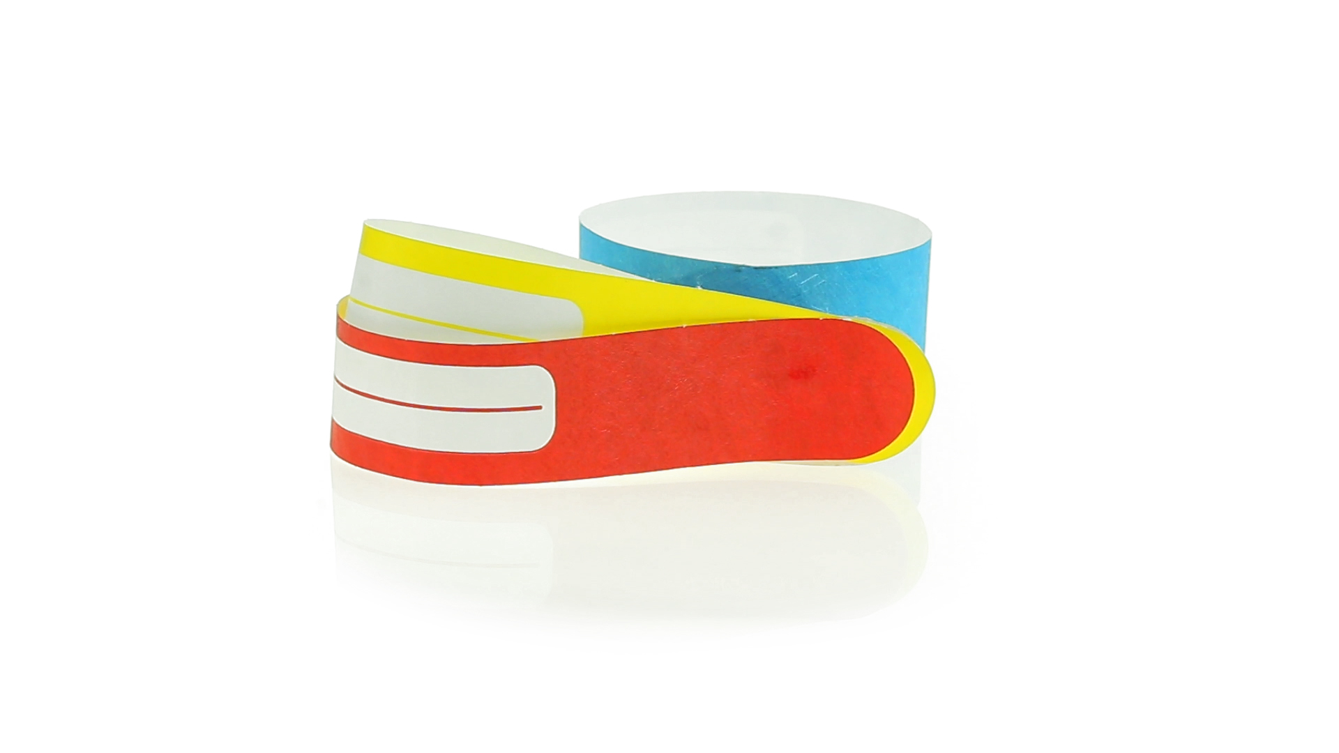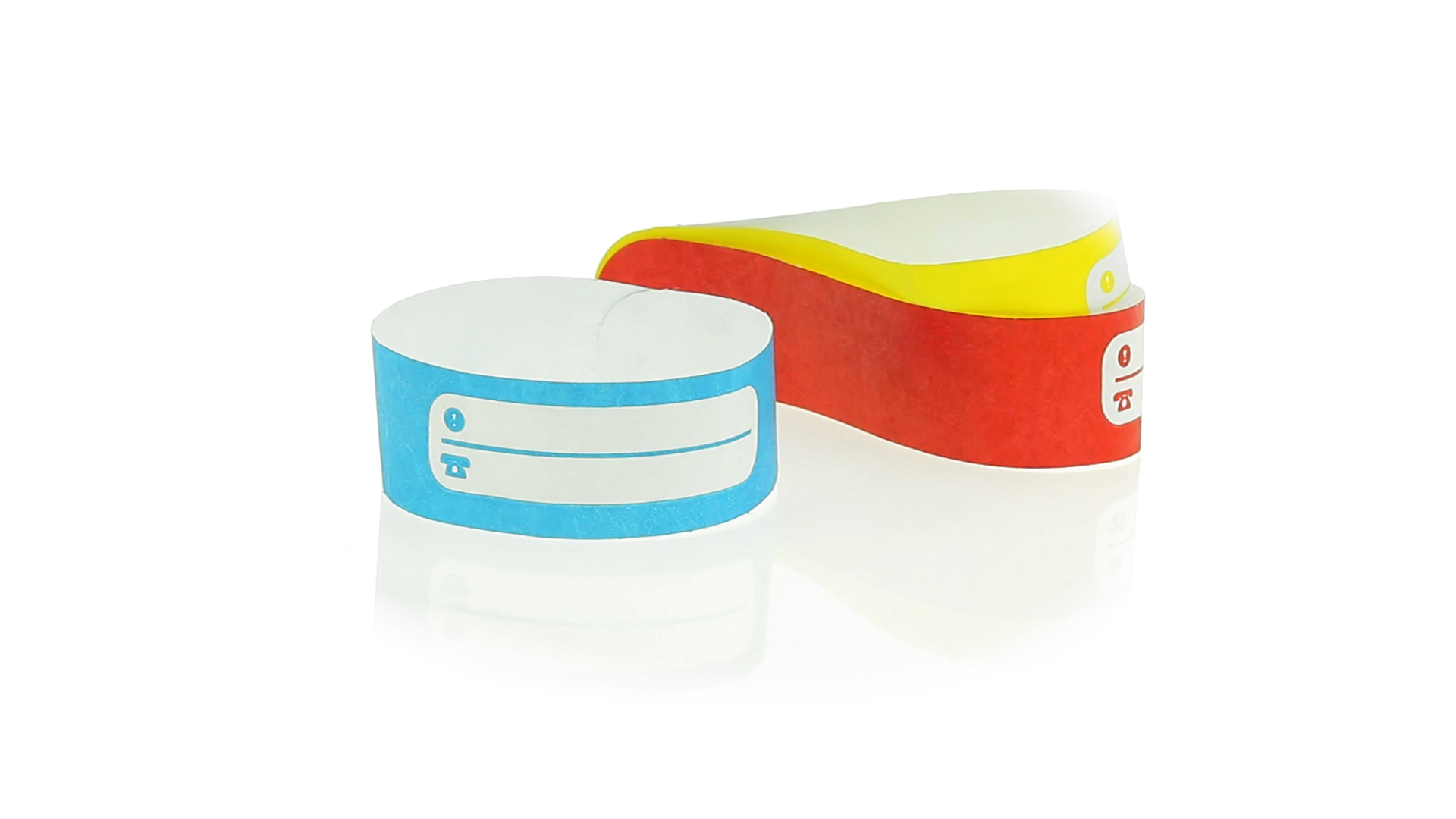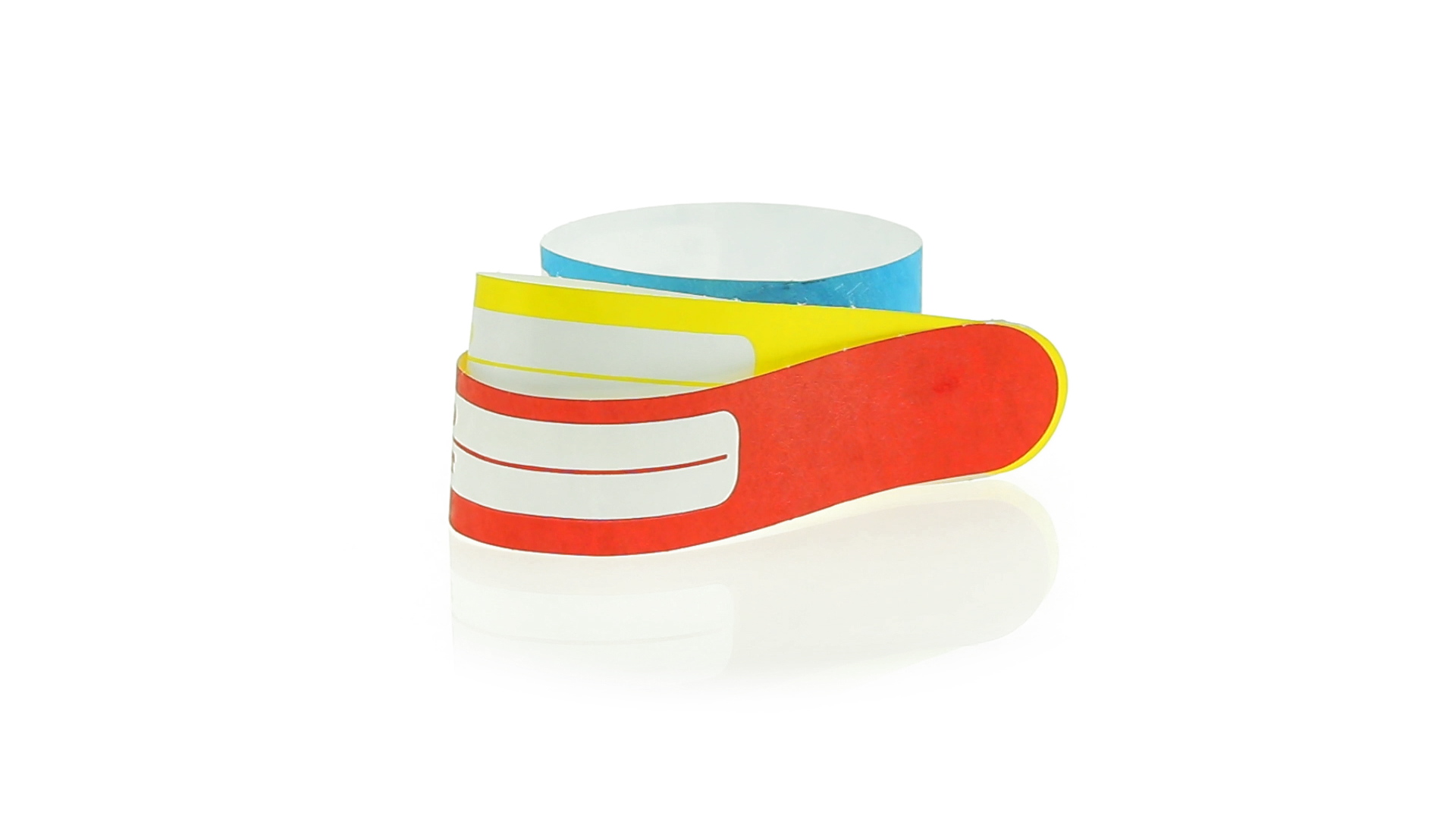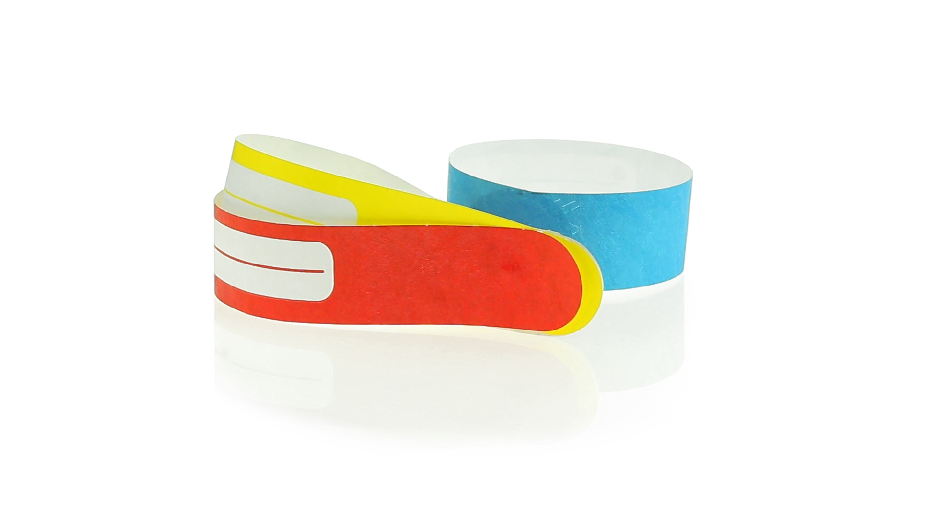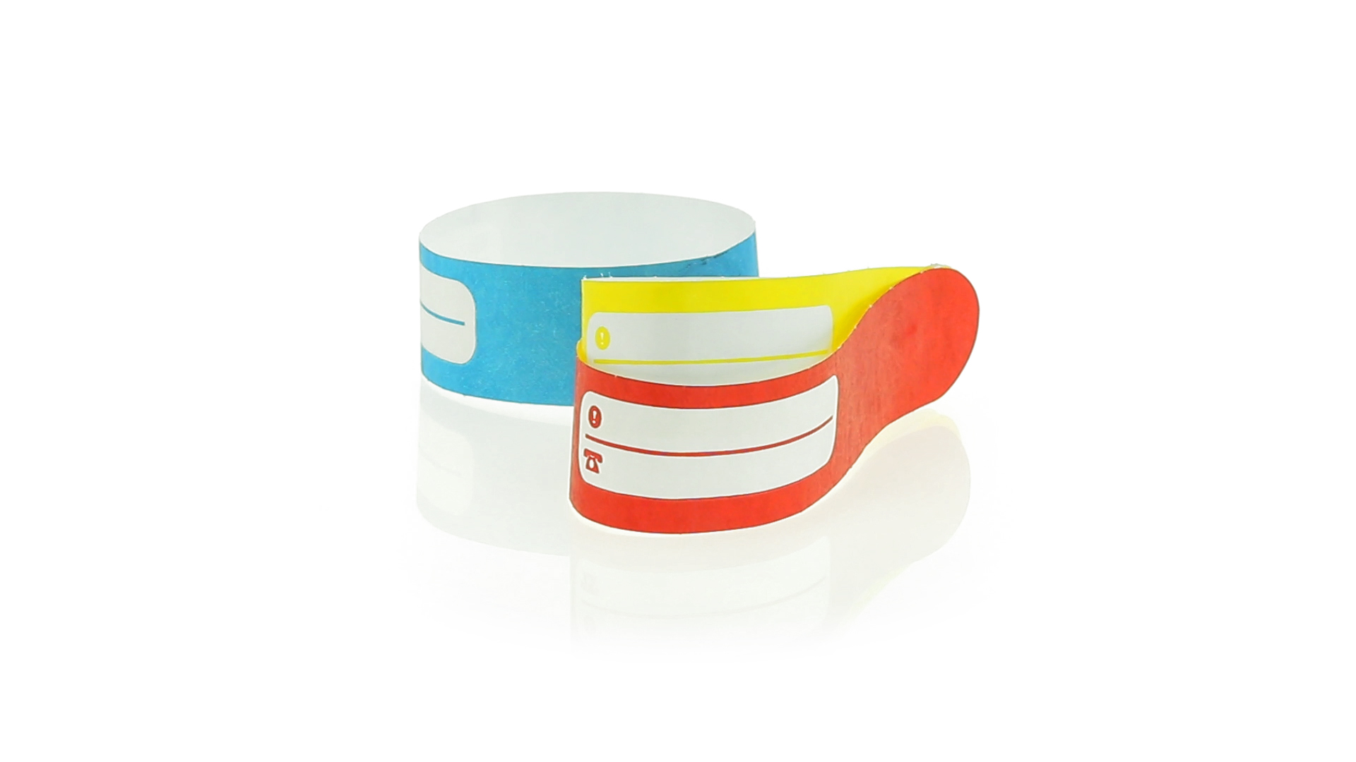 Armband für Kinder aus synthetischer Faser in einer Vielzahl von kräftigen Farben. Mit Identifikationsfeld und Klebeverschluss. Wasserfest und in gestanzten Bögen á 10 Stück für einfaches Bedrucken.