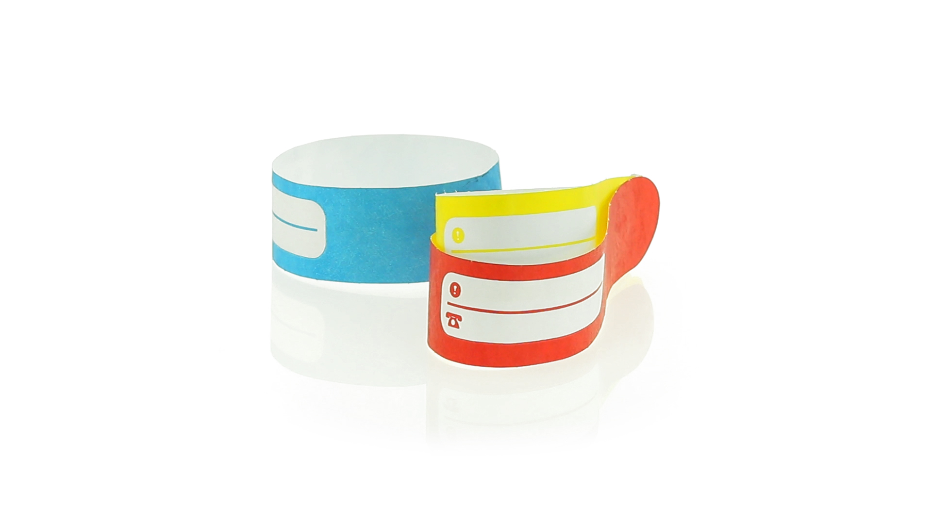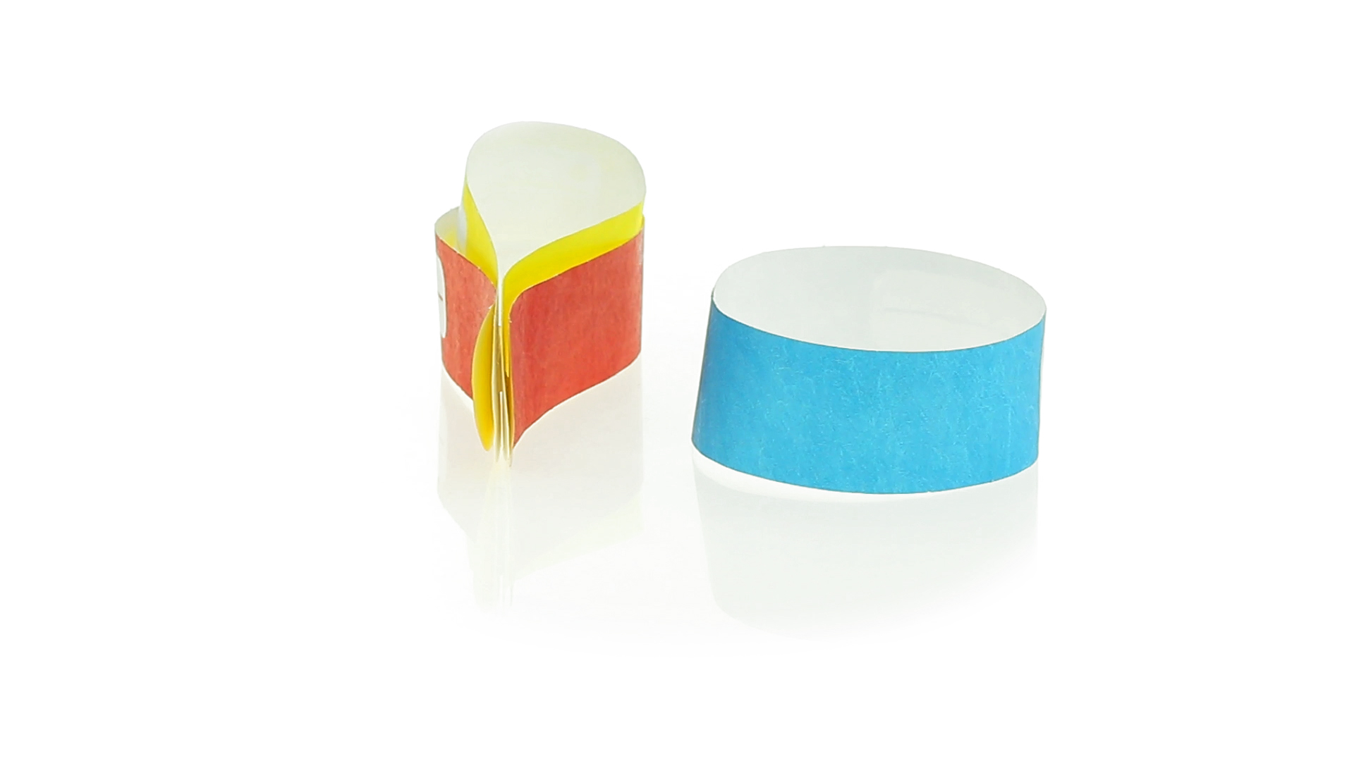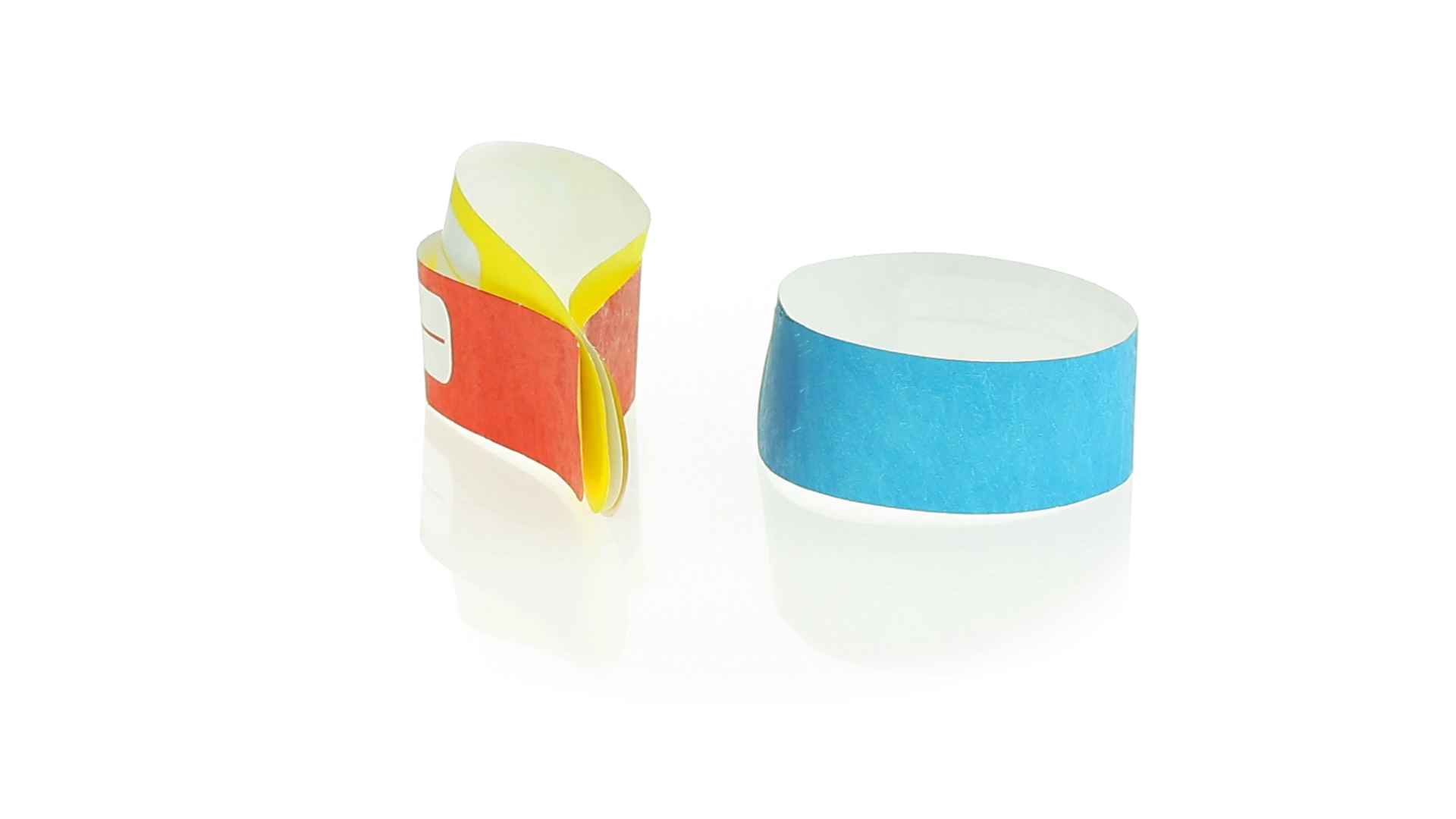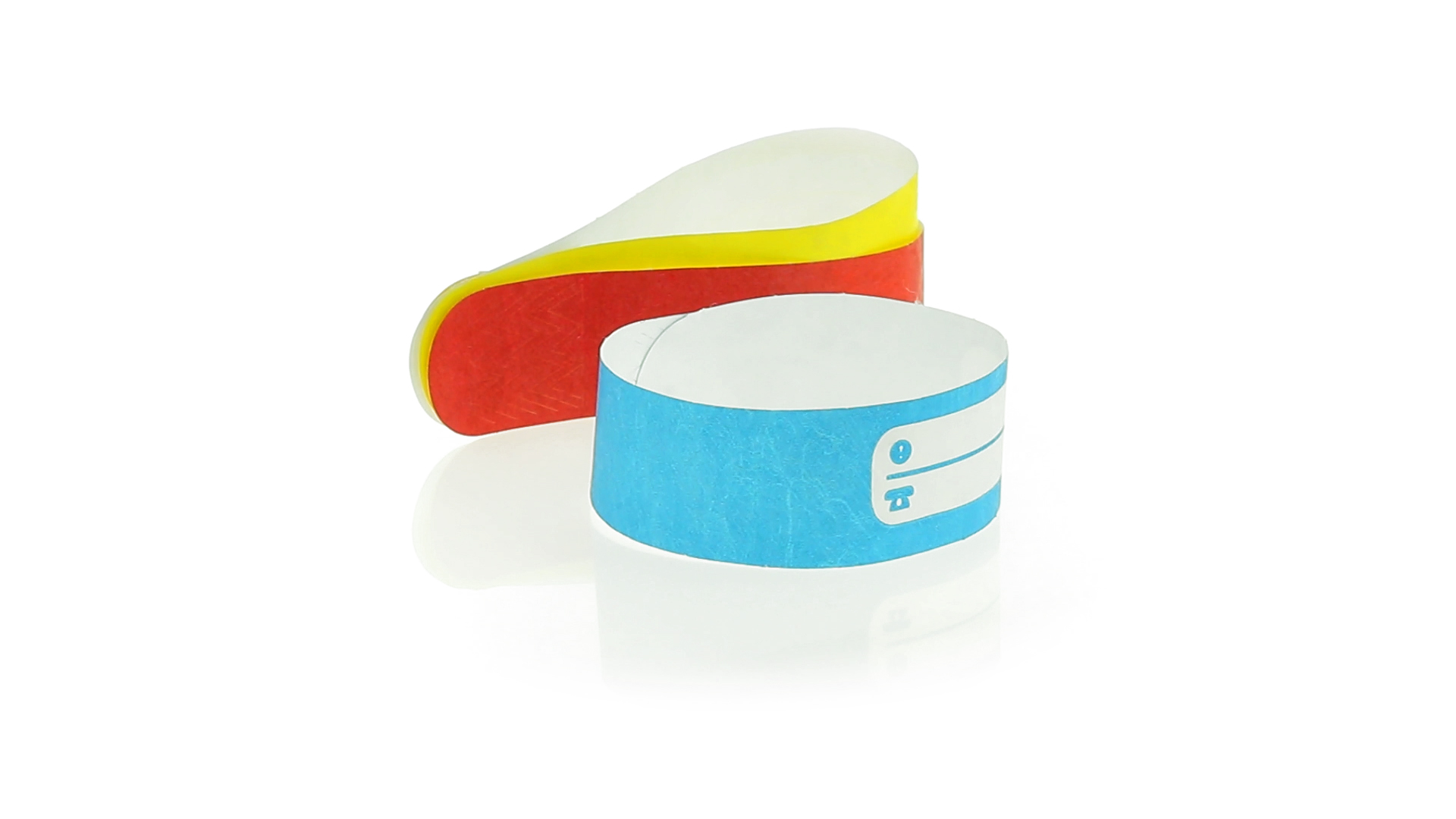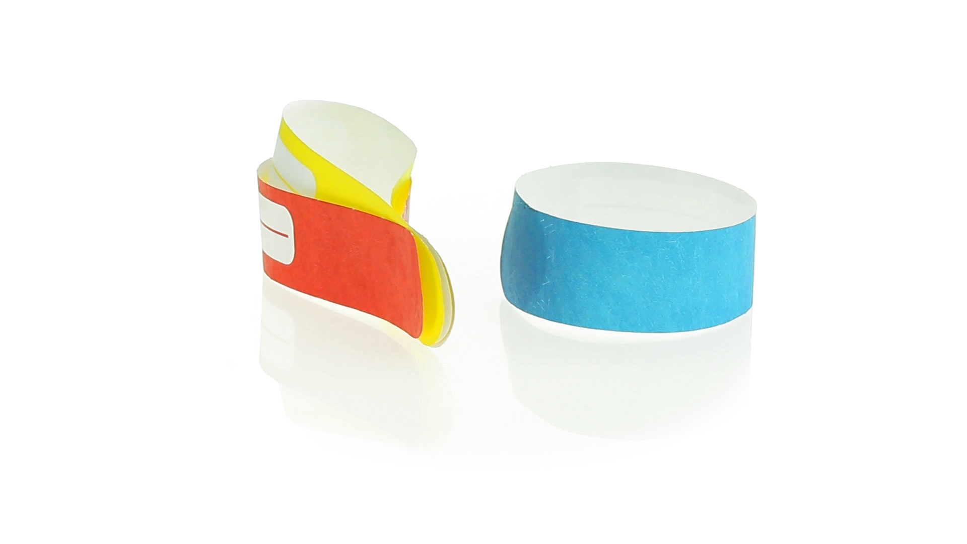 Armband für Kinder aus synthetischer Faser in einer Vielzahl von kräftigen Farben. Mit Identifikationsfeld und Klebeverschluss. Wasserfest und in gestanzten Bögen á 10 Stück für einfaches Bedrucken.