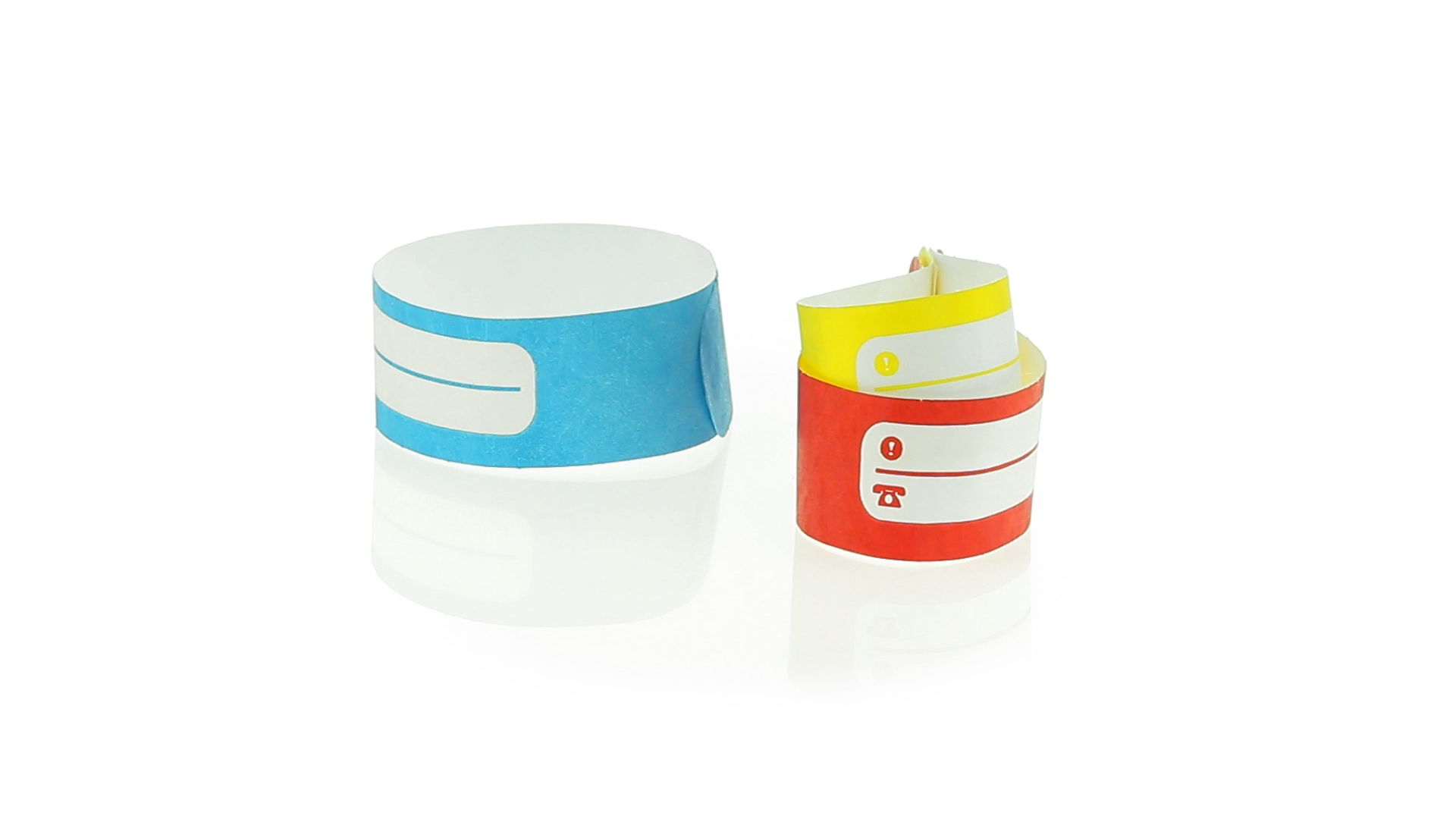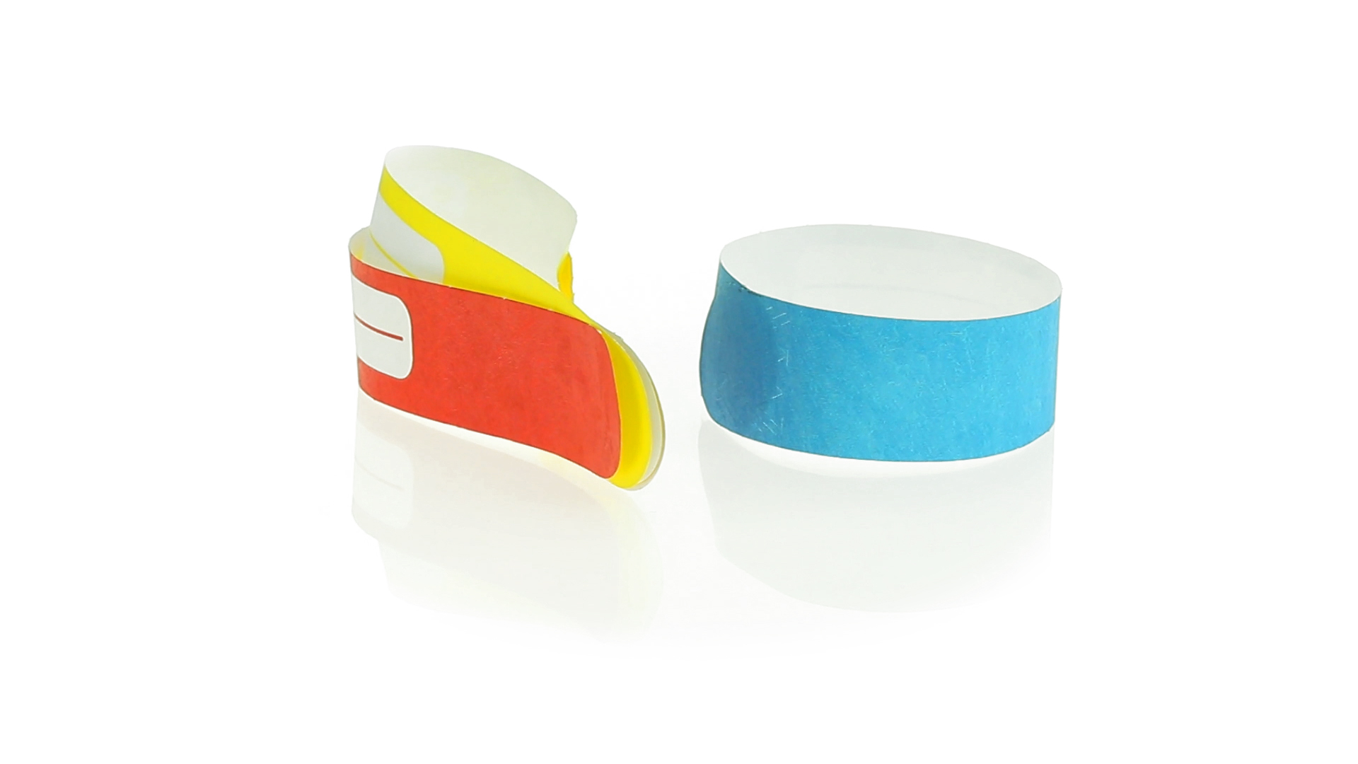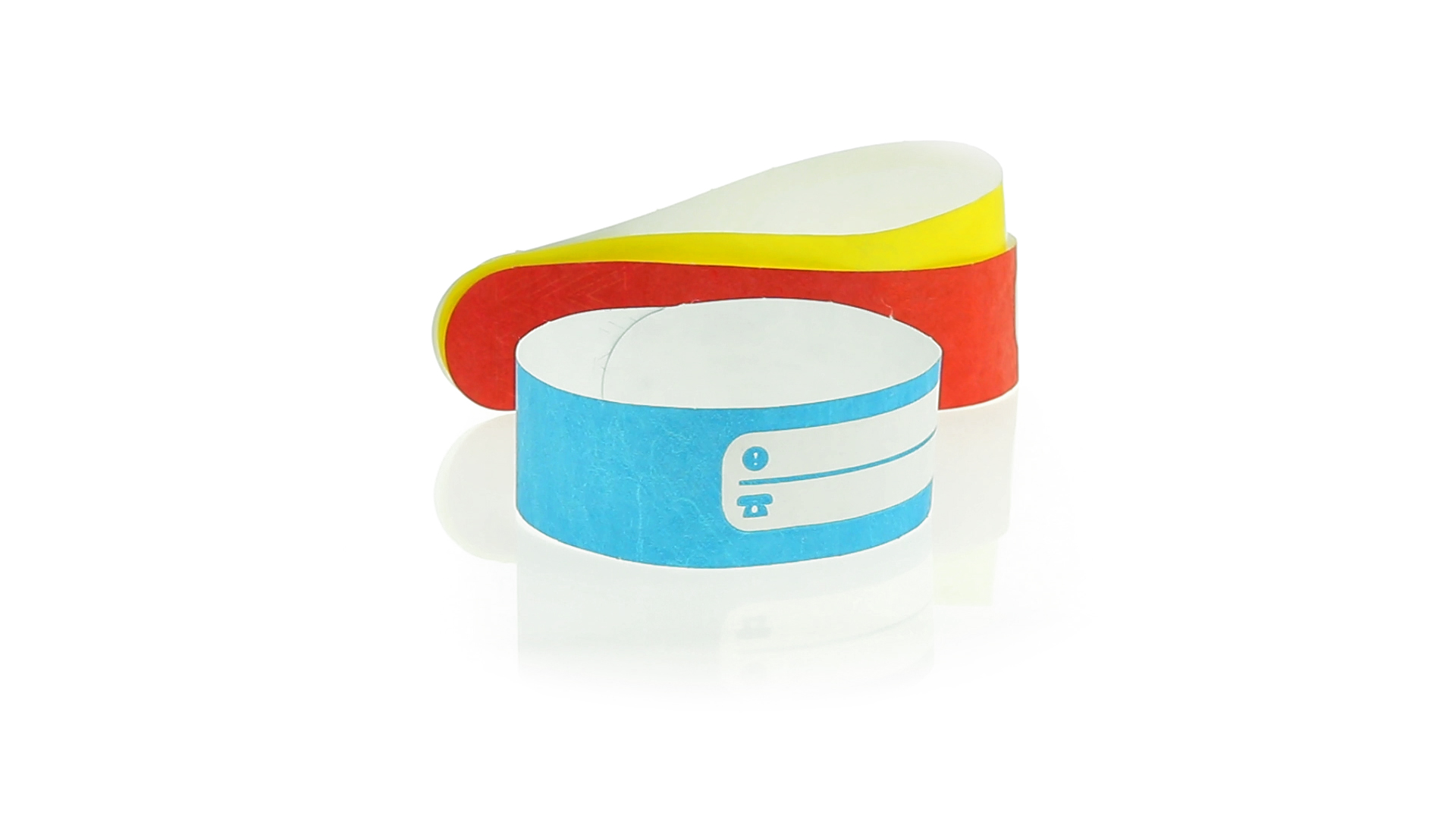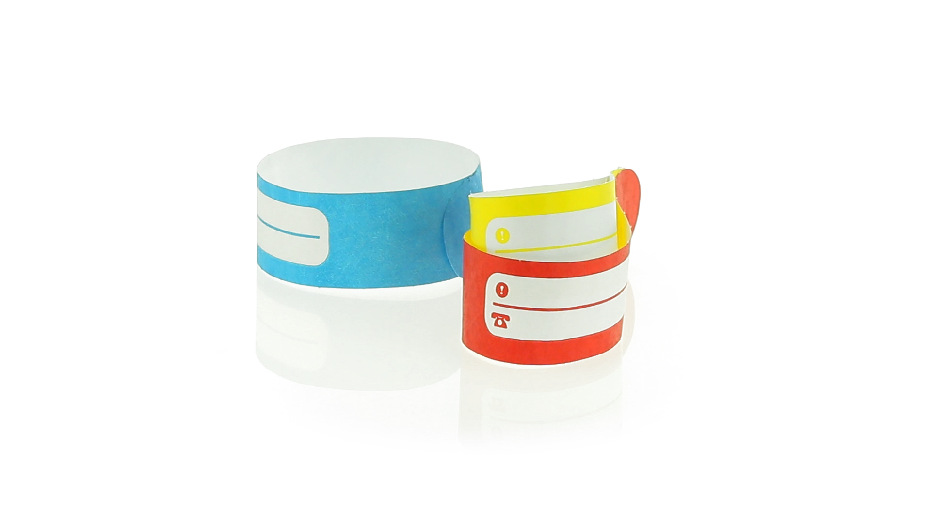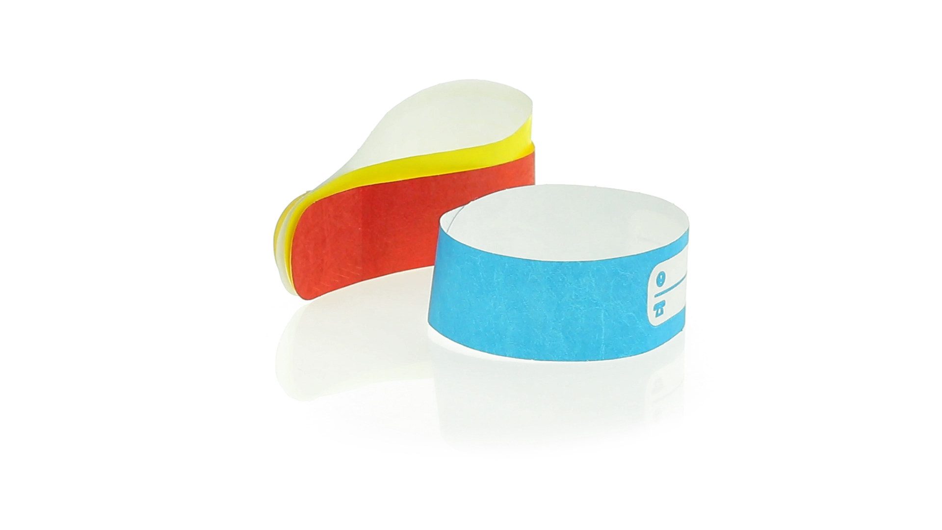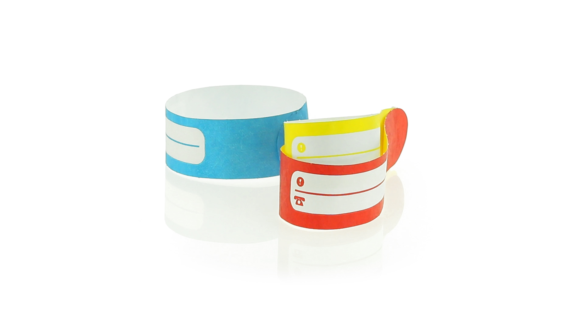 Armband für Kinder aus synthetischer Faser in einer Vielzahl von kräftigen Farben. Mit Identifikationsfeld und Klebeverschluss. Wasserfest und in gestanzten Bögen á 10 Stück für einfaches Bedrucken.