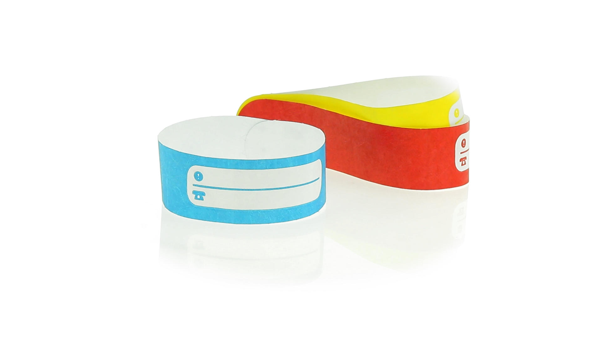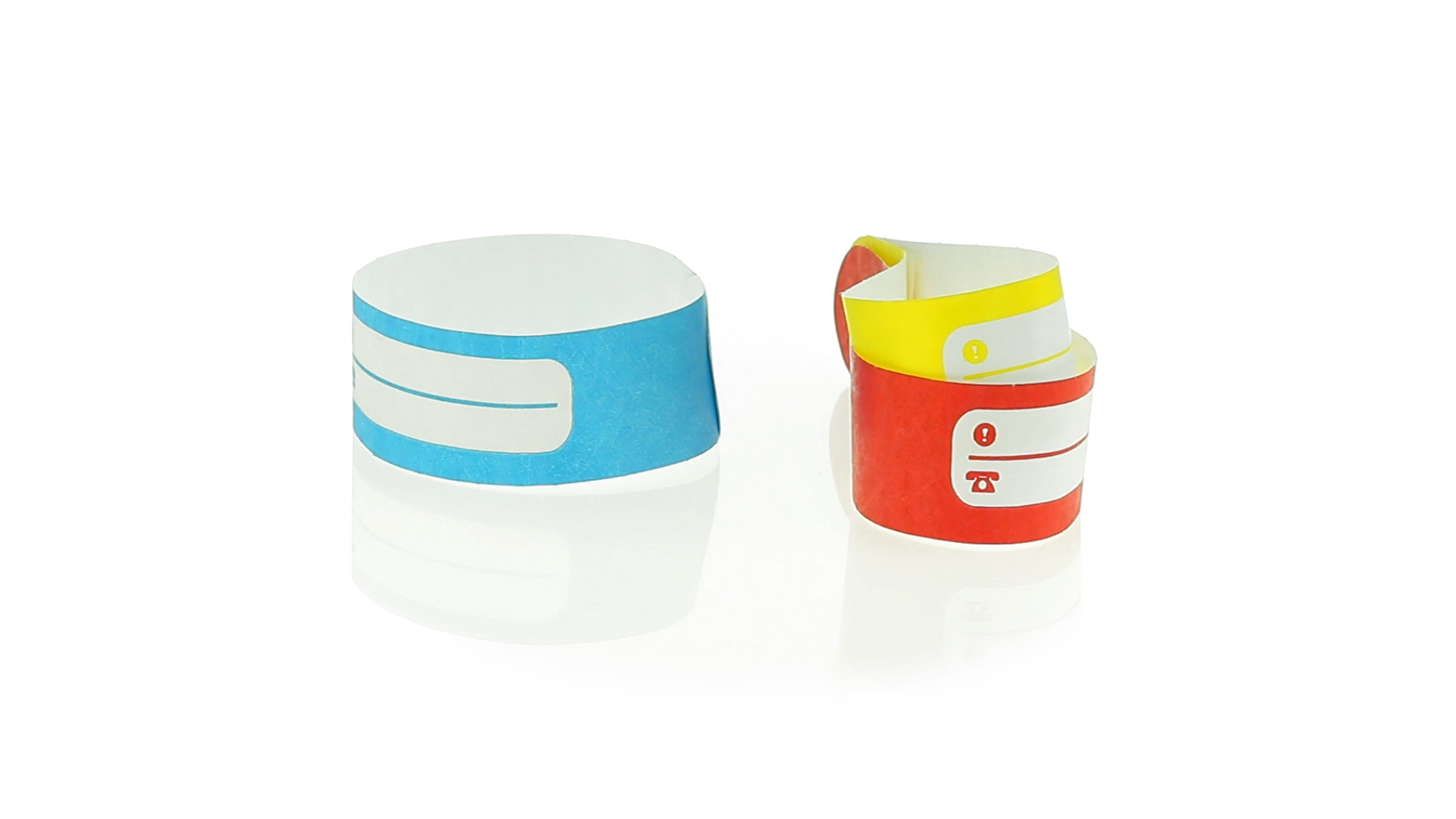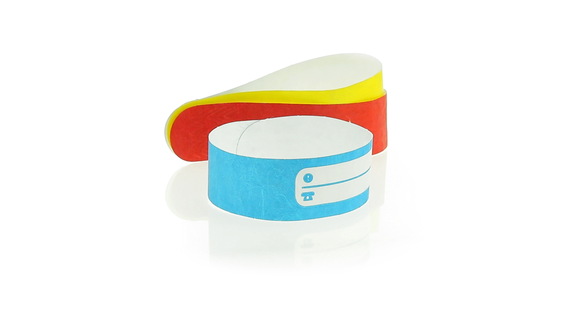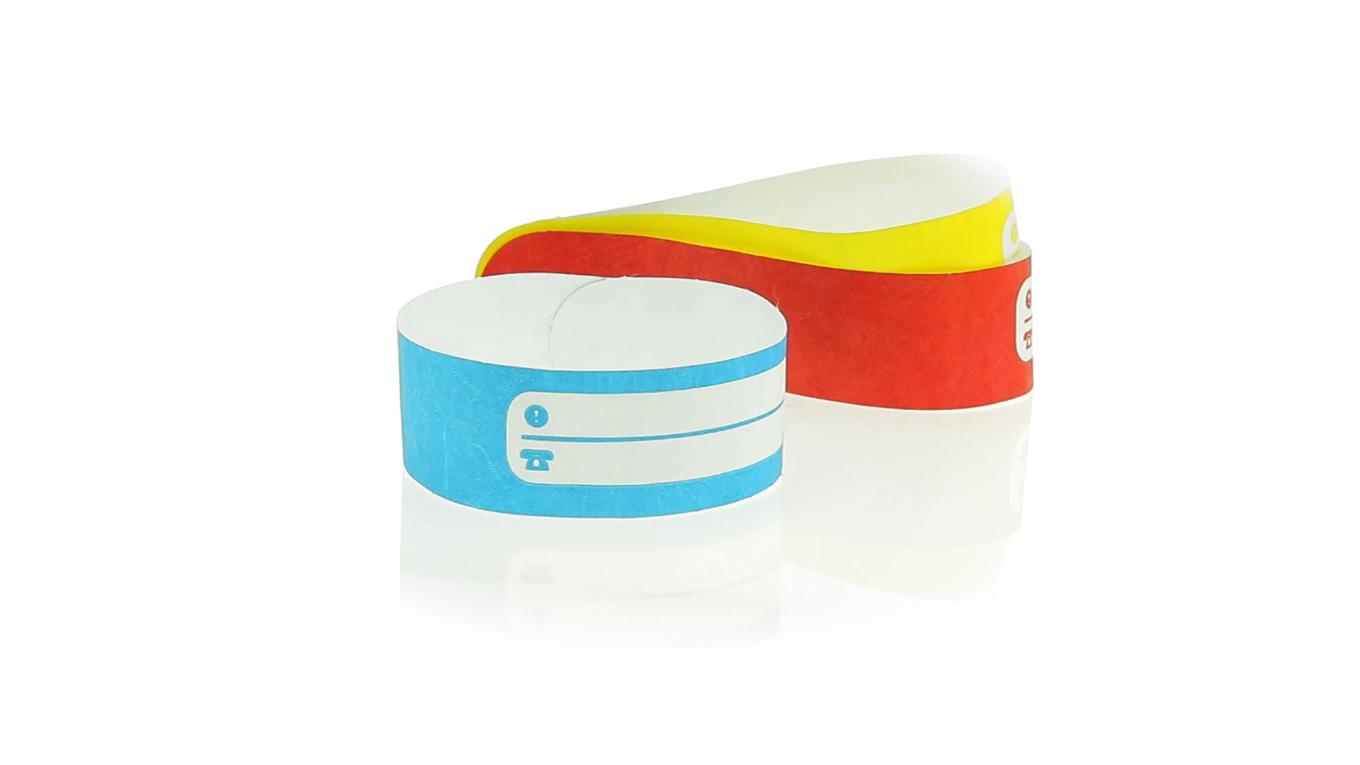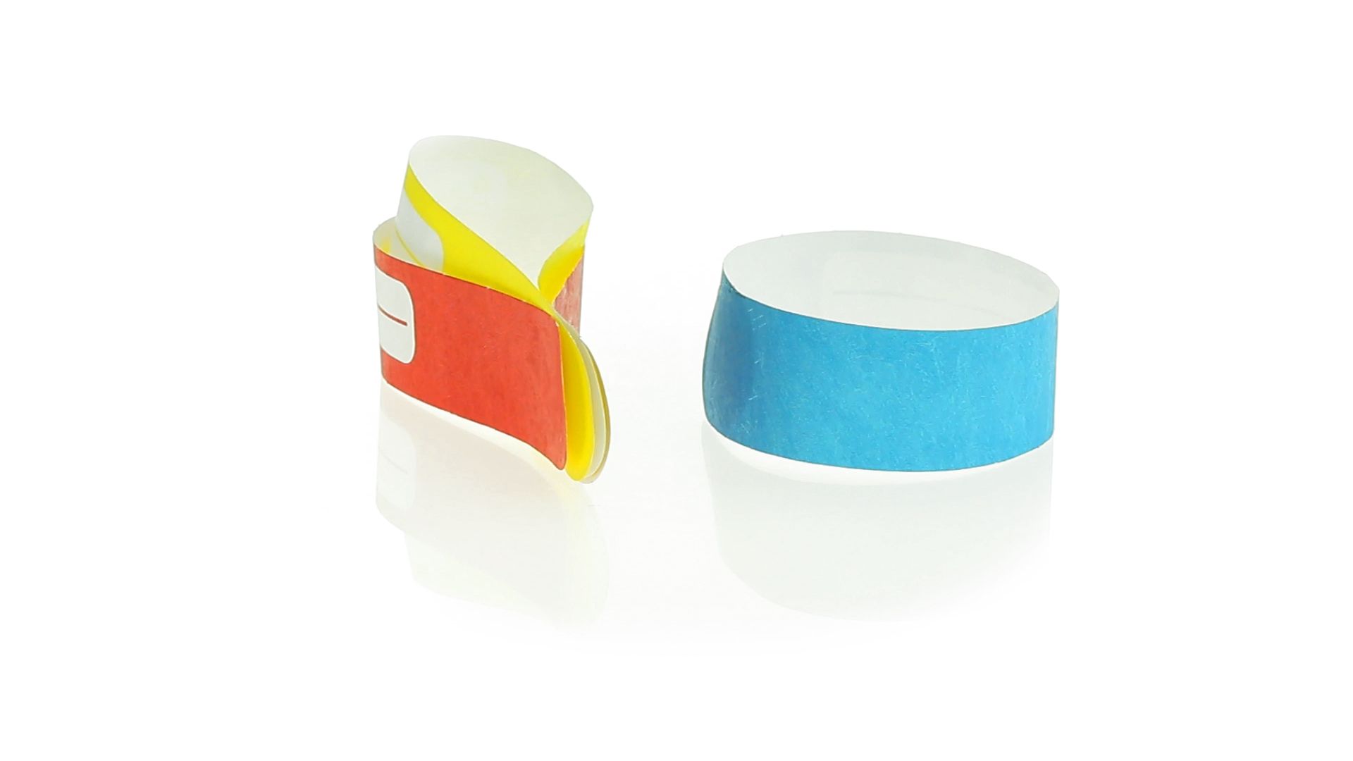 Armband für Kinder aus synthetischer Faser in einer Vielzahl von kräftigen Farben. Mit Identifikationsfeld und Klebeverschluss. Wasserfest und in gestanzten Bögen á 10 Stück für einfaches Bedrucken.